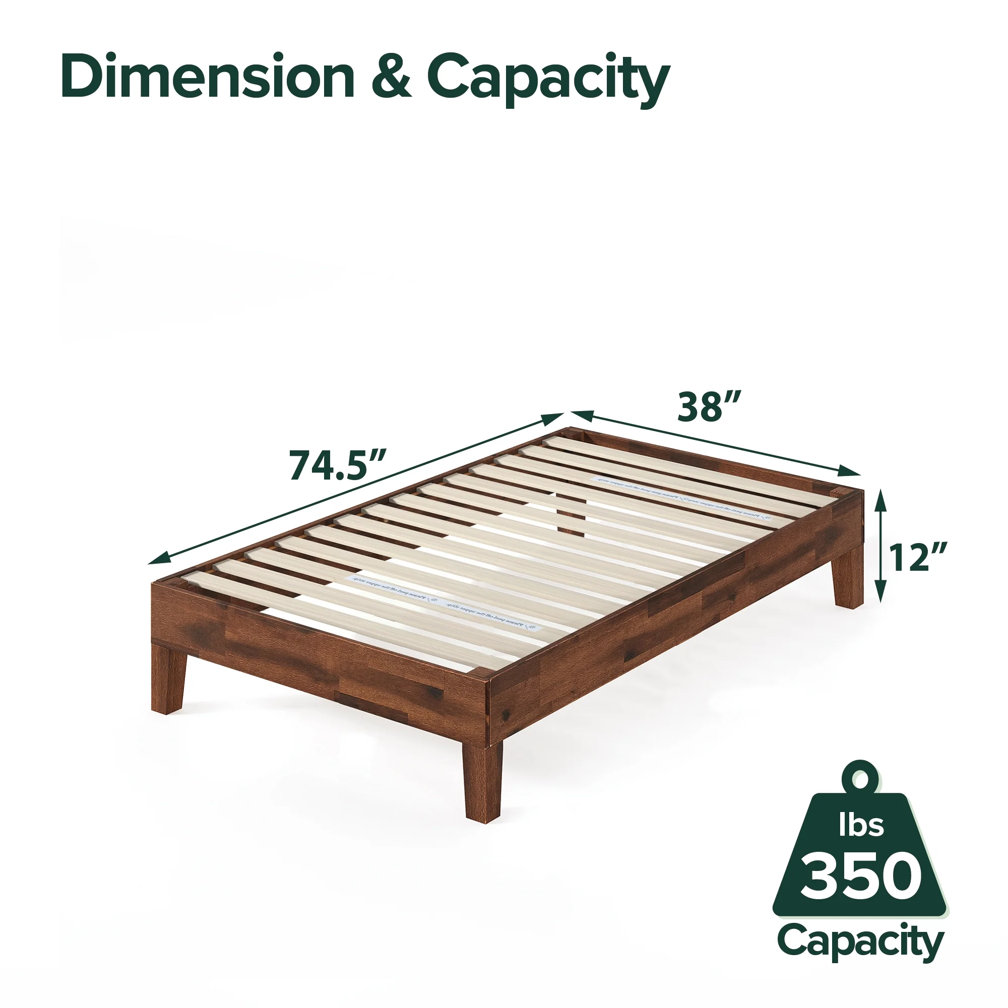 Zinus Marissa 12" Deluxe Wood Platform Bed Frame, Antique Espresso Finish, Twin