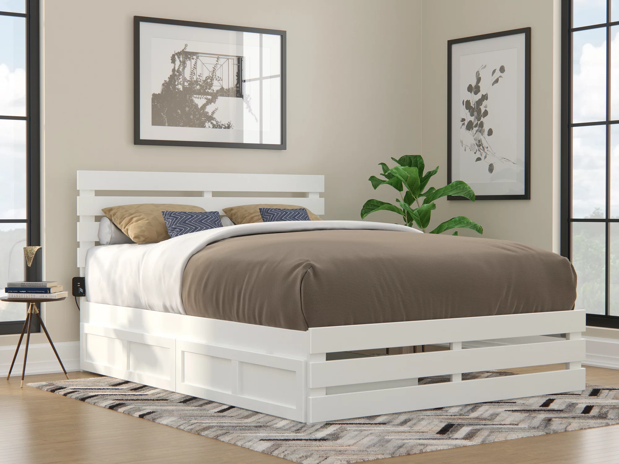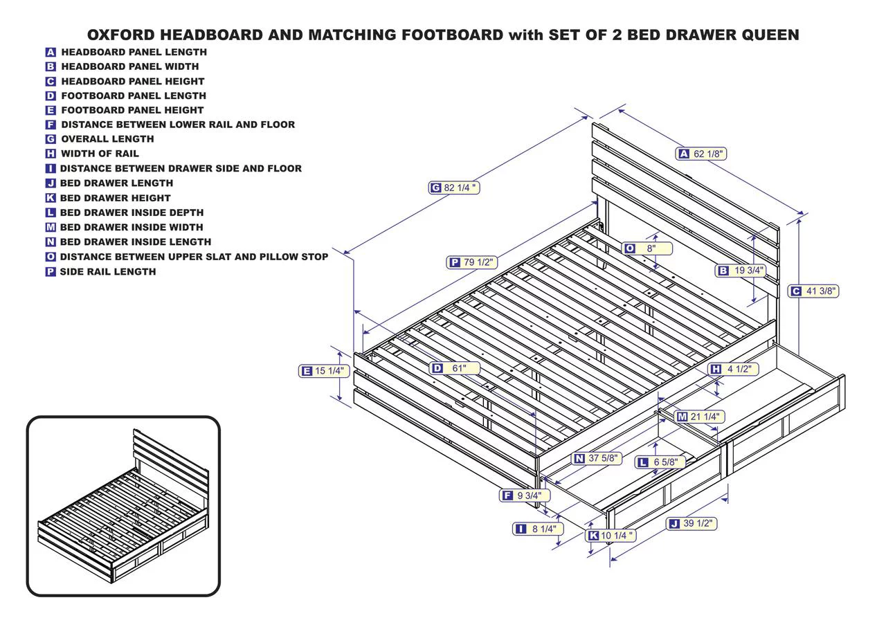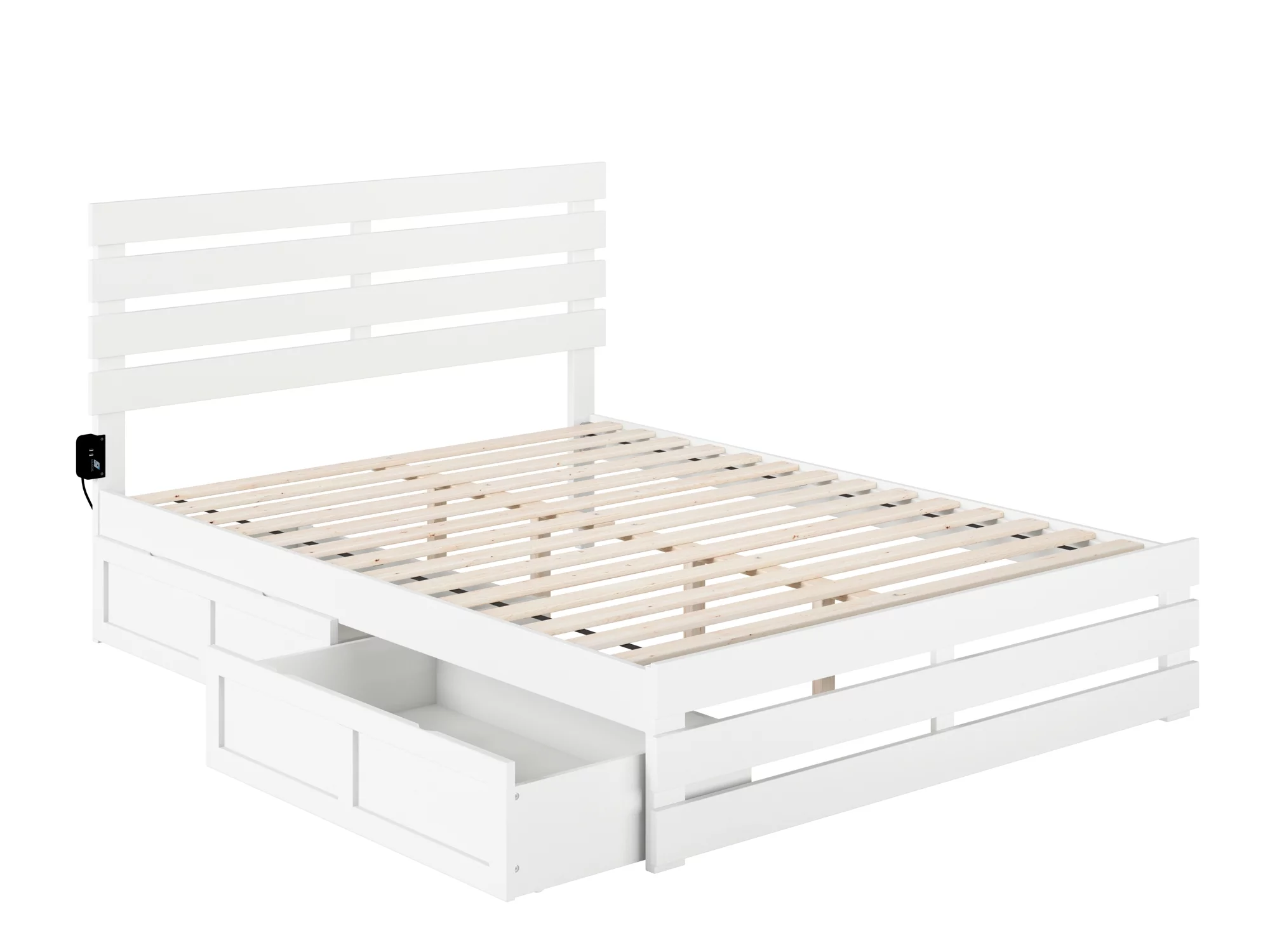 Oxford Queen Bed with Footboard and USB Turbo Charger with 2 Extra Long Drawers in White