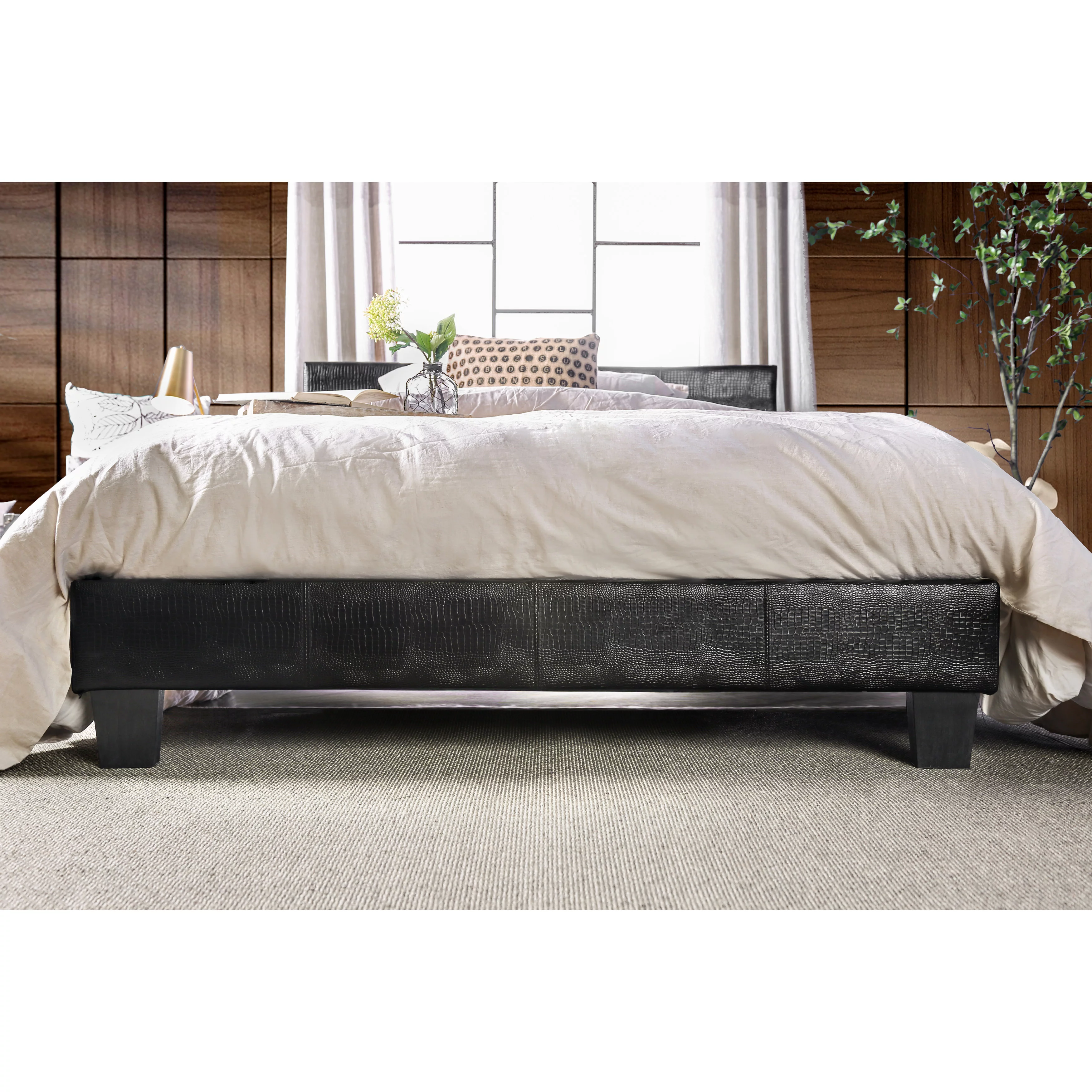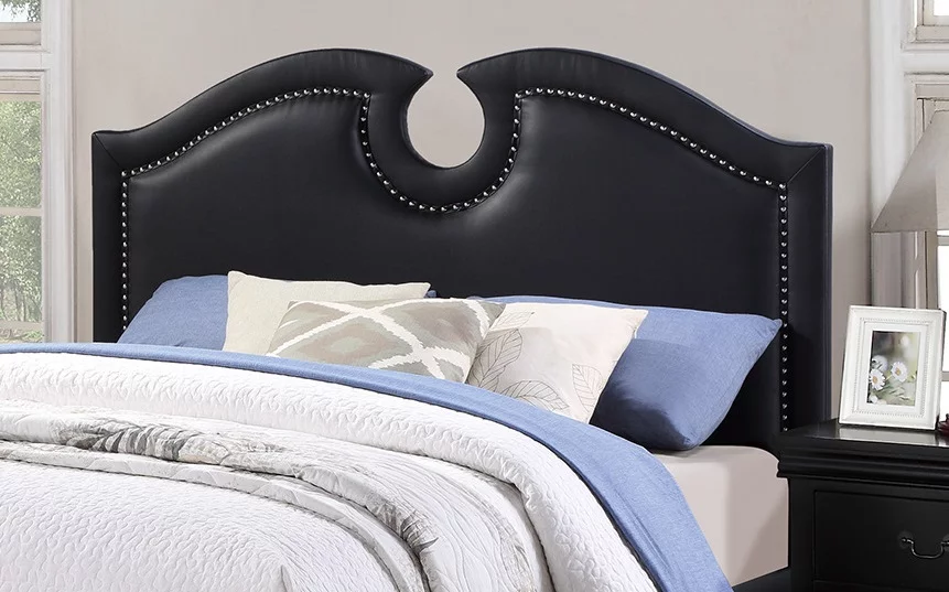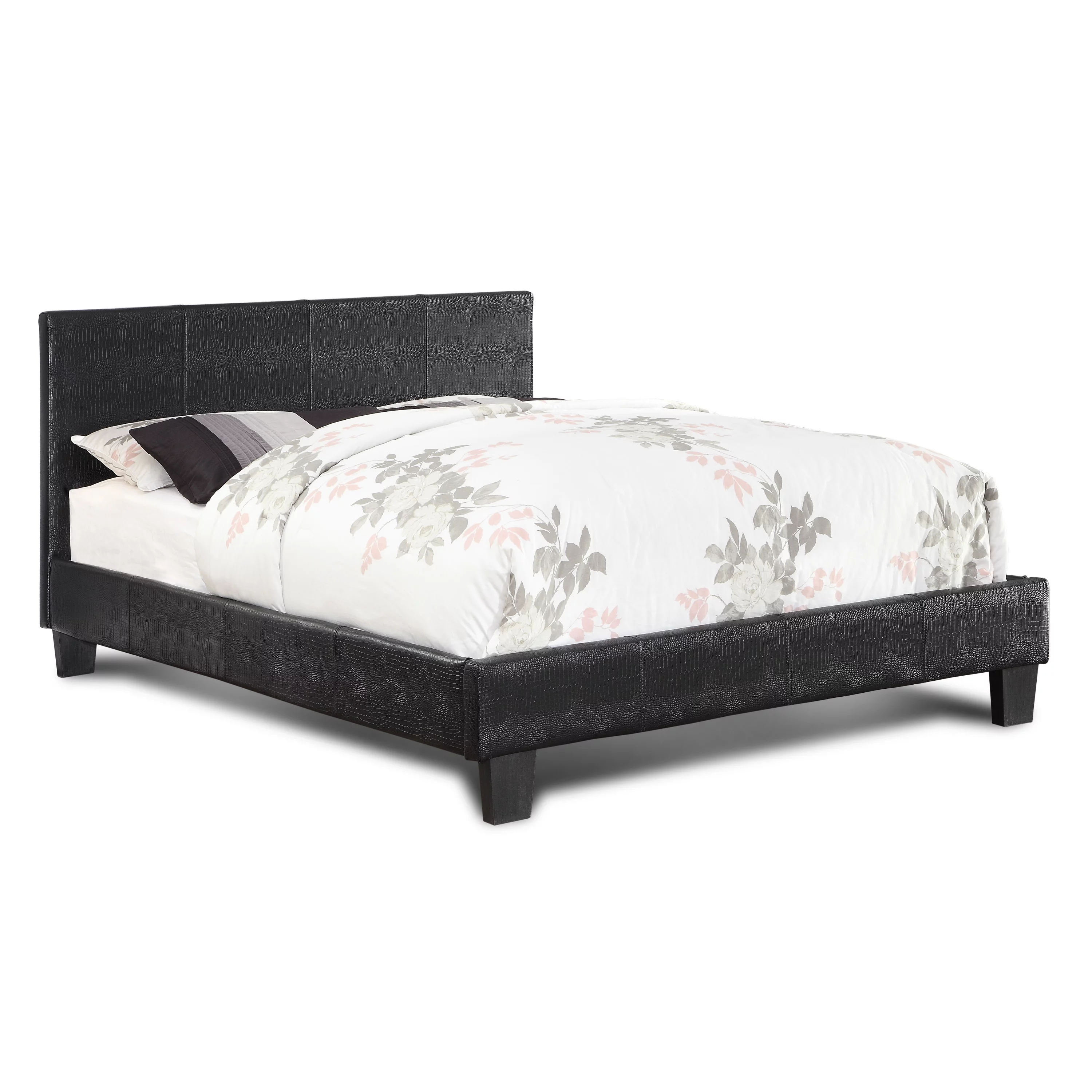 Modern Black Faux Leather Queen Size Bed Bedroom Furniture 1pc bed Plywood Pine Wood Bedframe