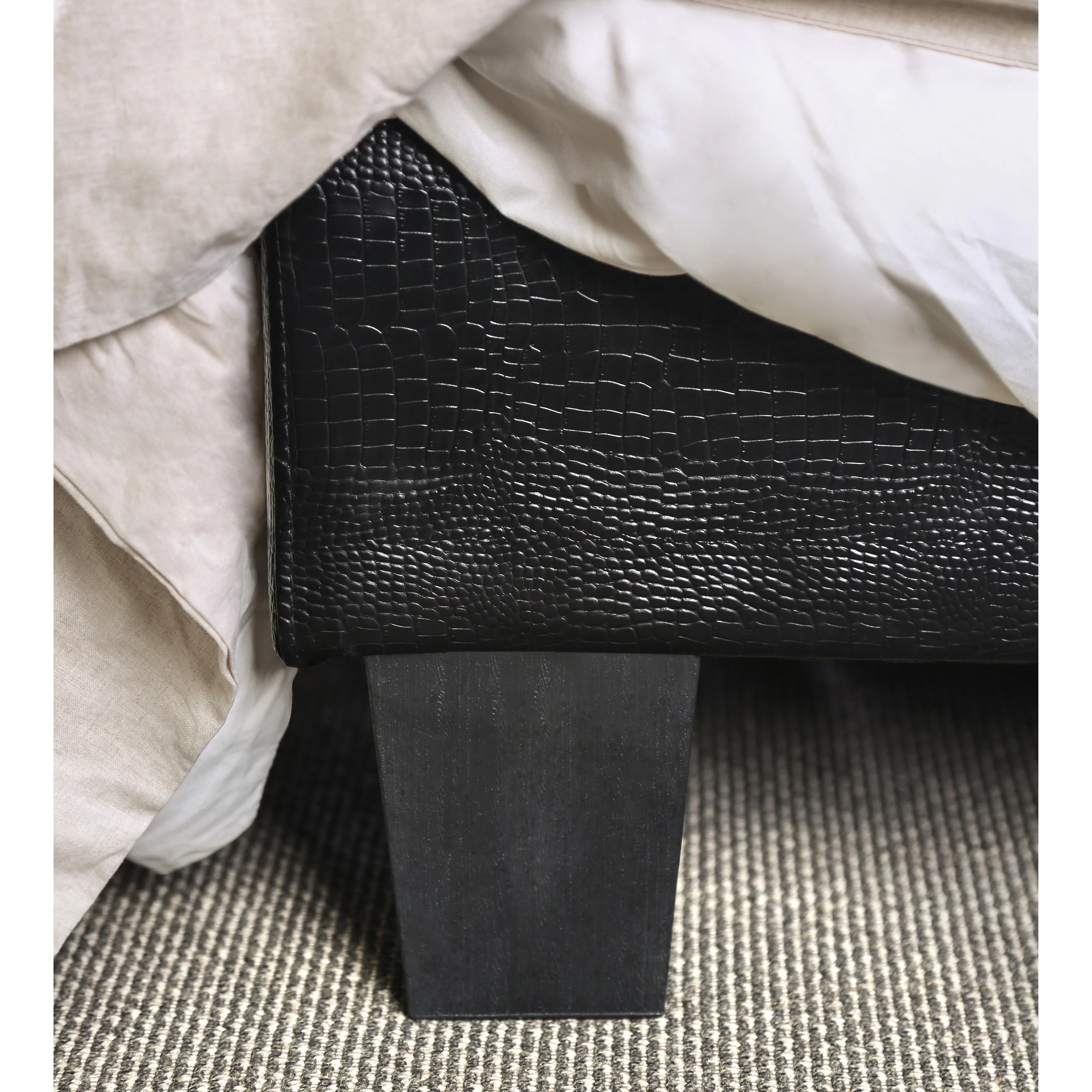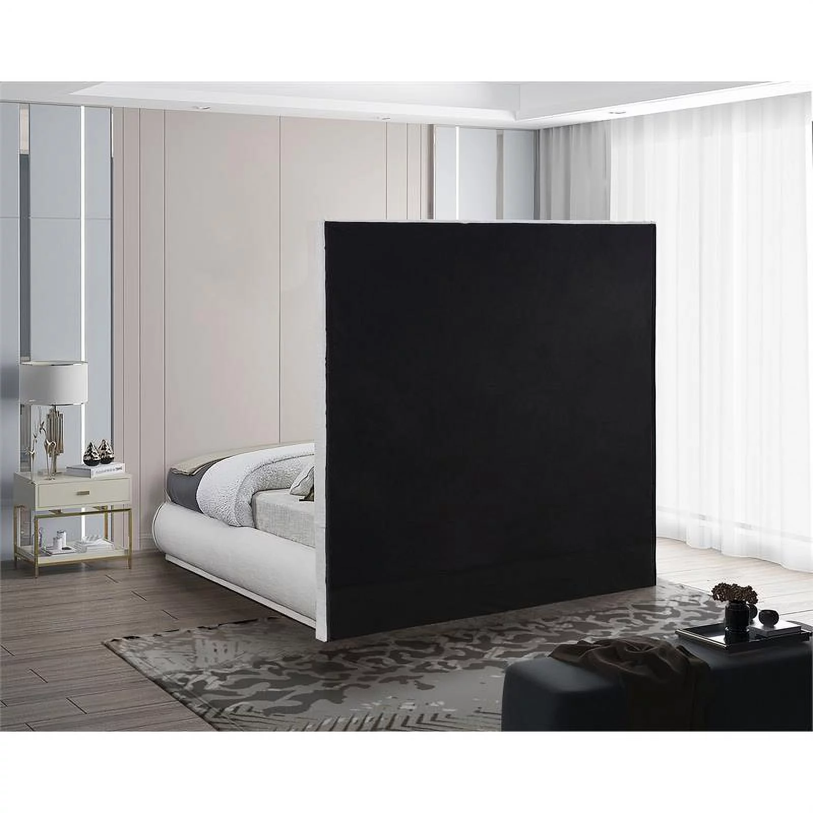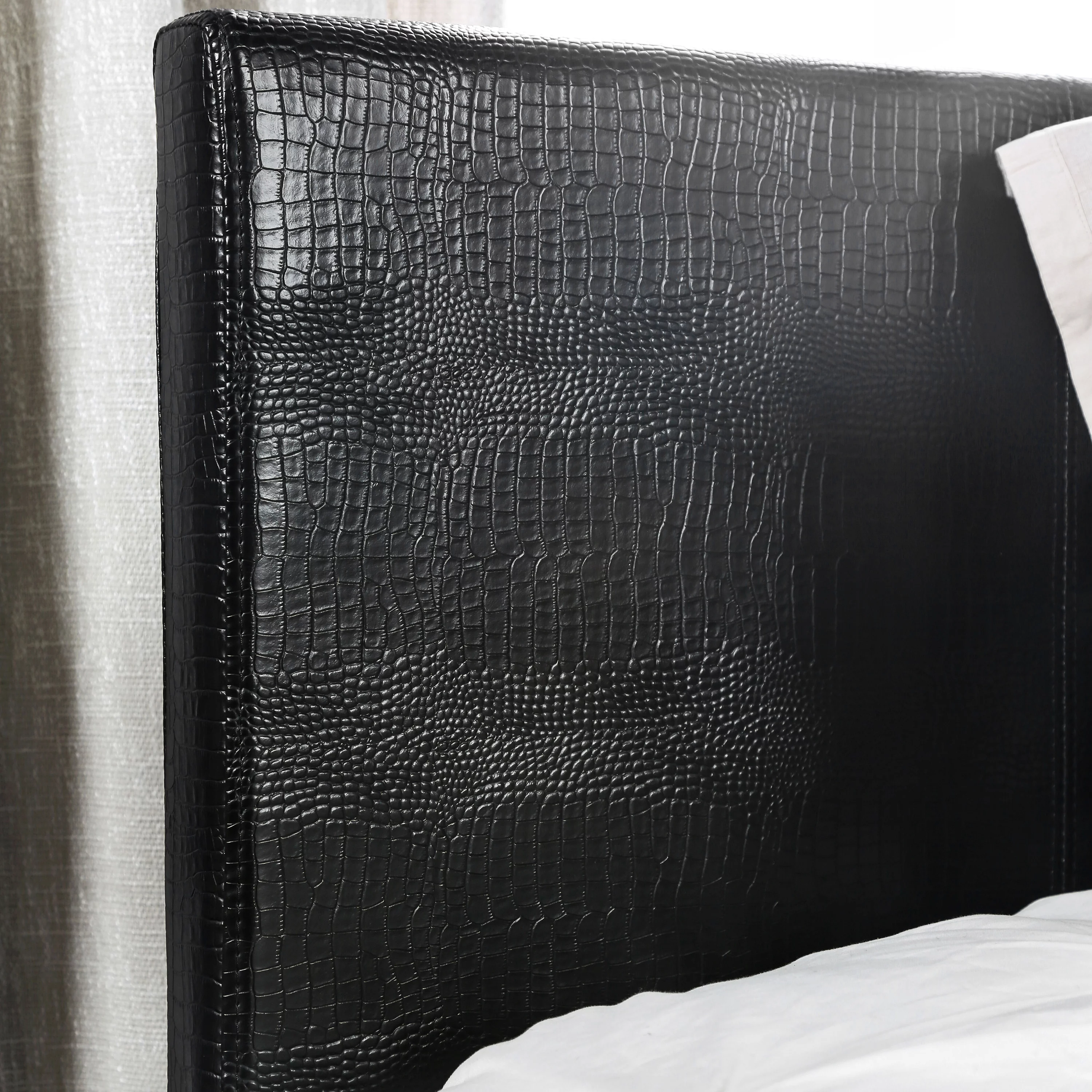 Modern Black Faux Leather Queen Size Bed Bedroom Furniture 1pc bed Plywood Pine Wood Bedframe