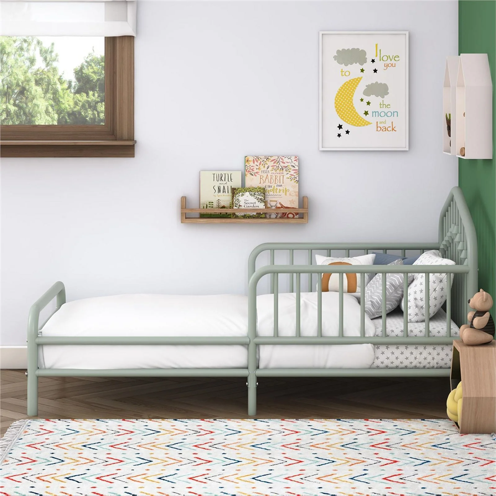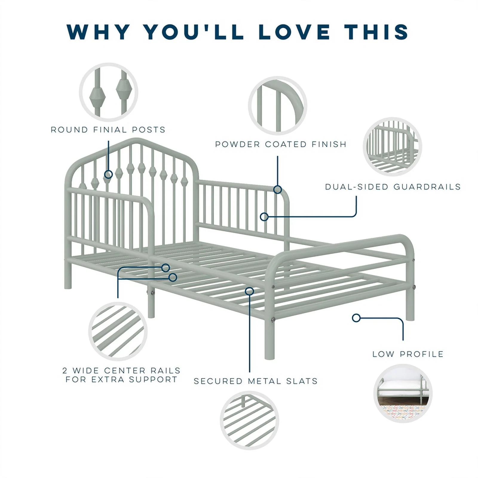 Maykoosh Eclectic Elegance Twin Fabric Upholstered Bed Frame with 12 Slats in Light Gray
