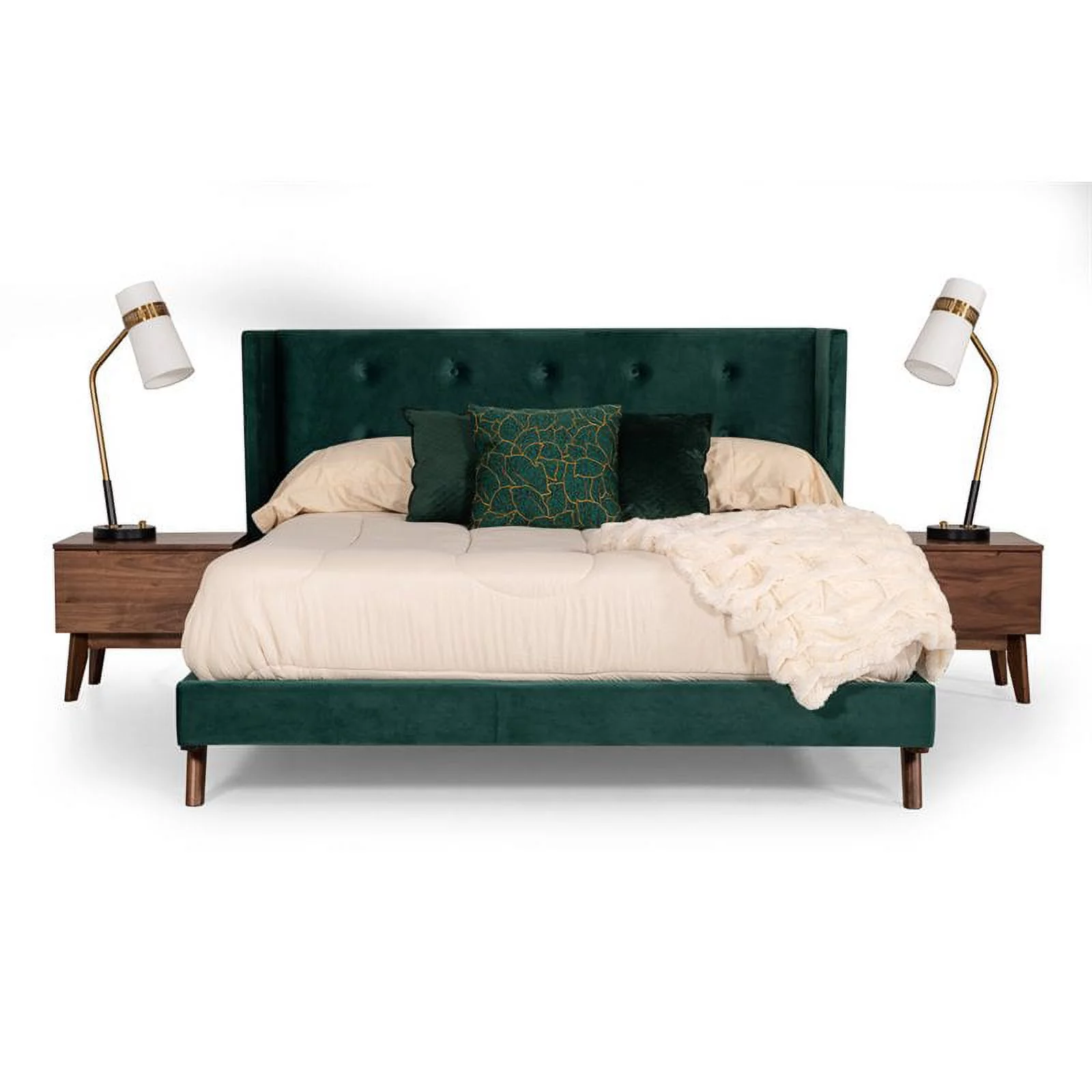 Modrest Durango 85x88" Modern Fabric Upholstered Eastern King Bed - Green/Walnut