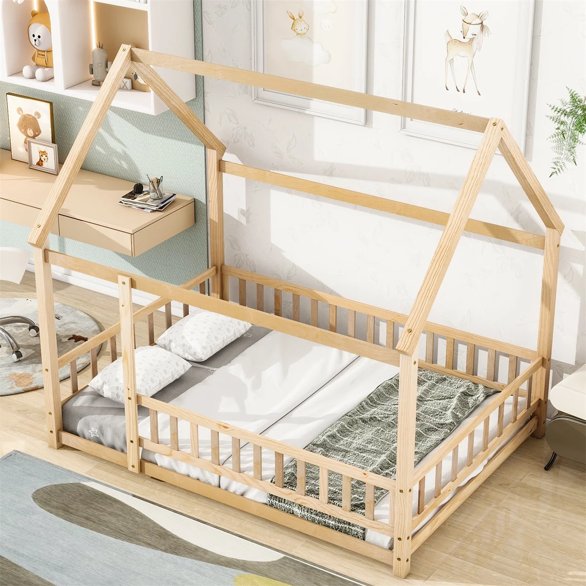 Contemporary Style 1pc Full Size Bed Natural Finish Melamine Laminate Rustic Aesthetic Bedroom Furniture