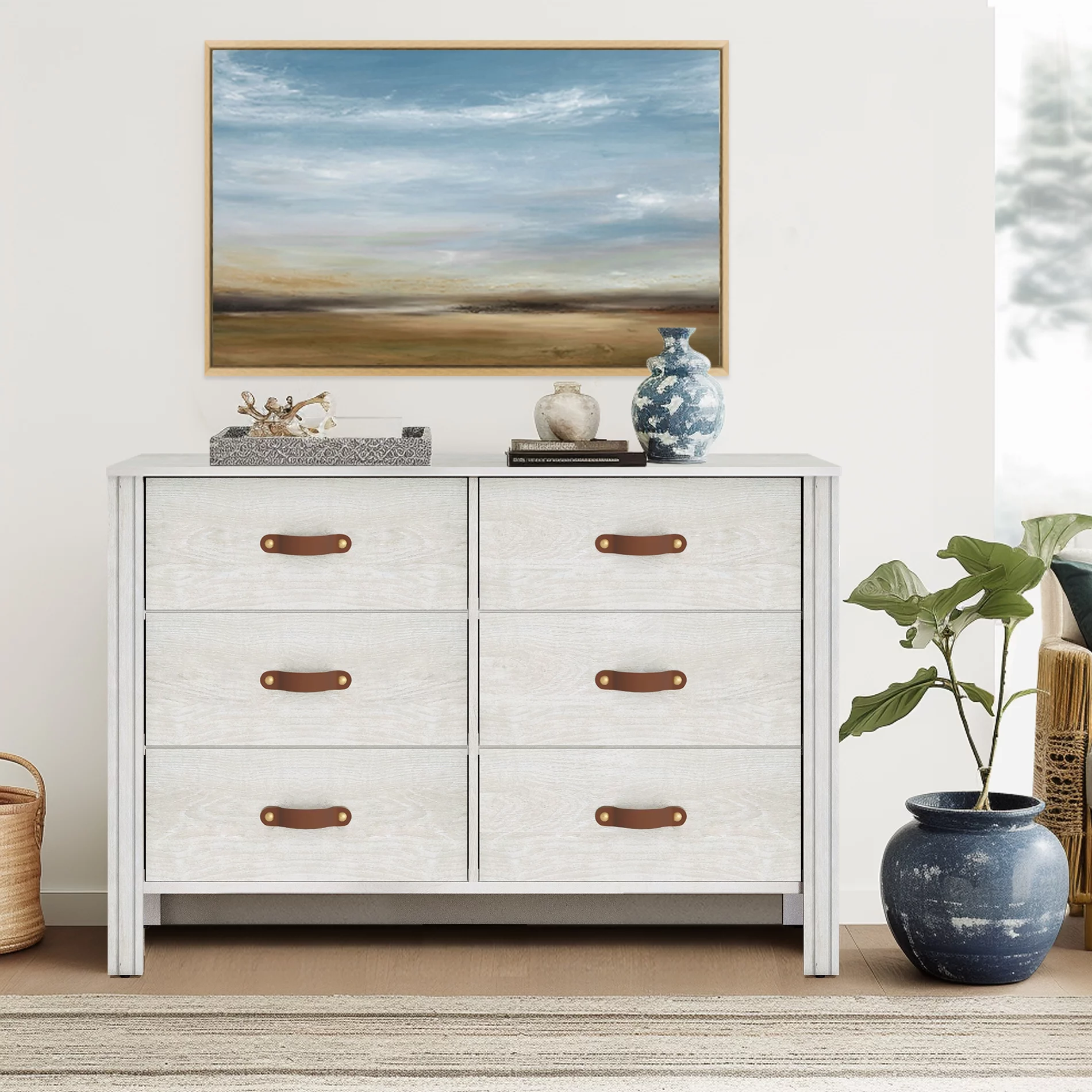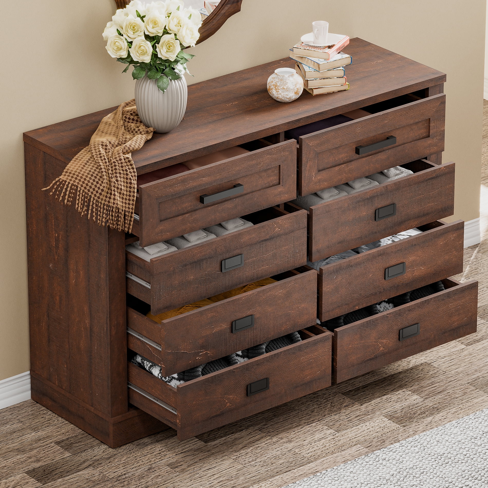 Dresser for Bedroom, Wood Dresser with 6 Drawers, Storage Cabinet for Living Room, Hallway, White
