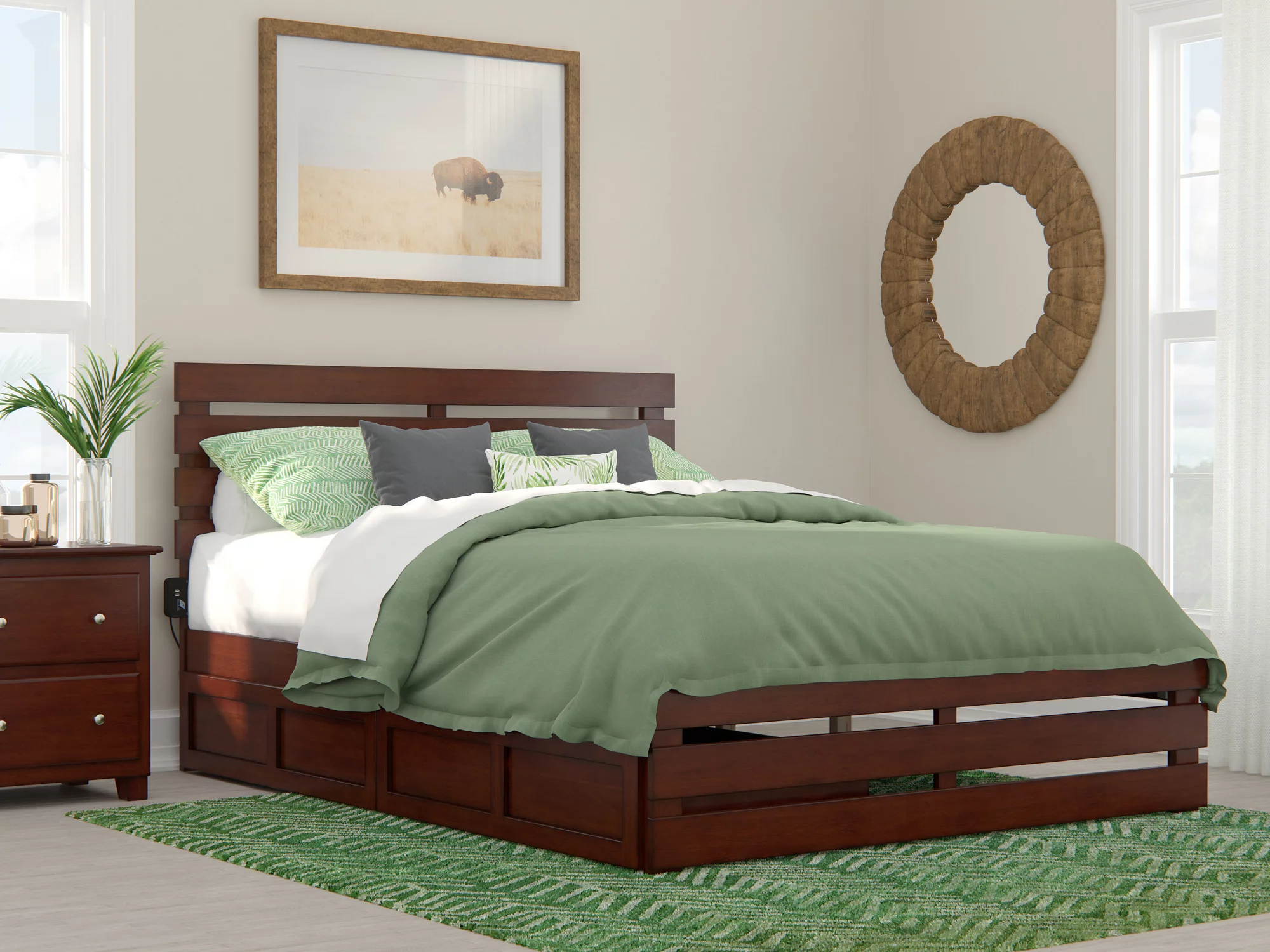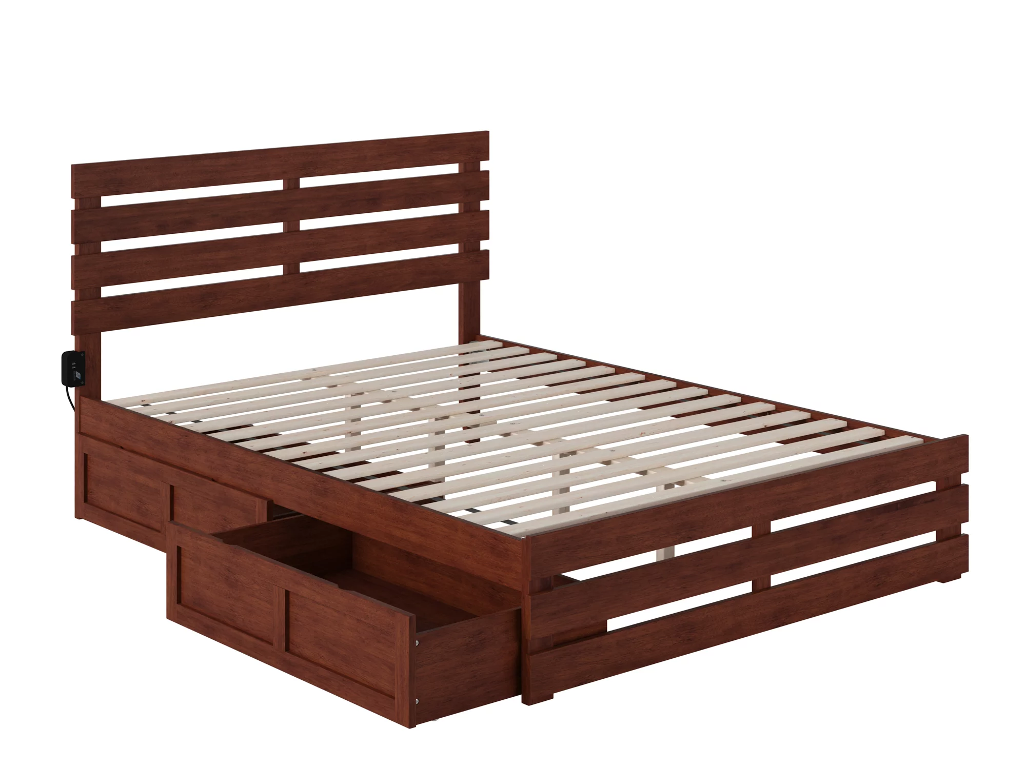 Oxford Queen Bed with Footboard and USB Turbo Charger with 2 Extra Long Drawers in Walnut