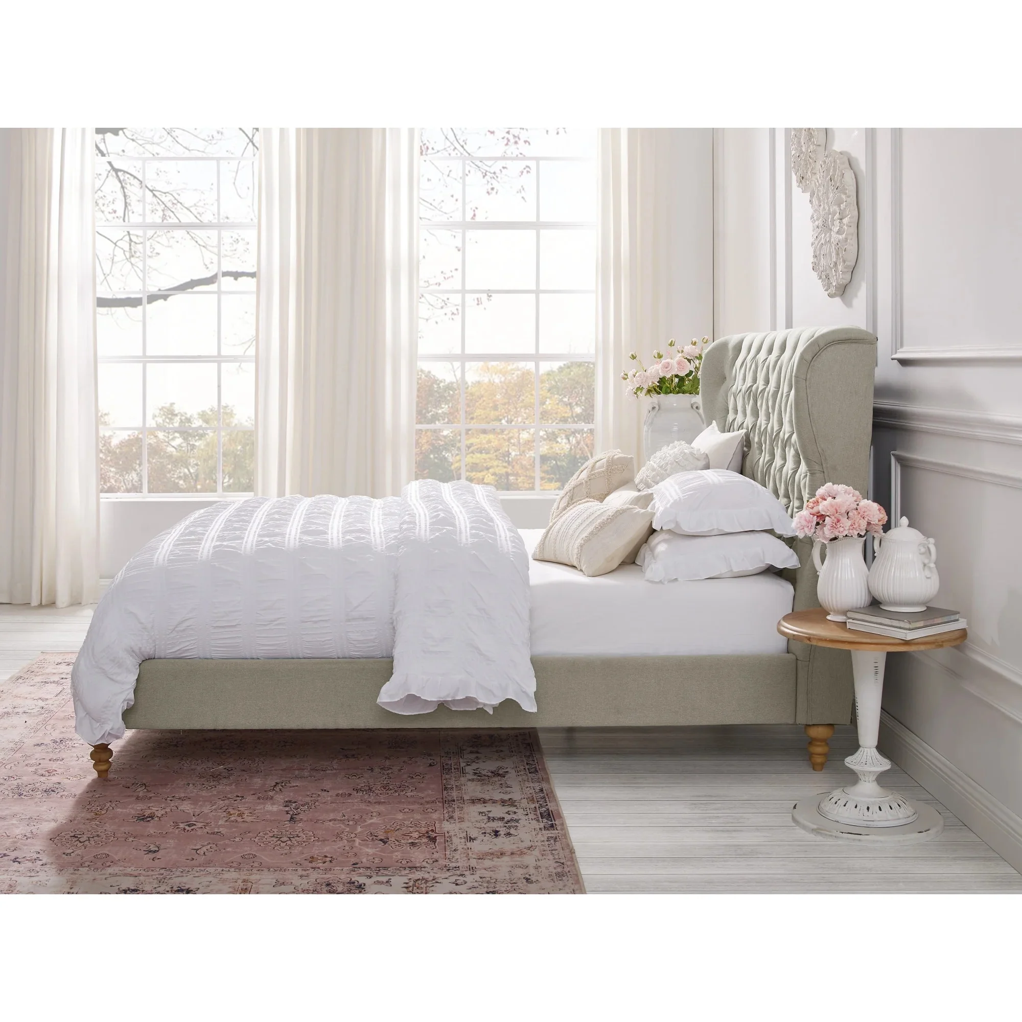 Wallace & Bay Kirby Classic Linen Low Profile Upholstered Bed, Queen, Gray