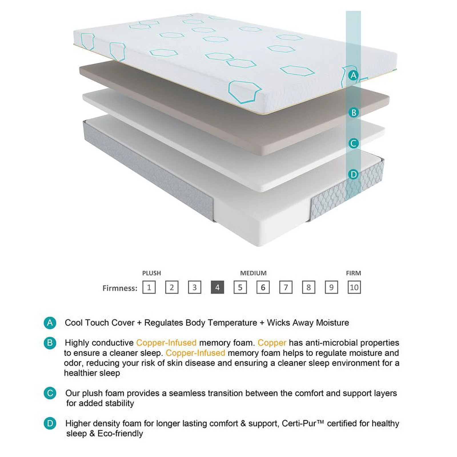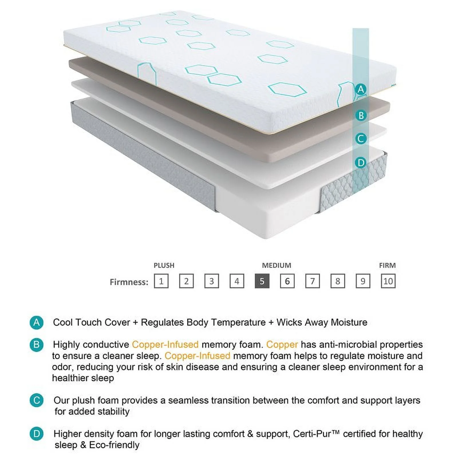 Copper 14" Cal King Size Memory Foam Mattress for Back Pain, Therapeutic Medium Mattress, Cooling Gel Mattress