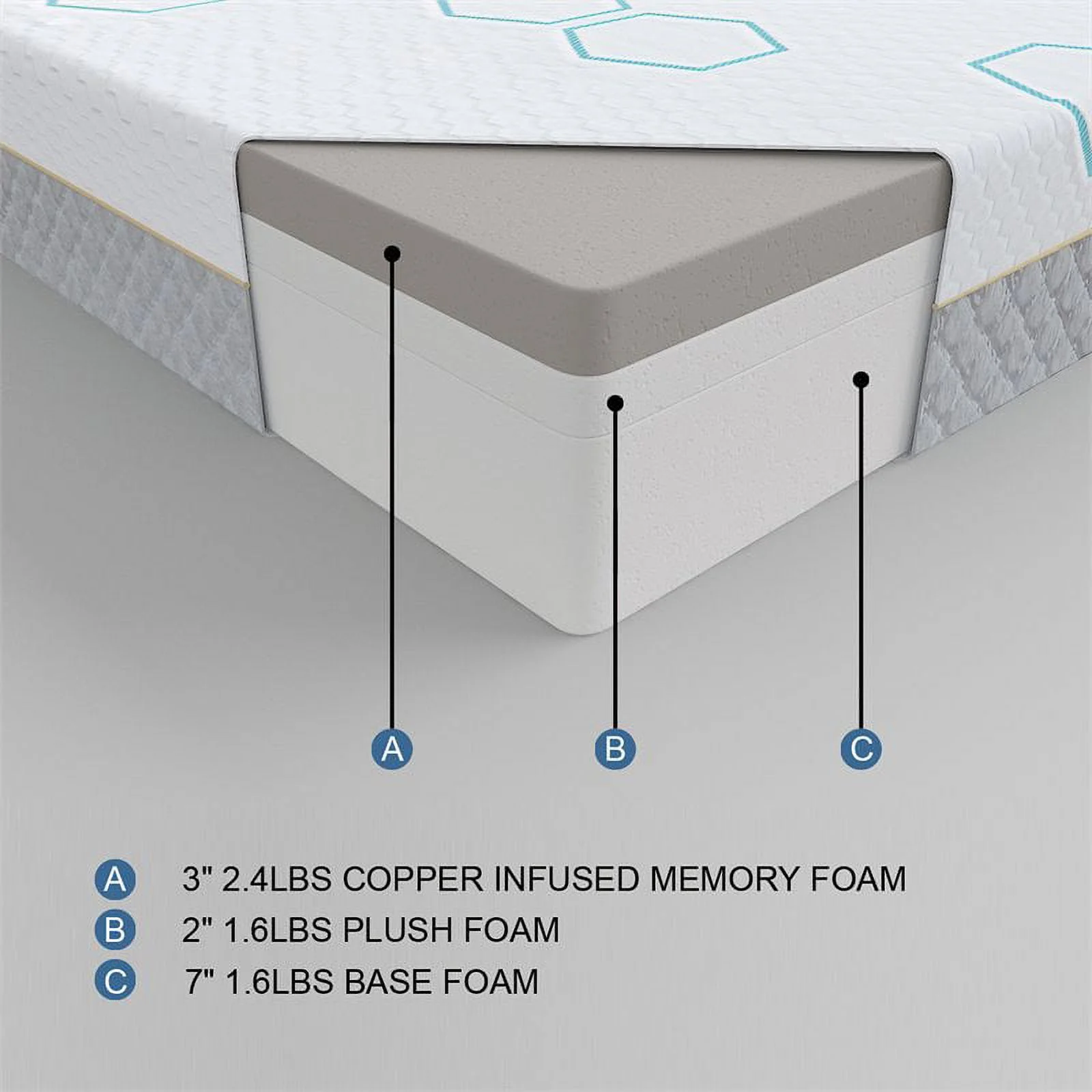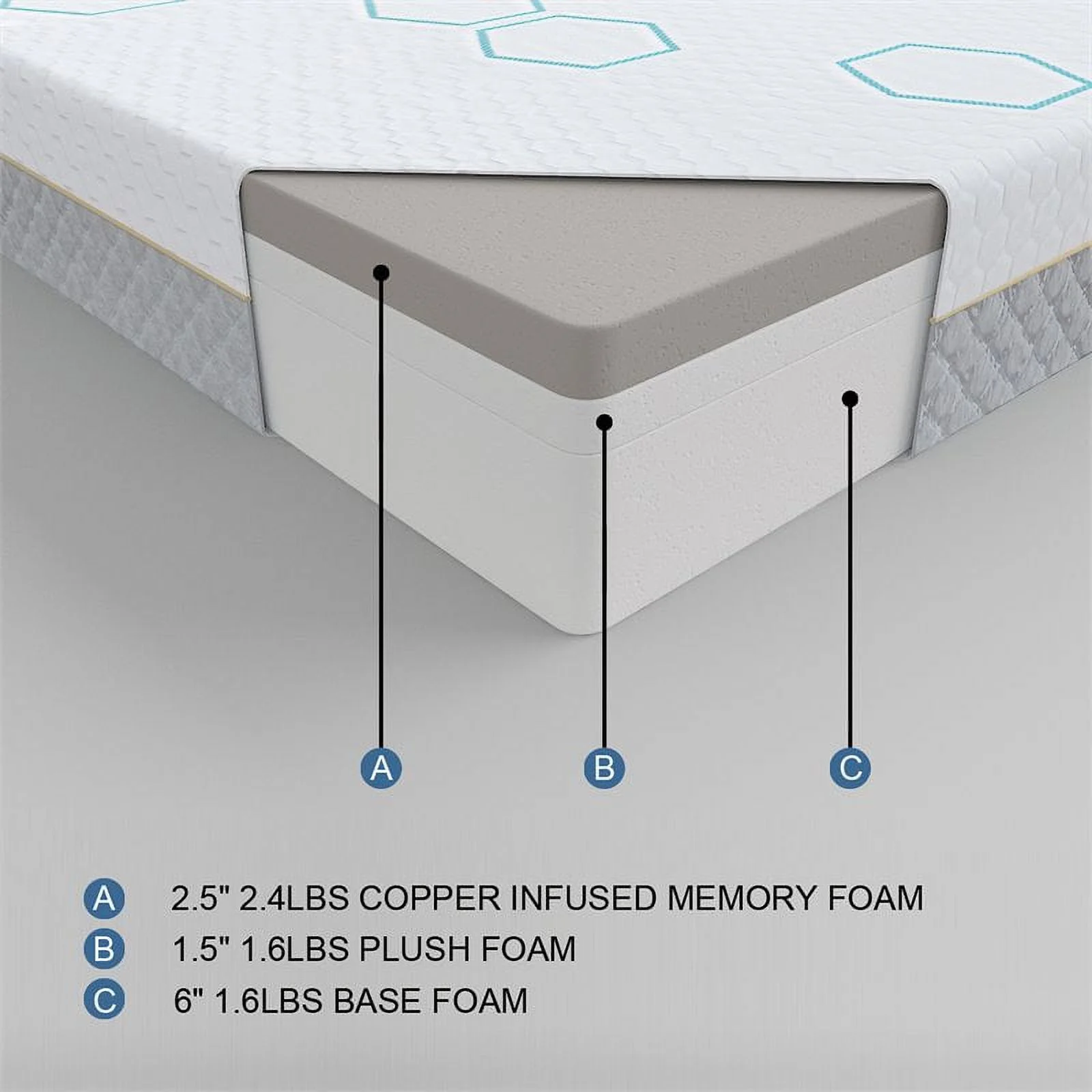 Lexicon Lyra Fabric 12" Copper-Infused Cal. King Memory Foam Mattress in Gray