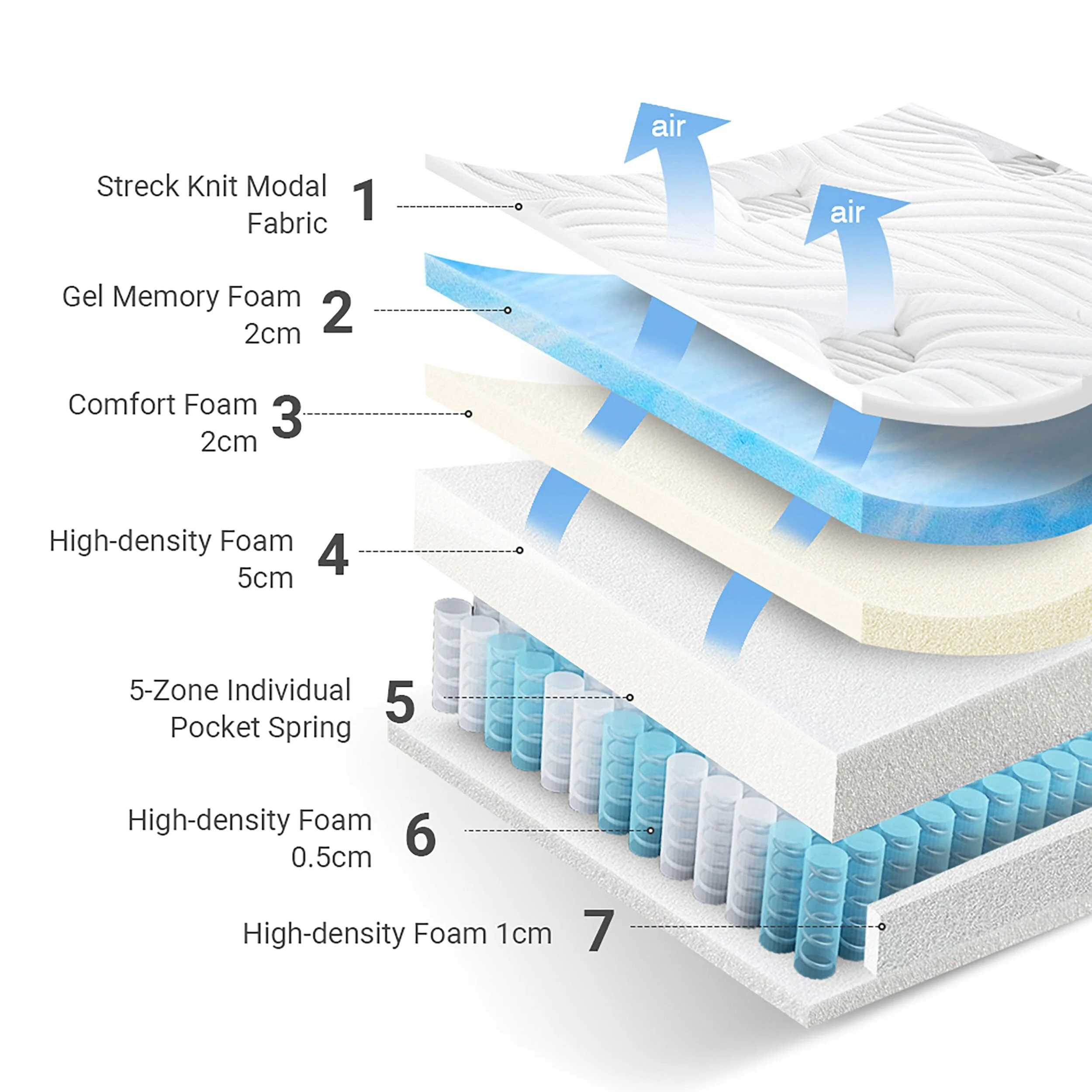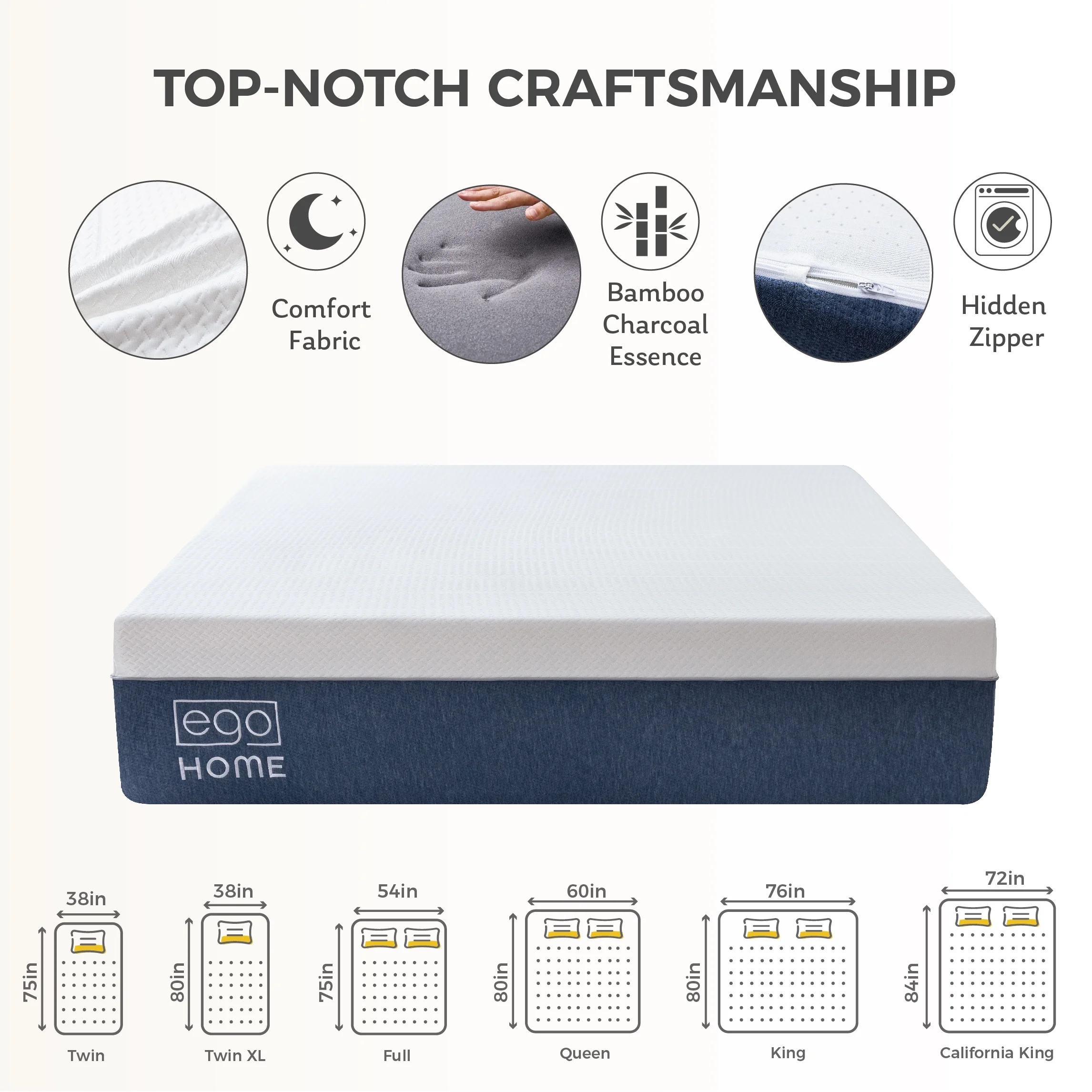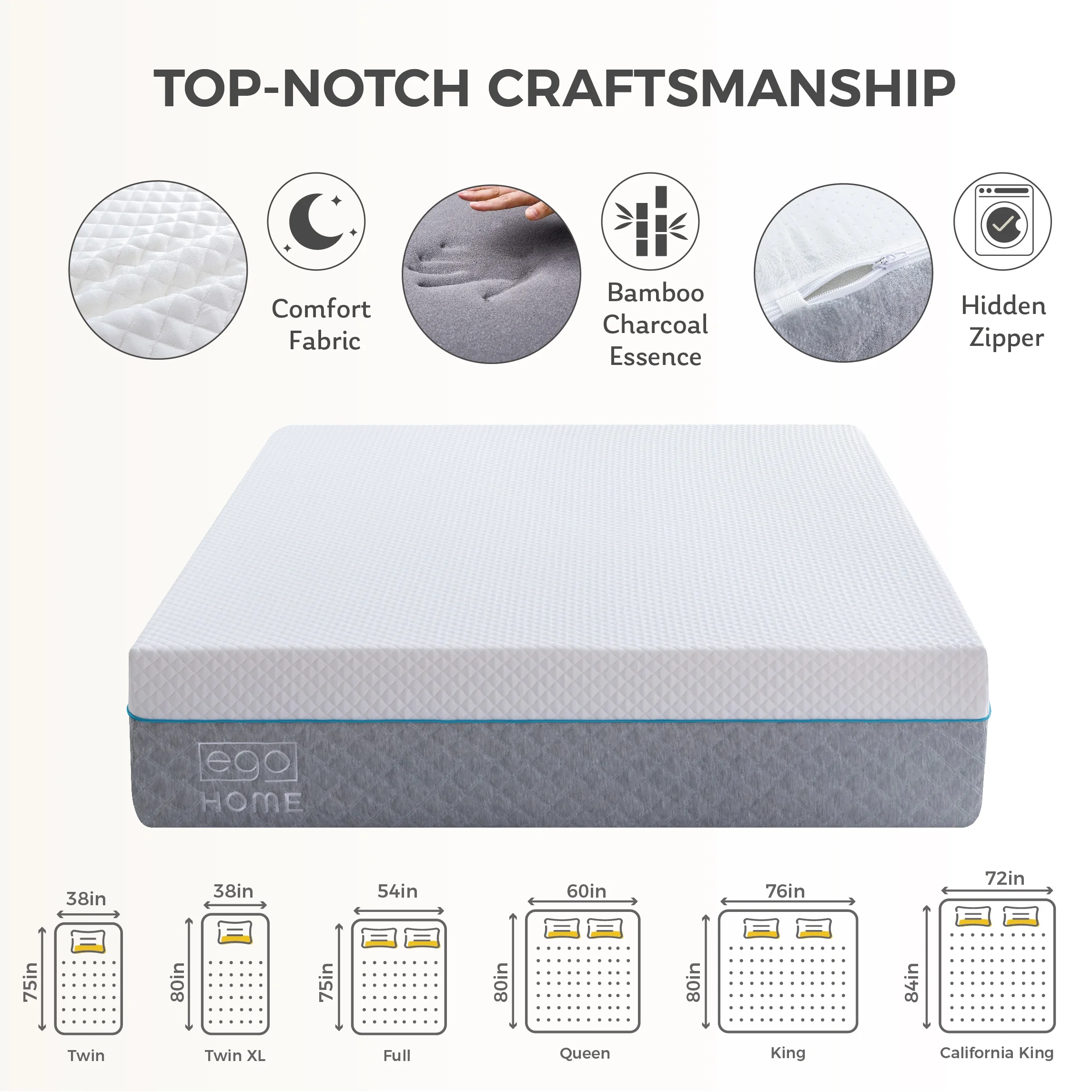Yatas Bedding Memory Sleep 72" x 84" Premier Cal King Fabric Mattress in White