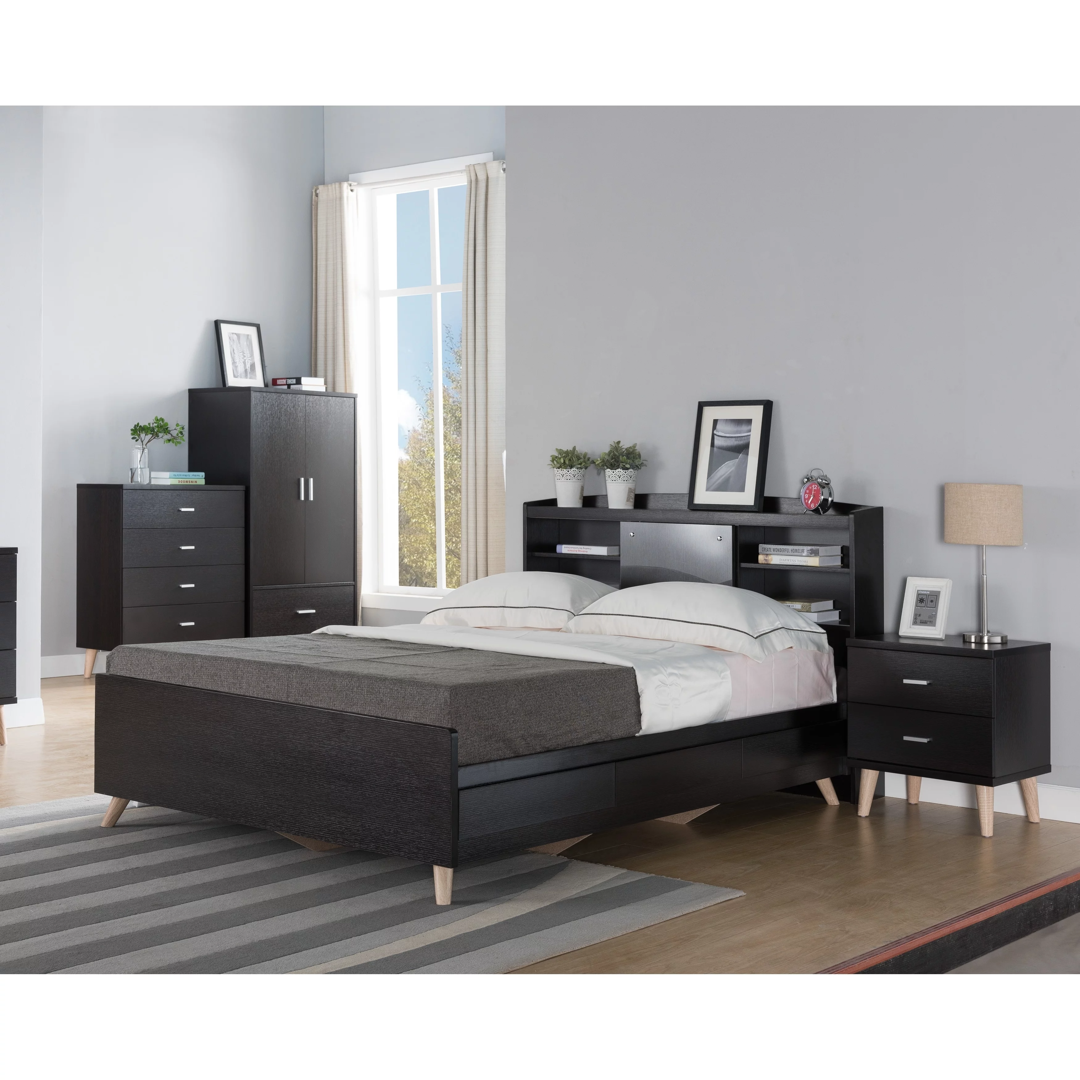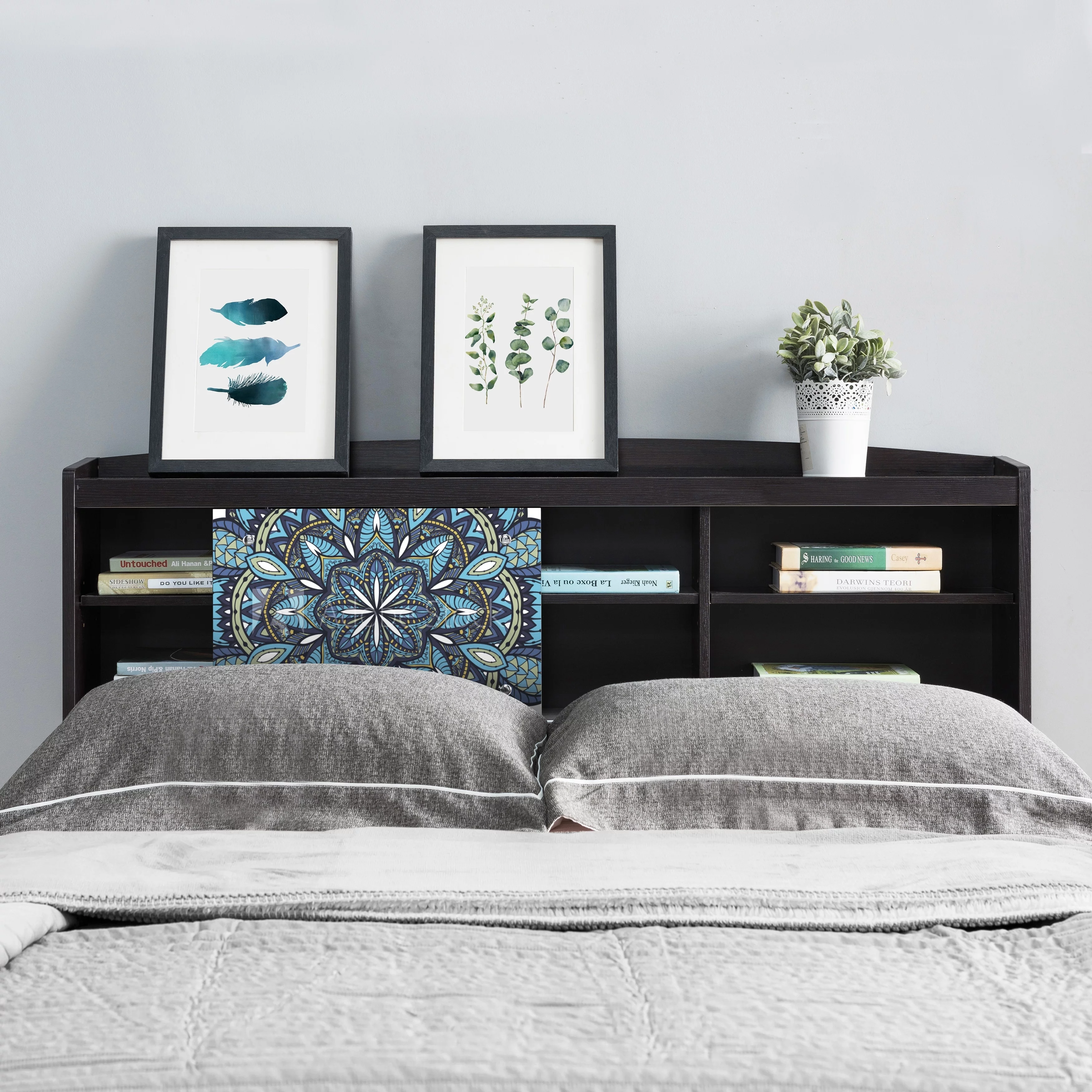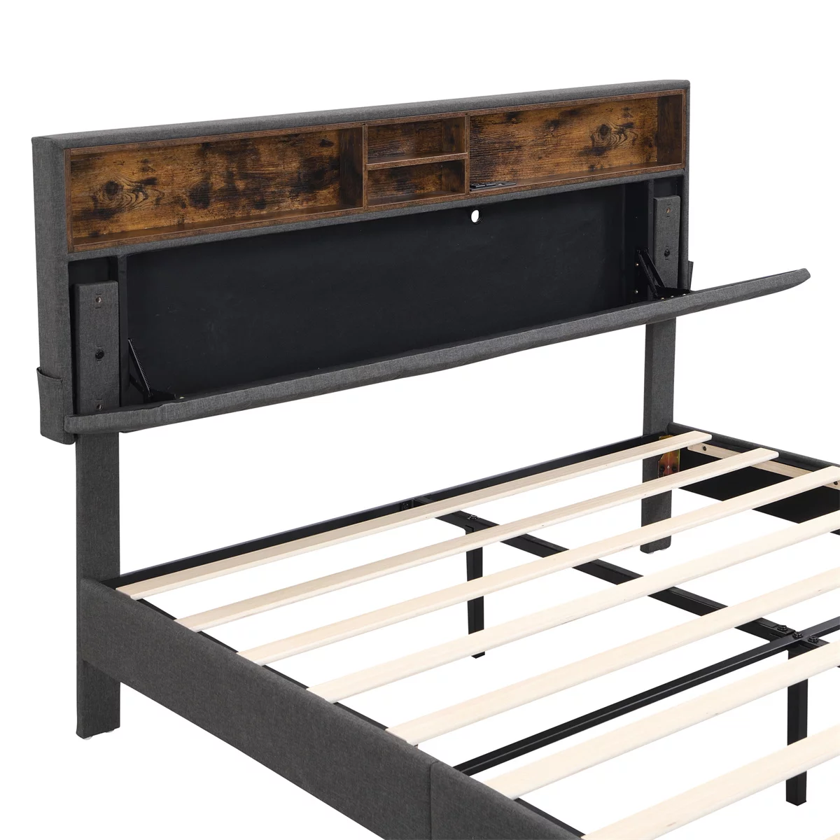 Vintage Full Size Bed Storage Headboard and USB Port for Teenagers Adults