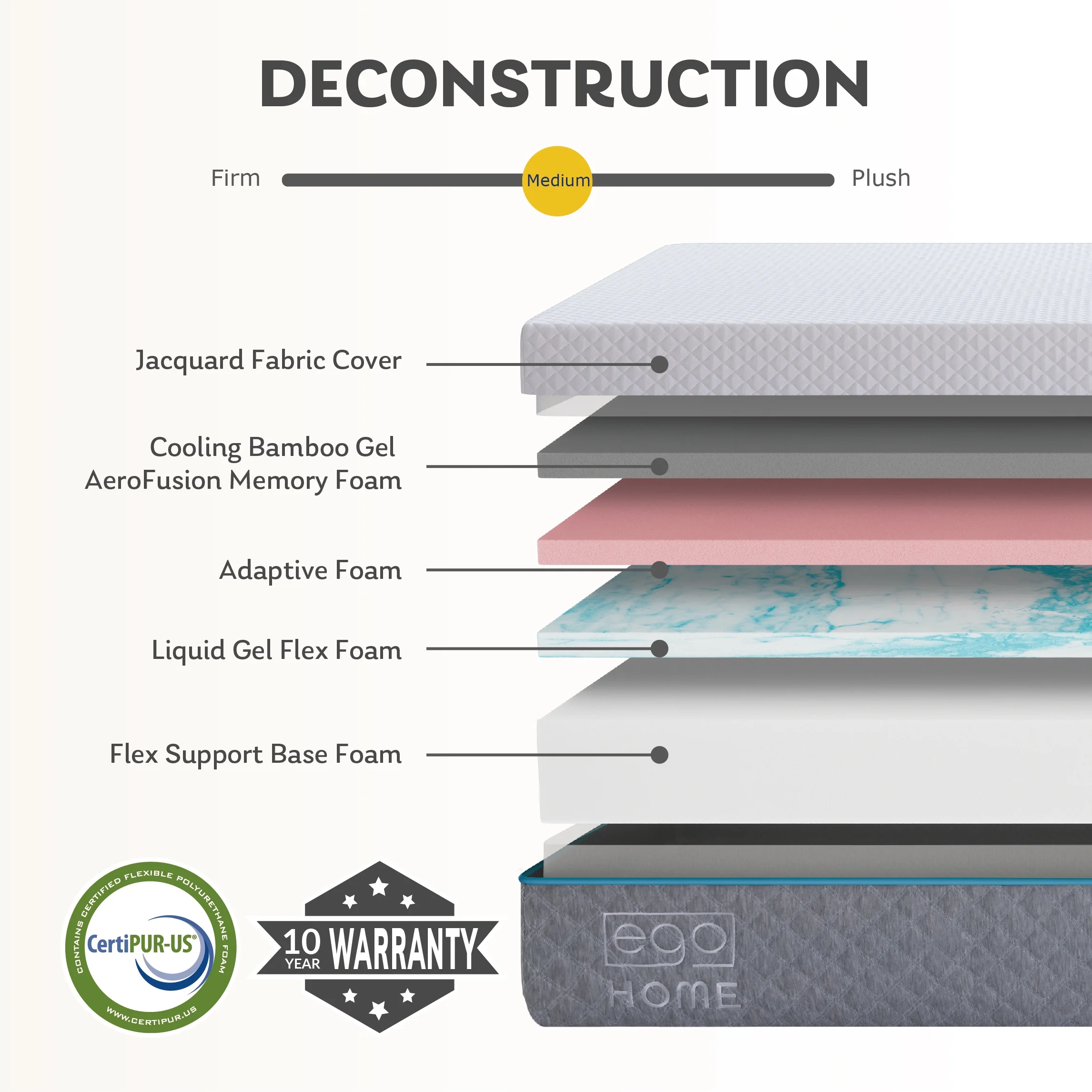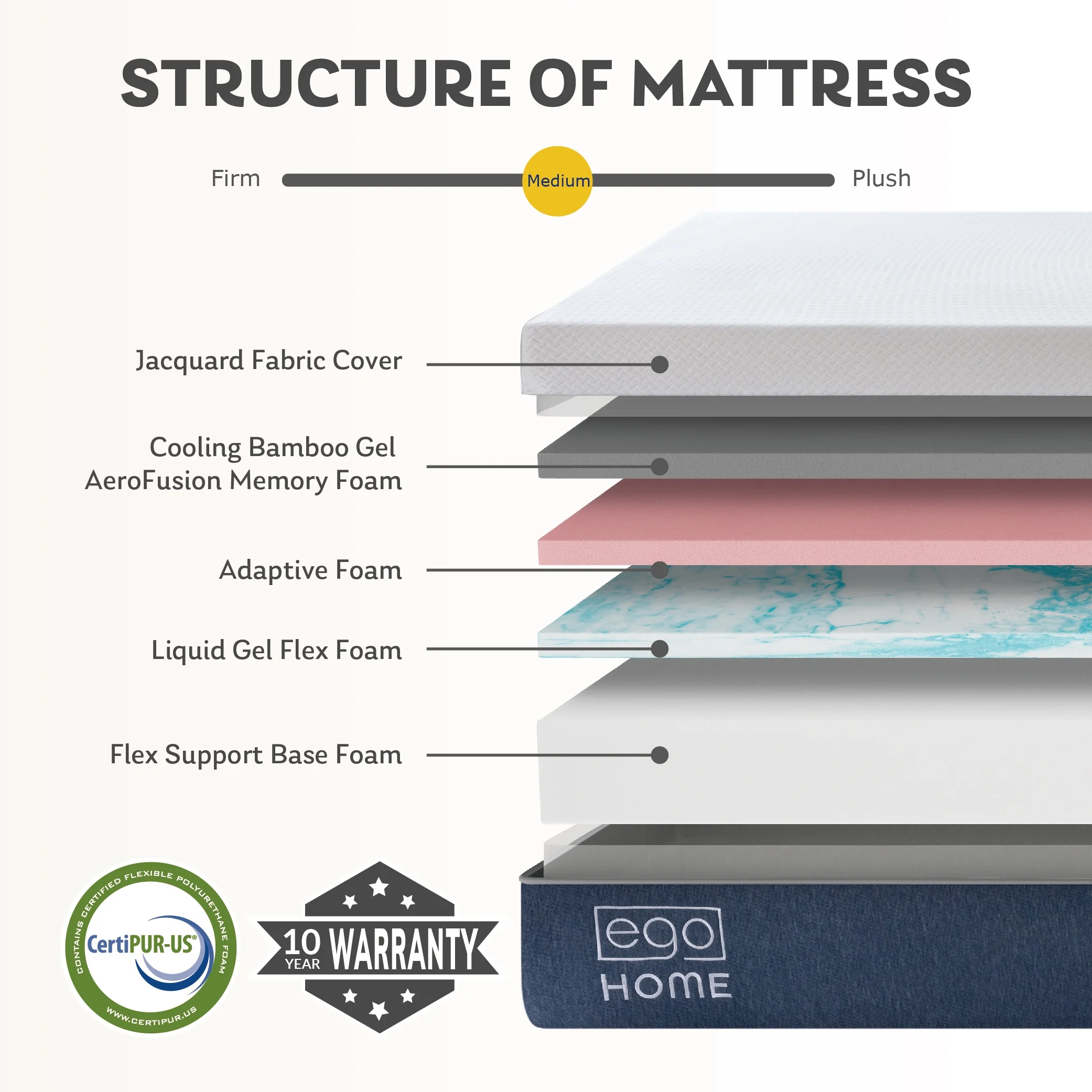 MLILY Ego Home 14 inch Cal King Mattress in a Box, Gel Memory Foam Mattress, Medium