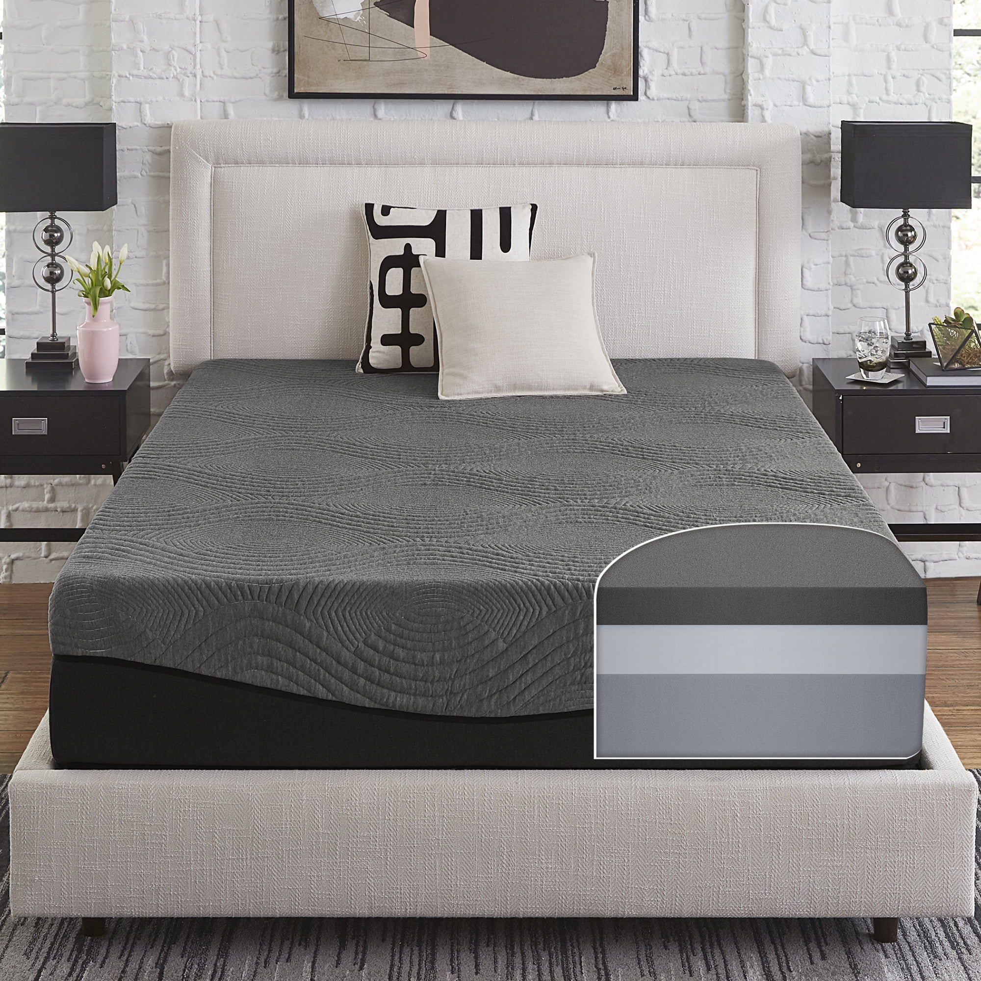 Slumber Solutions Active 12" Ebonite Memory Foam Mattress, Mattress-In-A-Box, Cal King