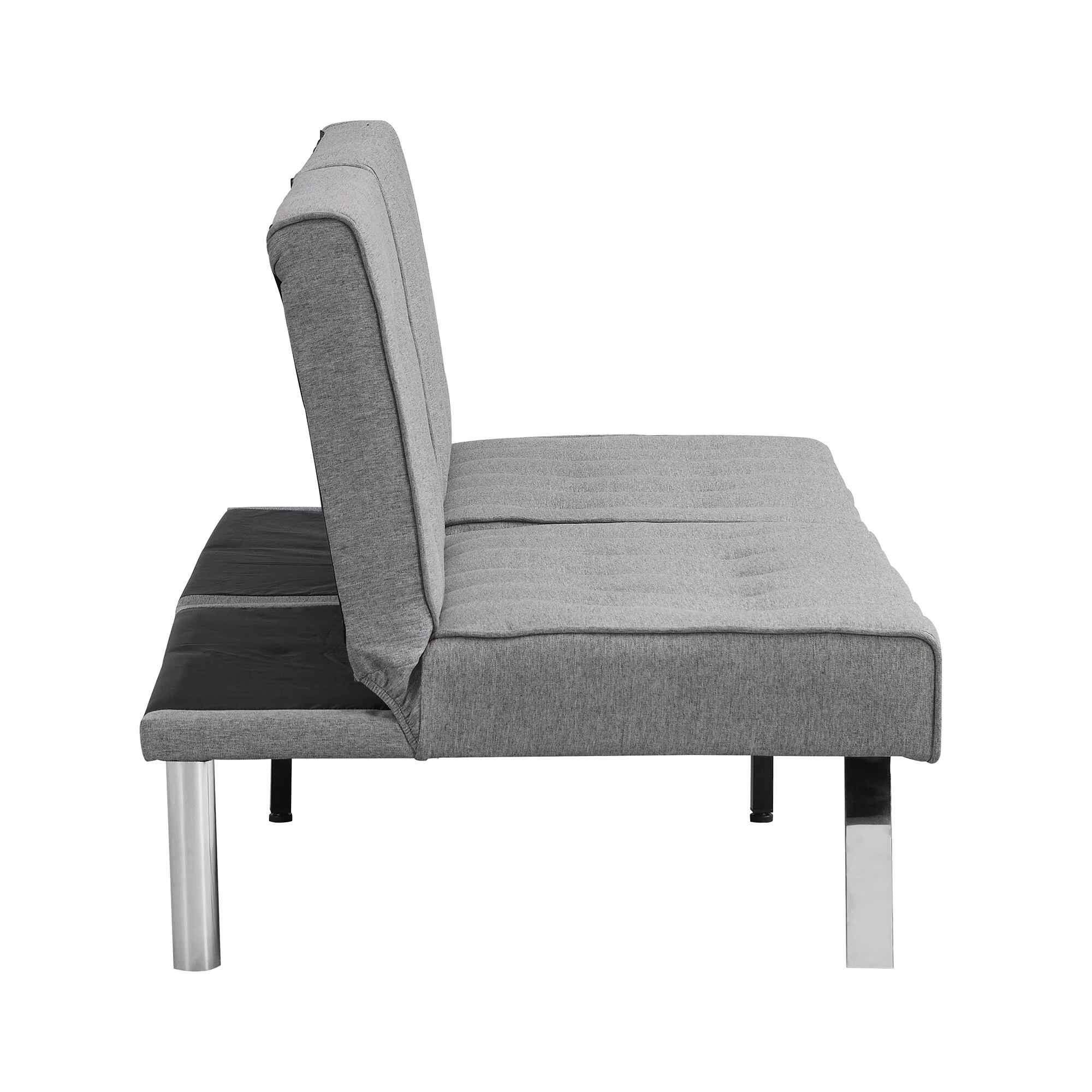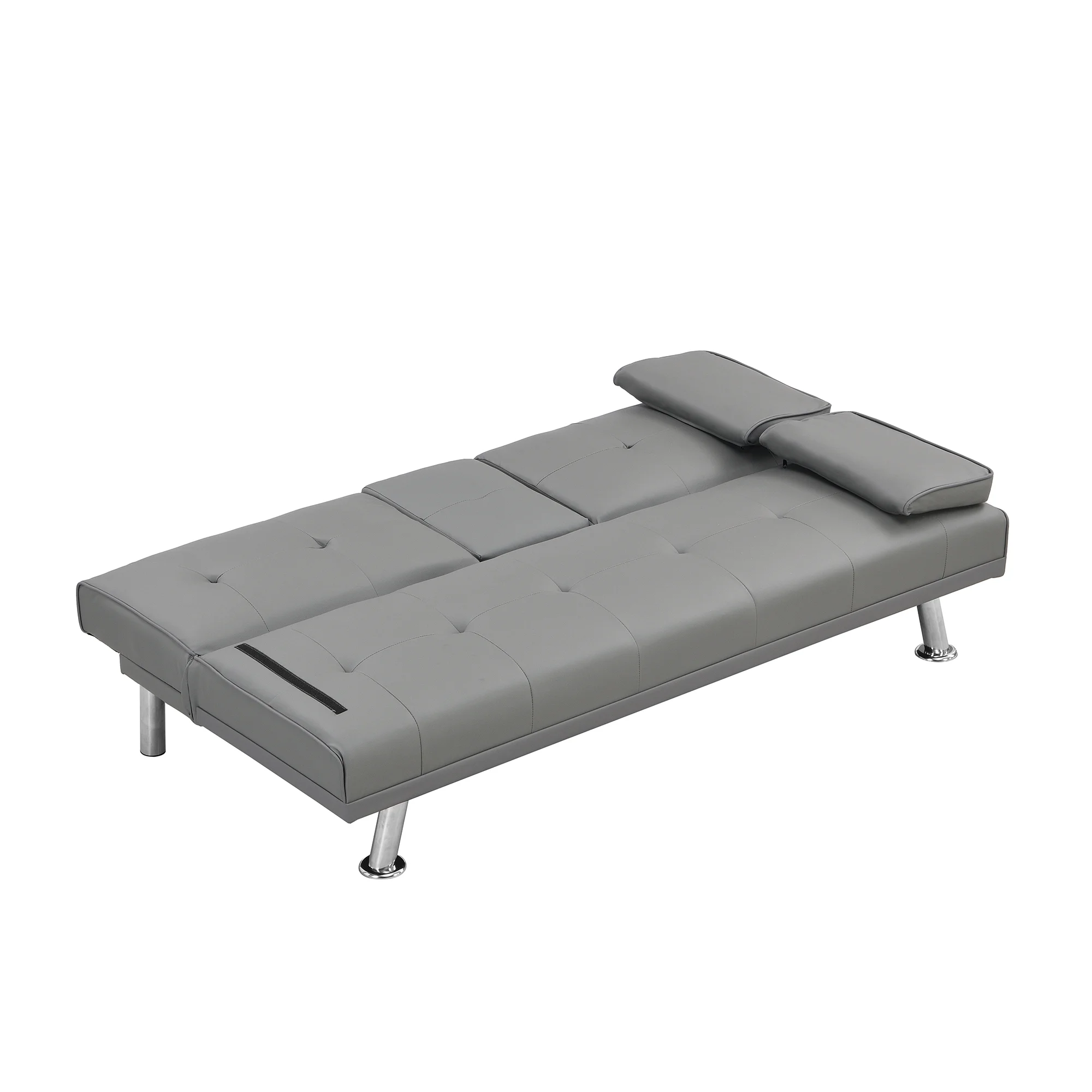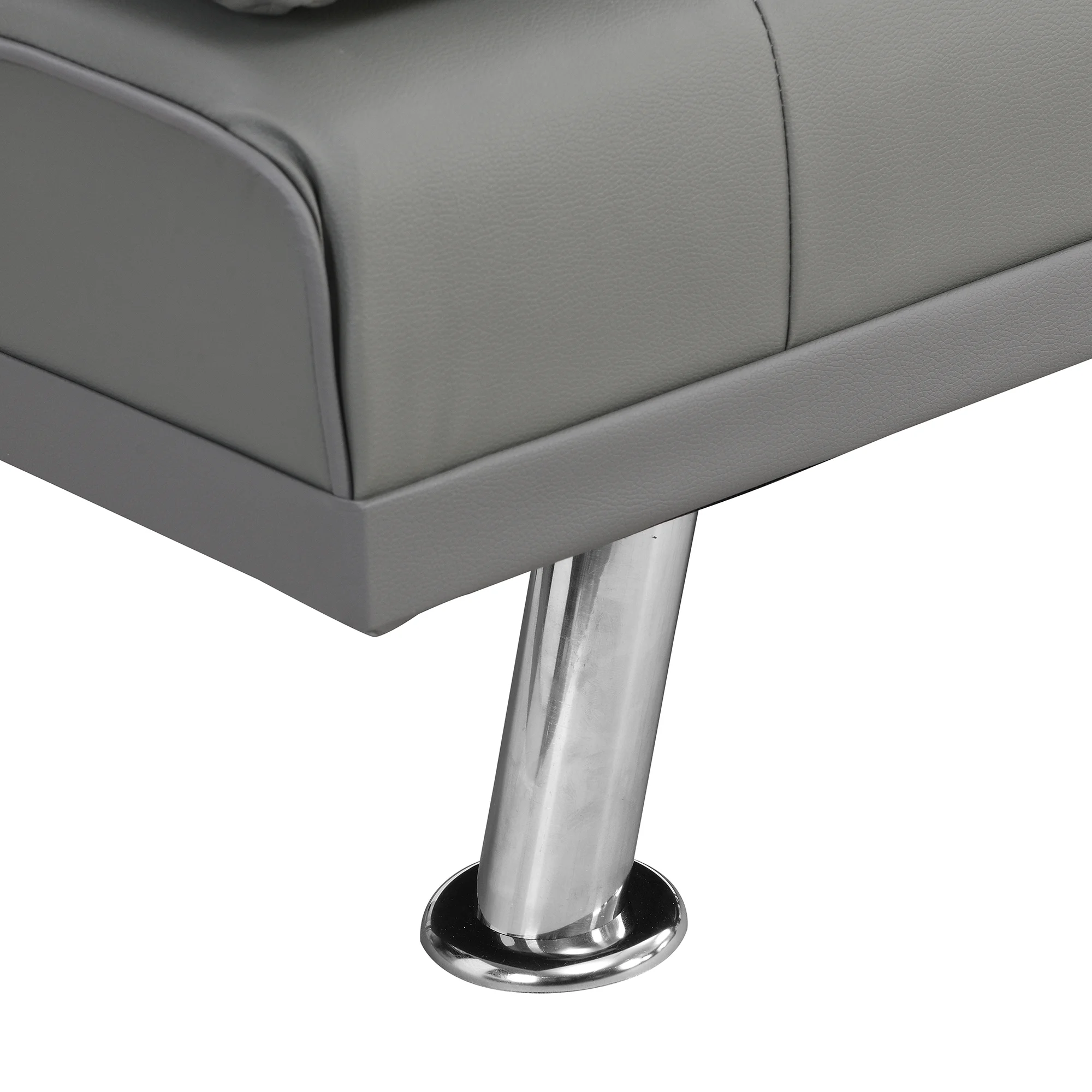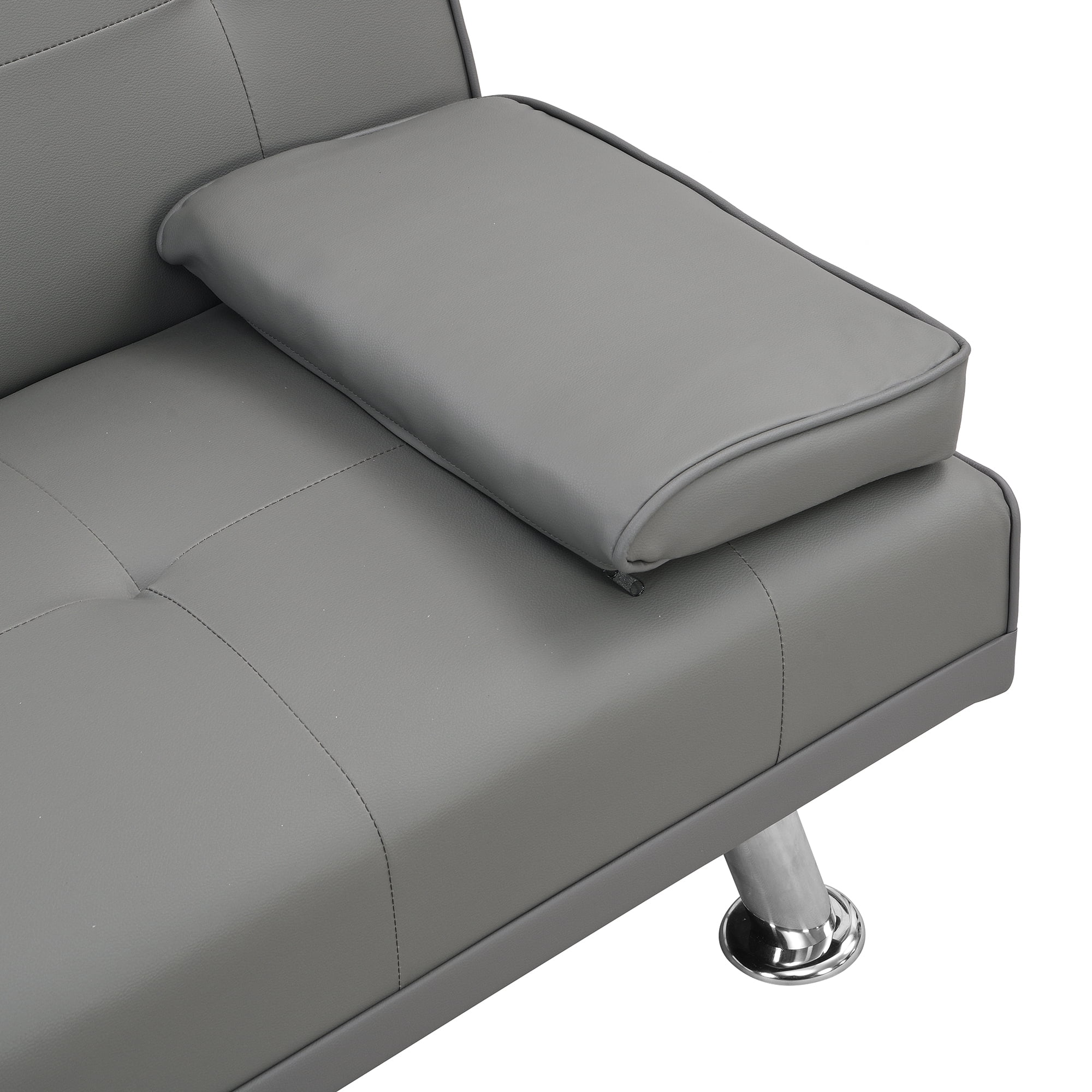 sofa bed with Armrest two holders WOOD FRAME, STAINLESS LEG, FUTON GREY PVC