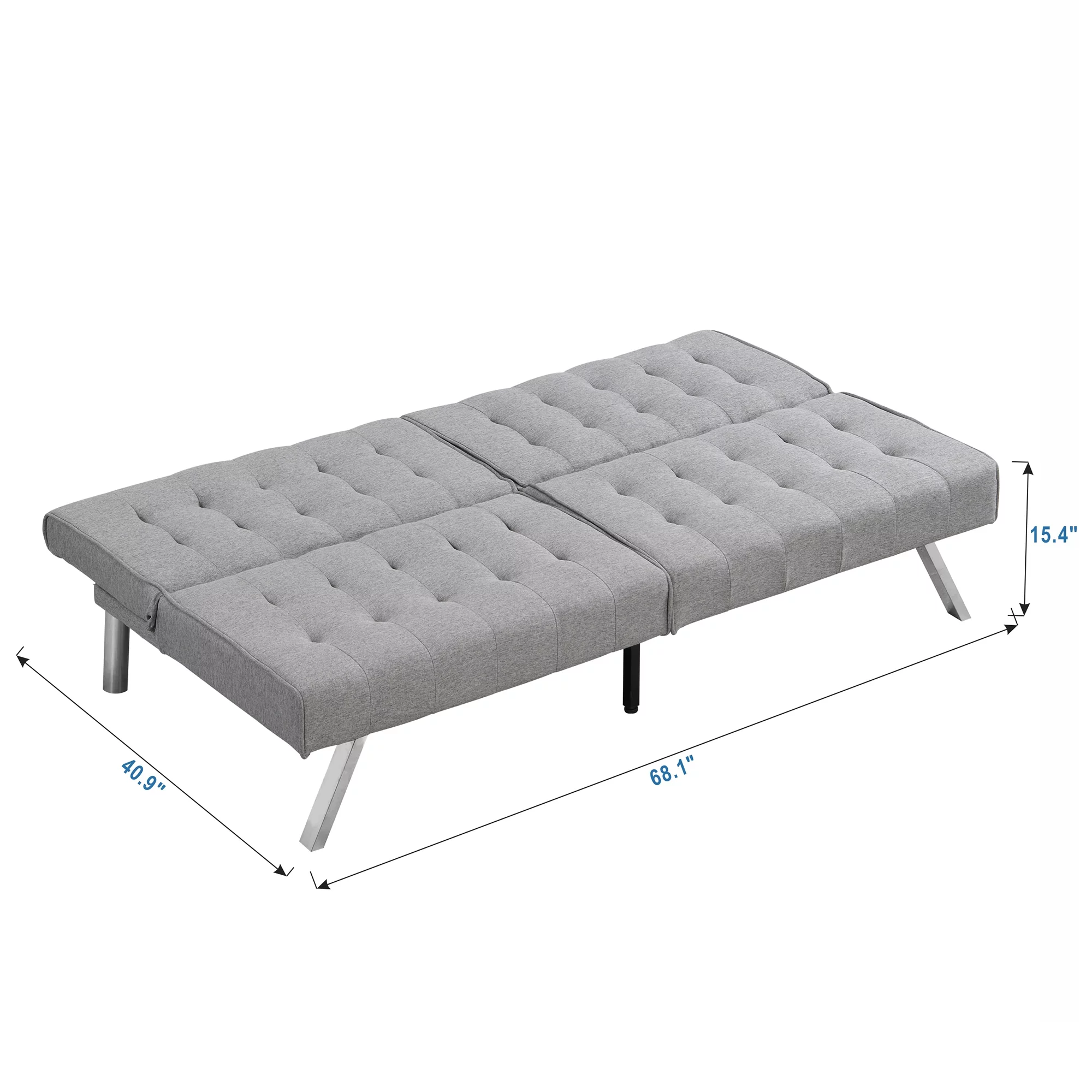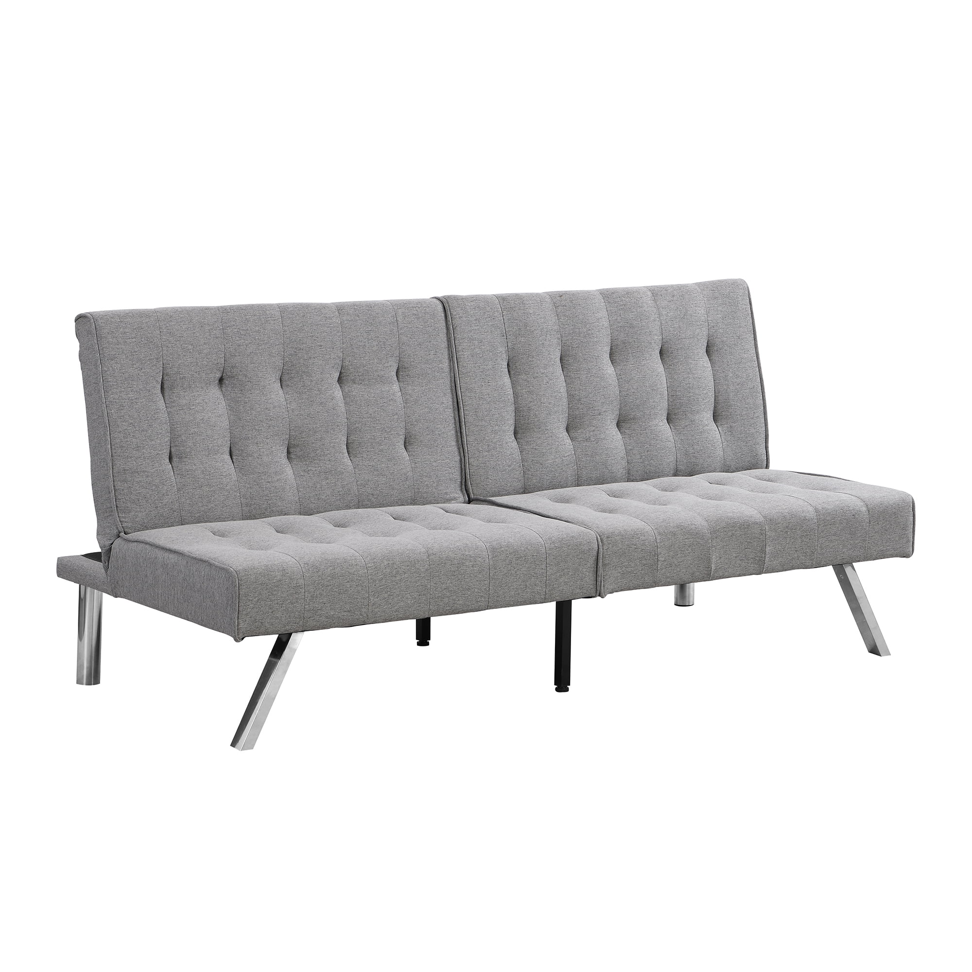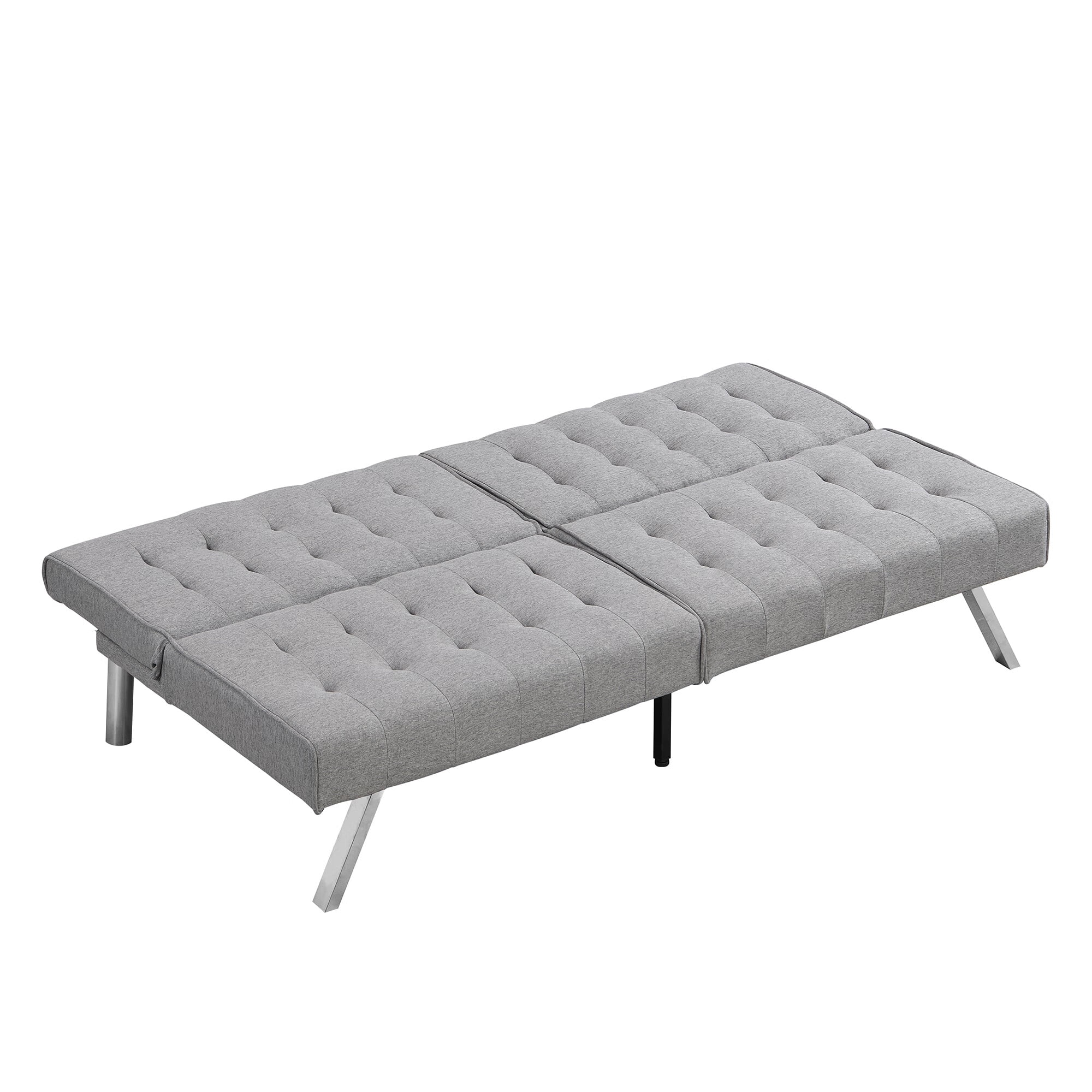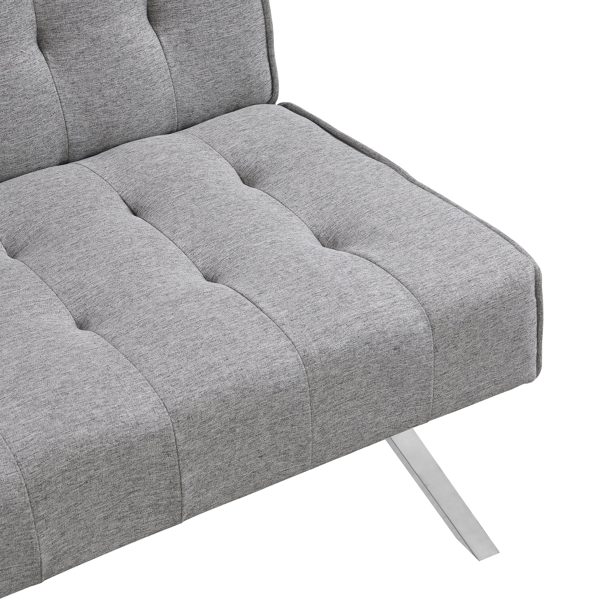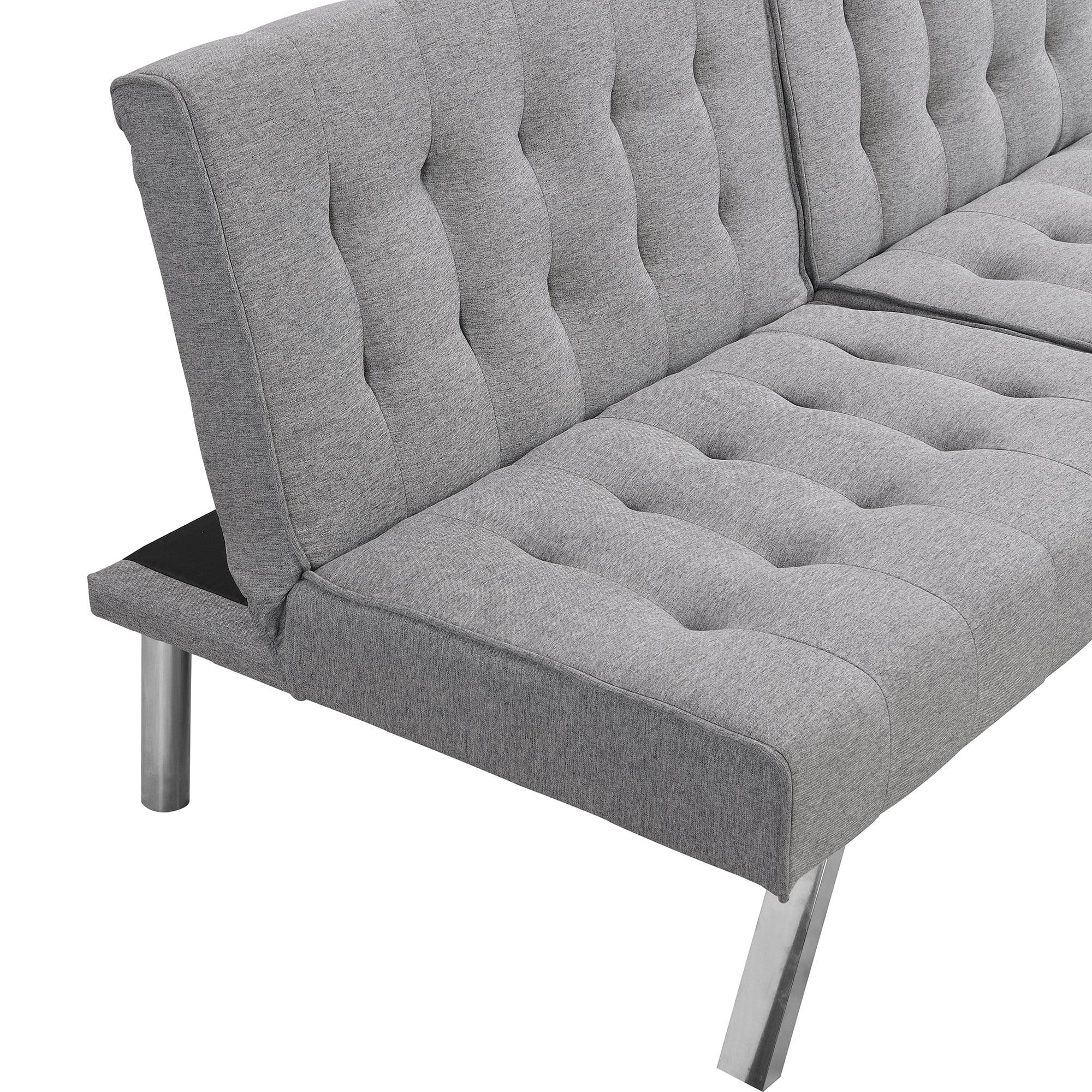 sofa bed with Armrest two holders WOOD FRAME, STAINLESS LEG, FUTON GREY PVC