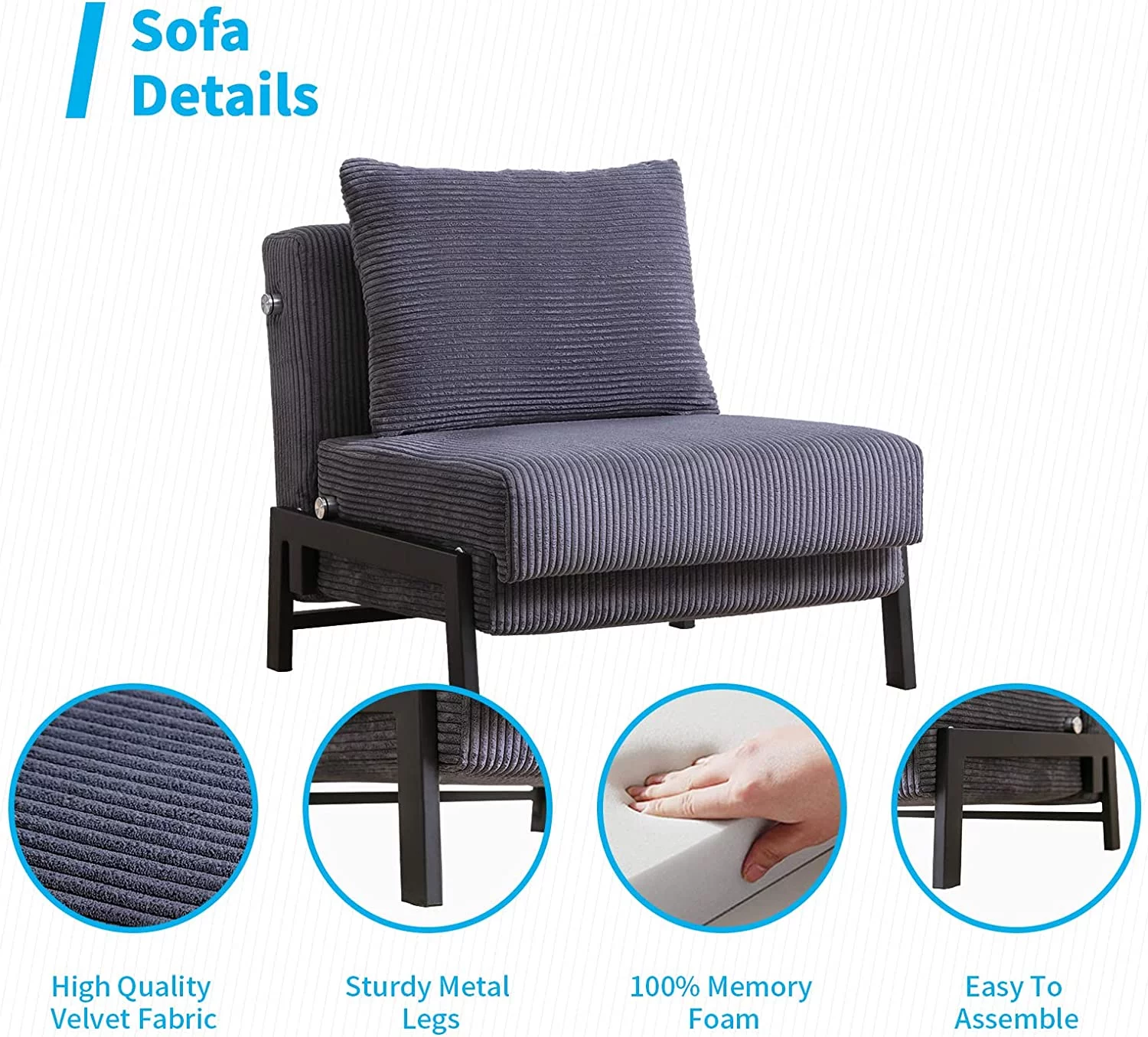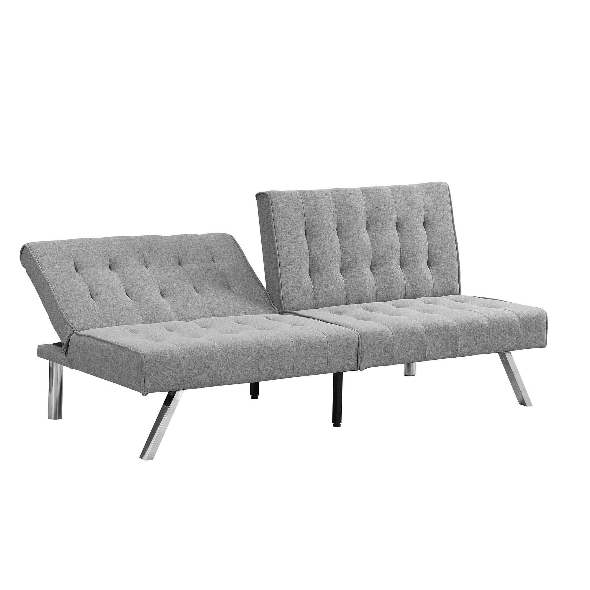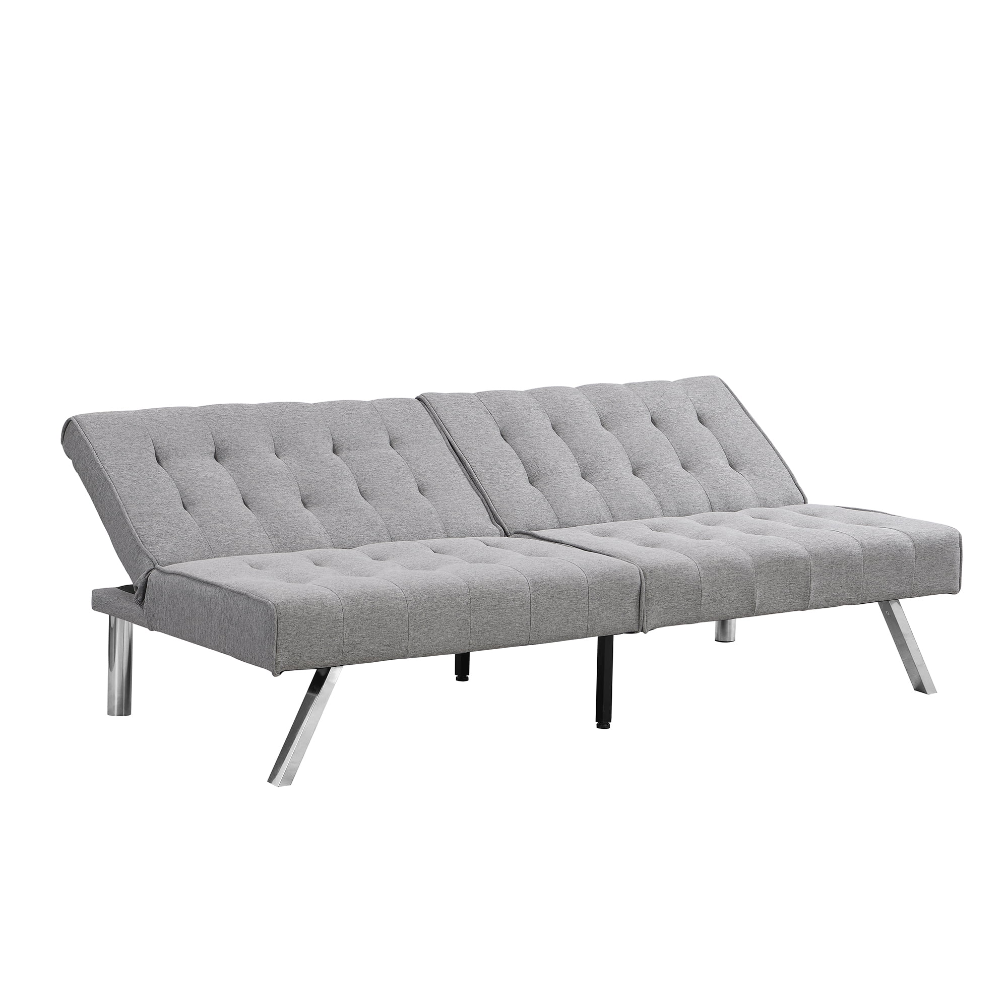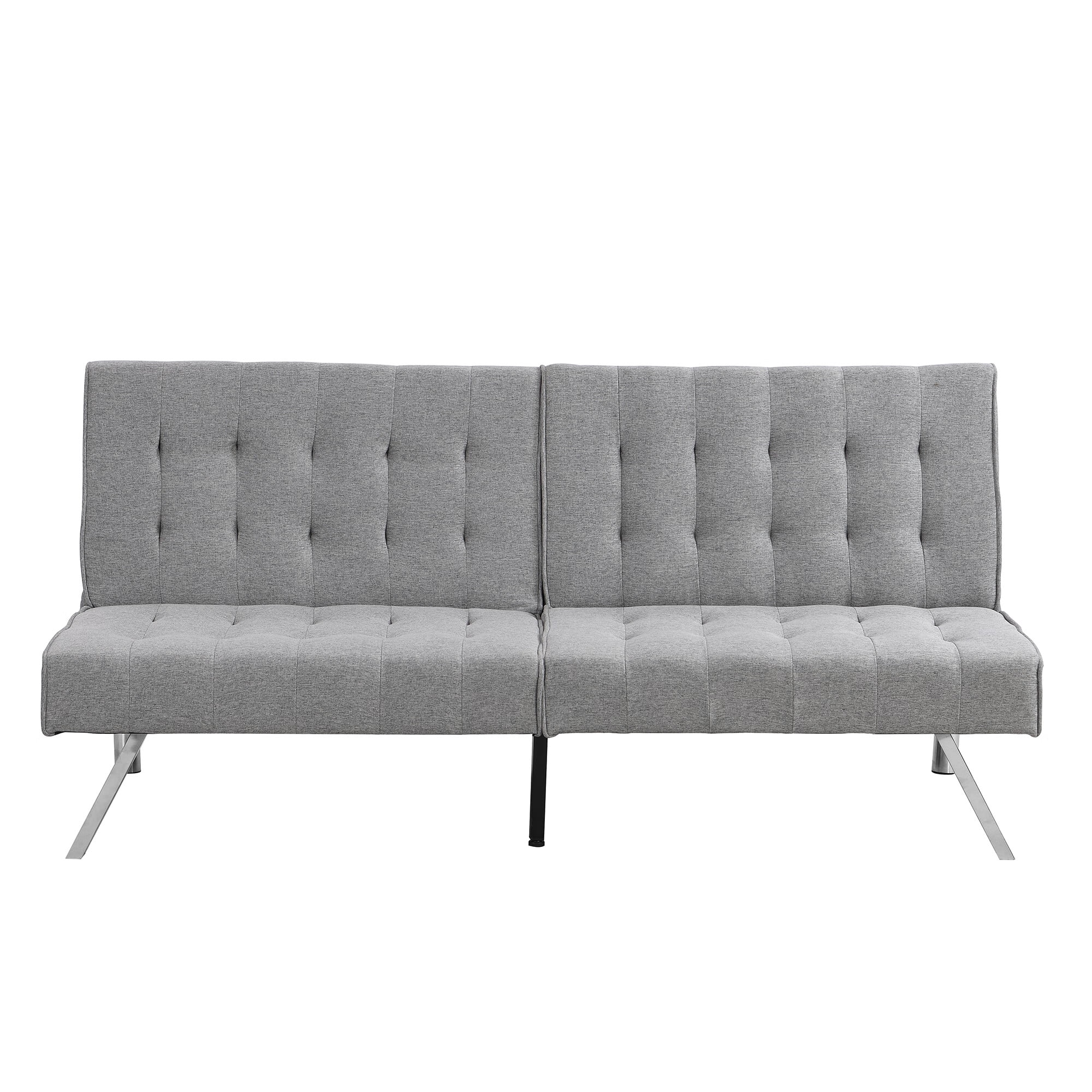 sofa bed with Armrest two holders WOOD FRAME, STAINLESS LEG, FUTON GREY PVC