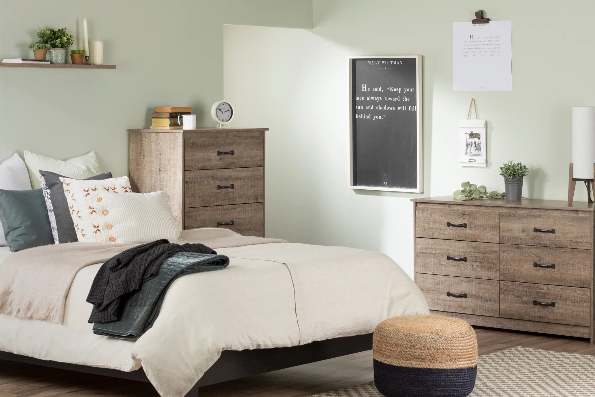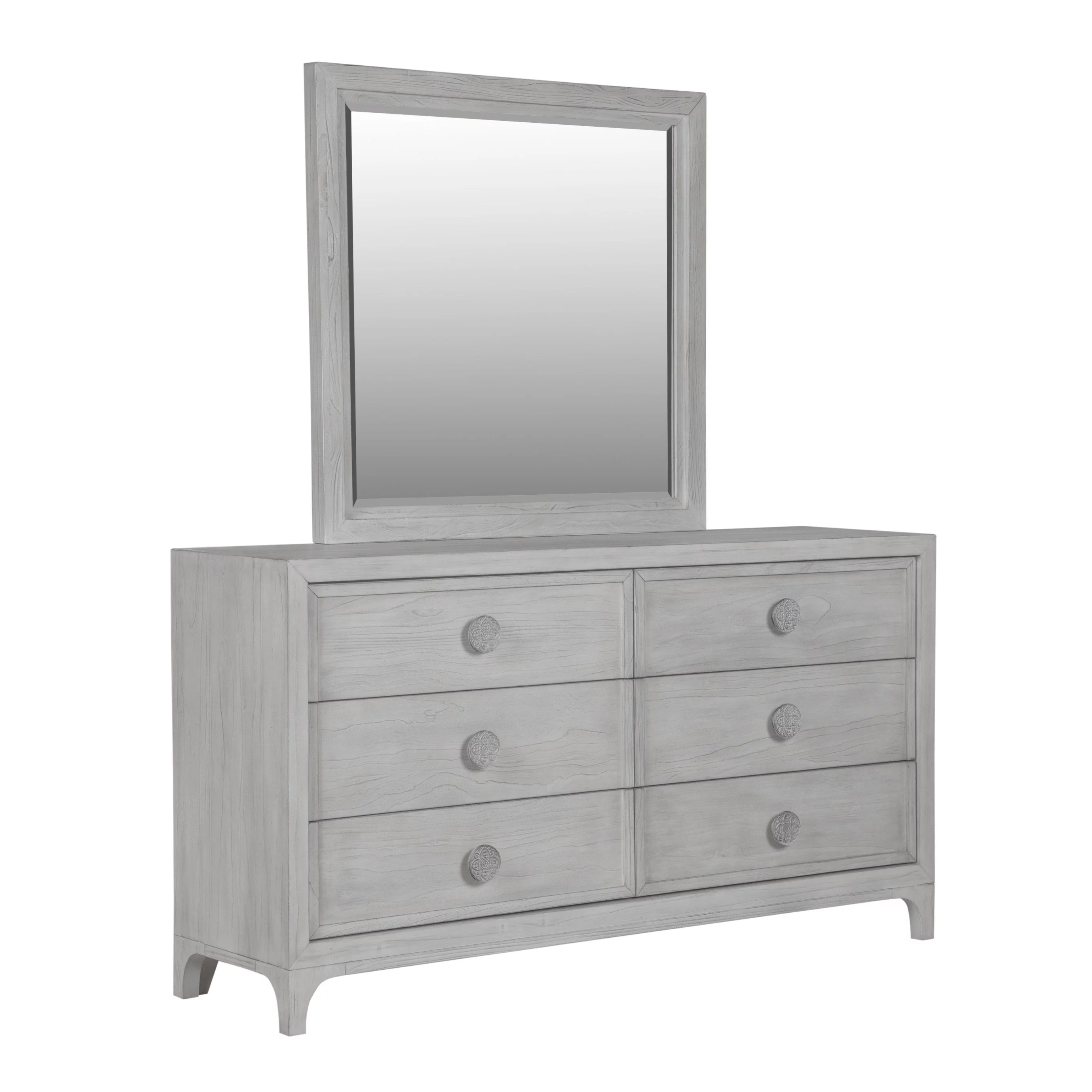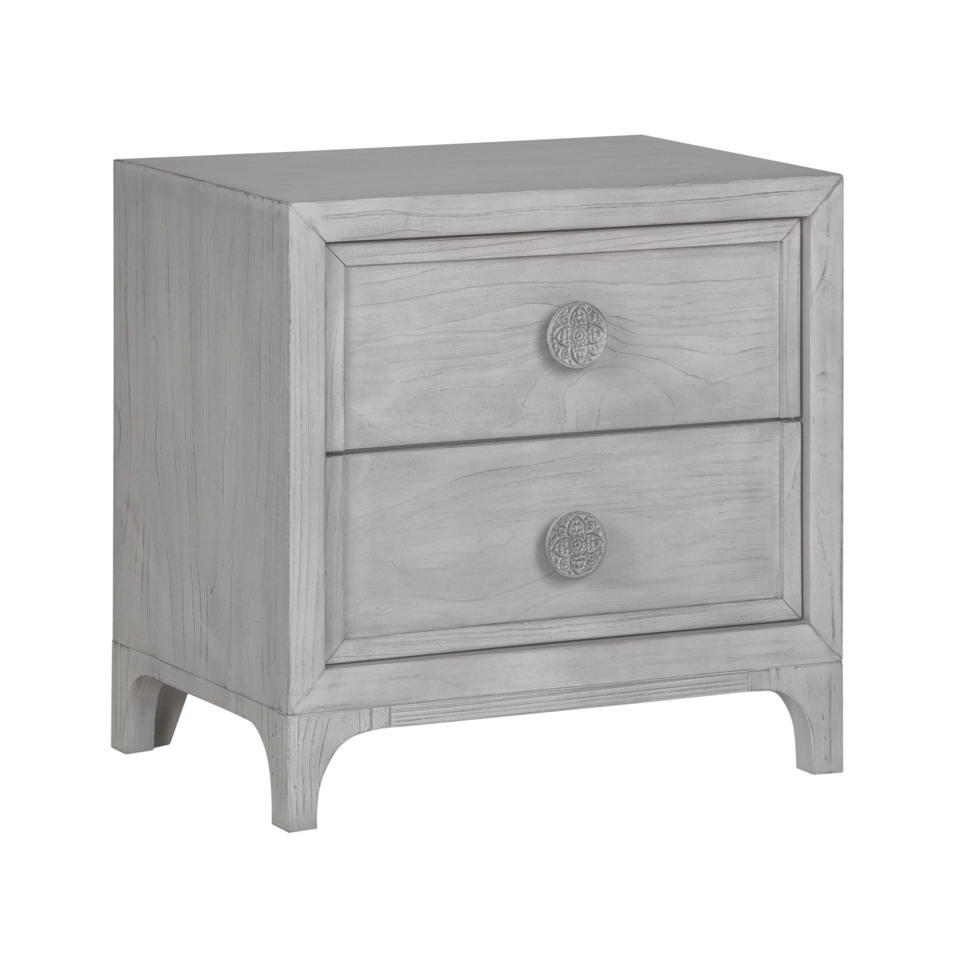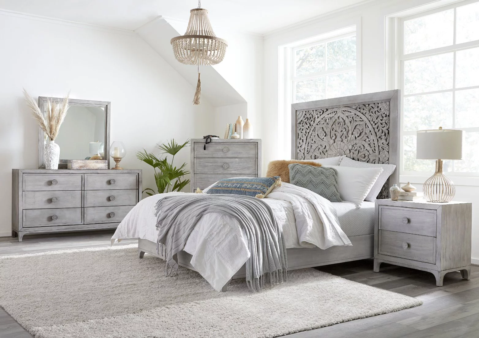 Modus Boho Chic 5 PC Queen Bedroom Set w 2 Nightstand in Washed White
