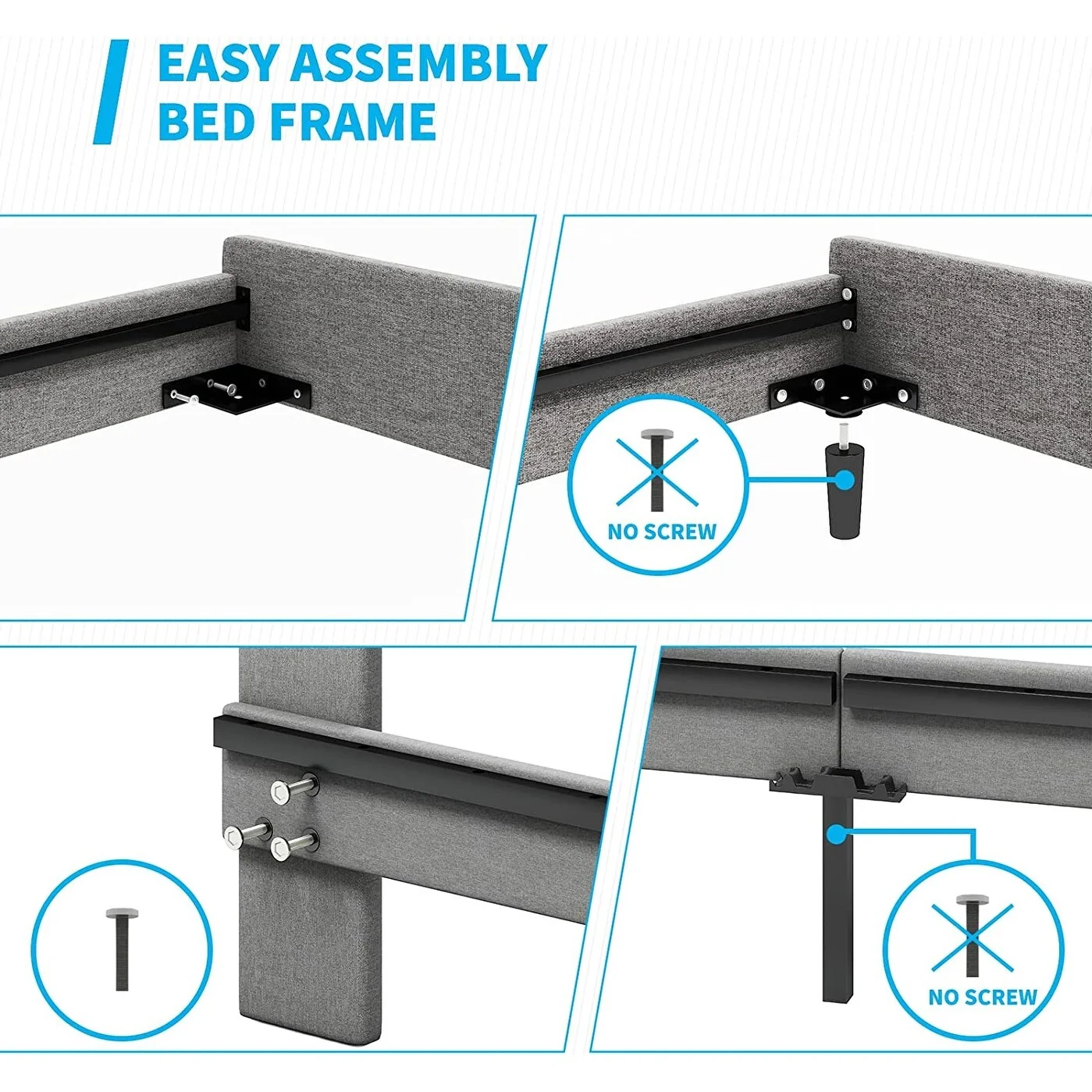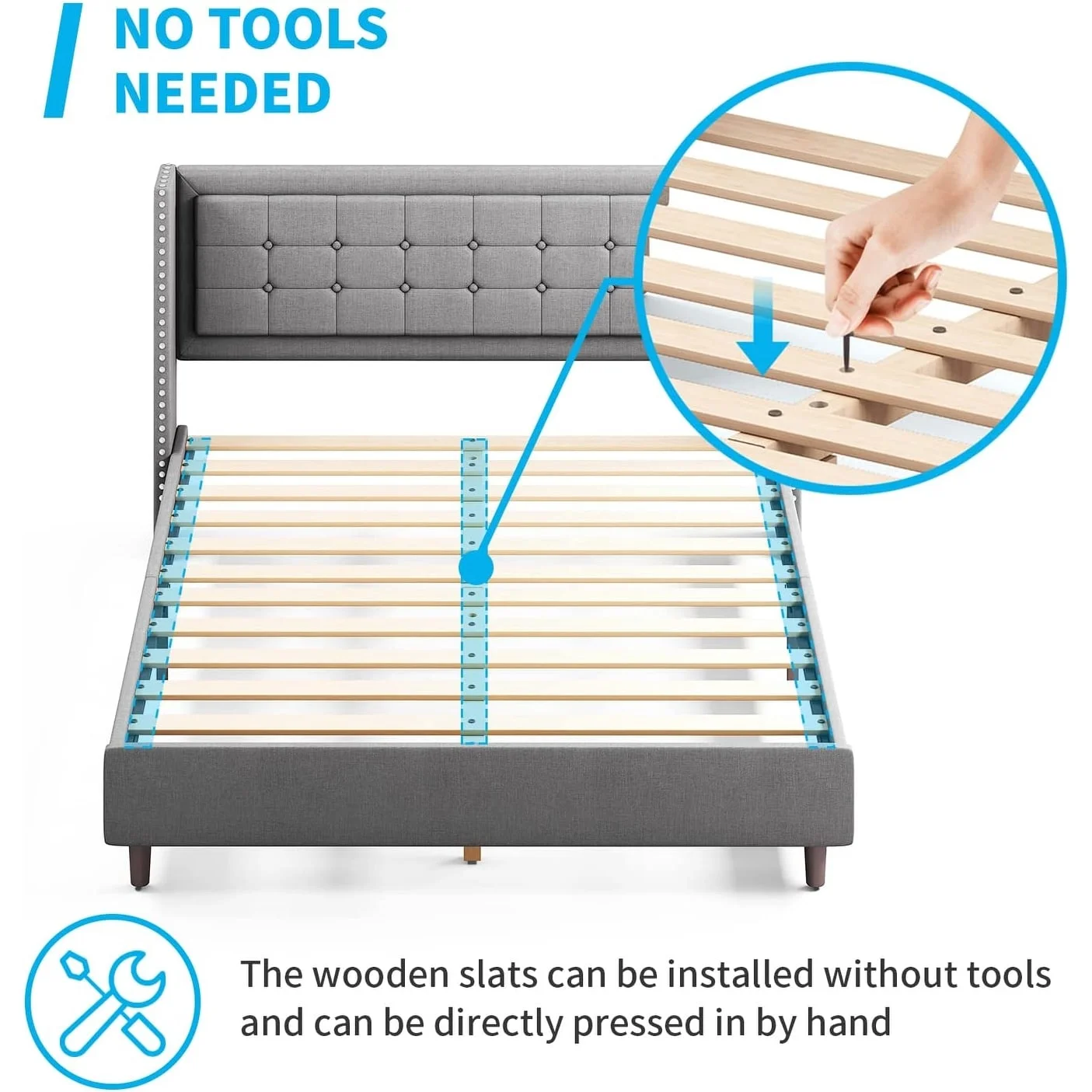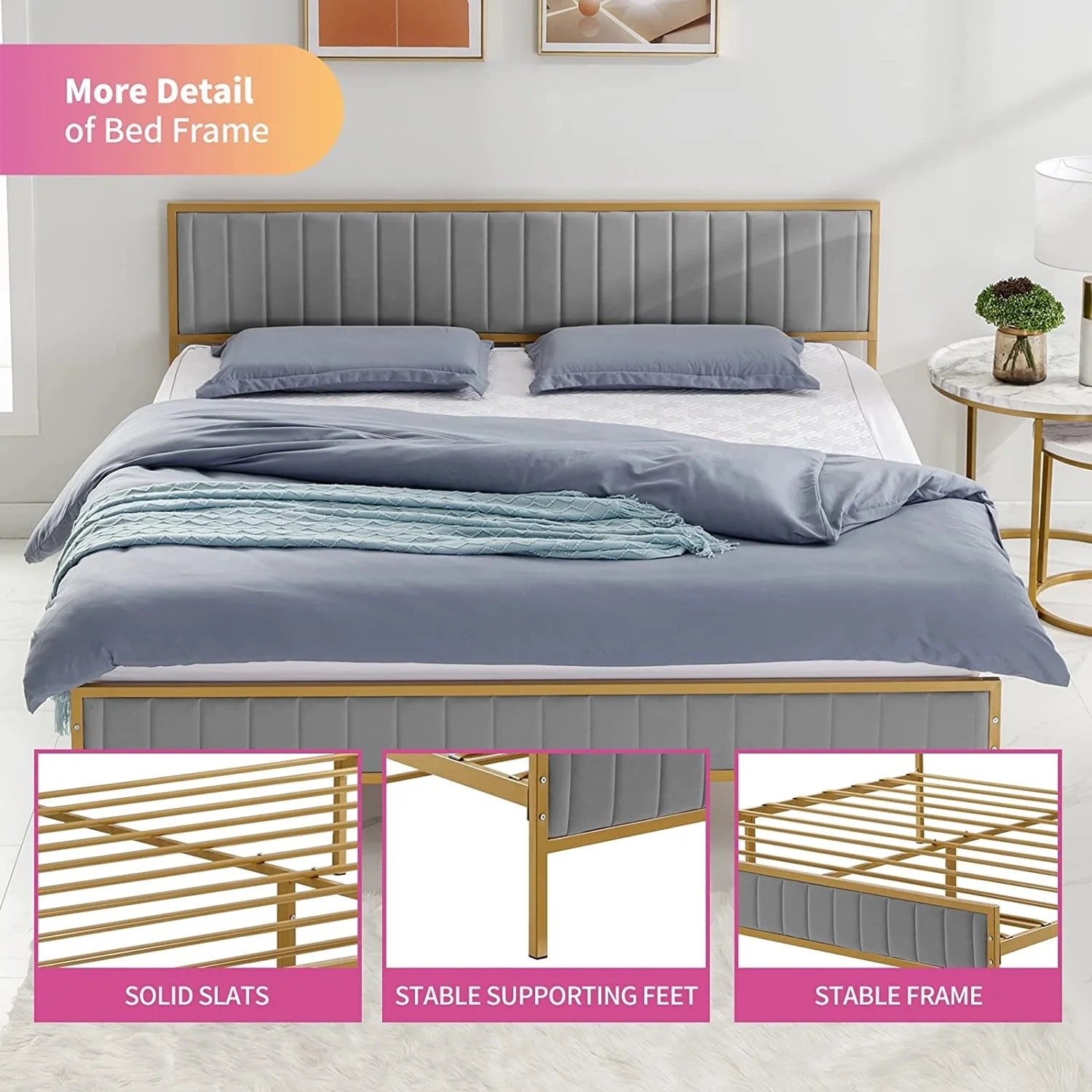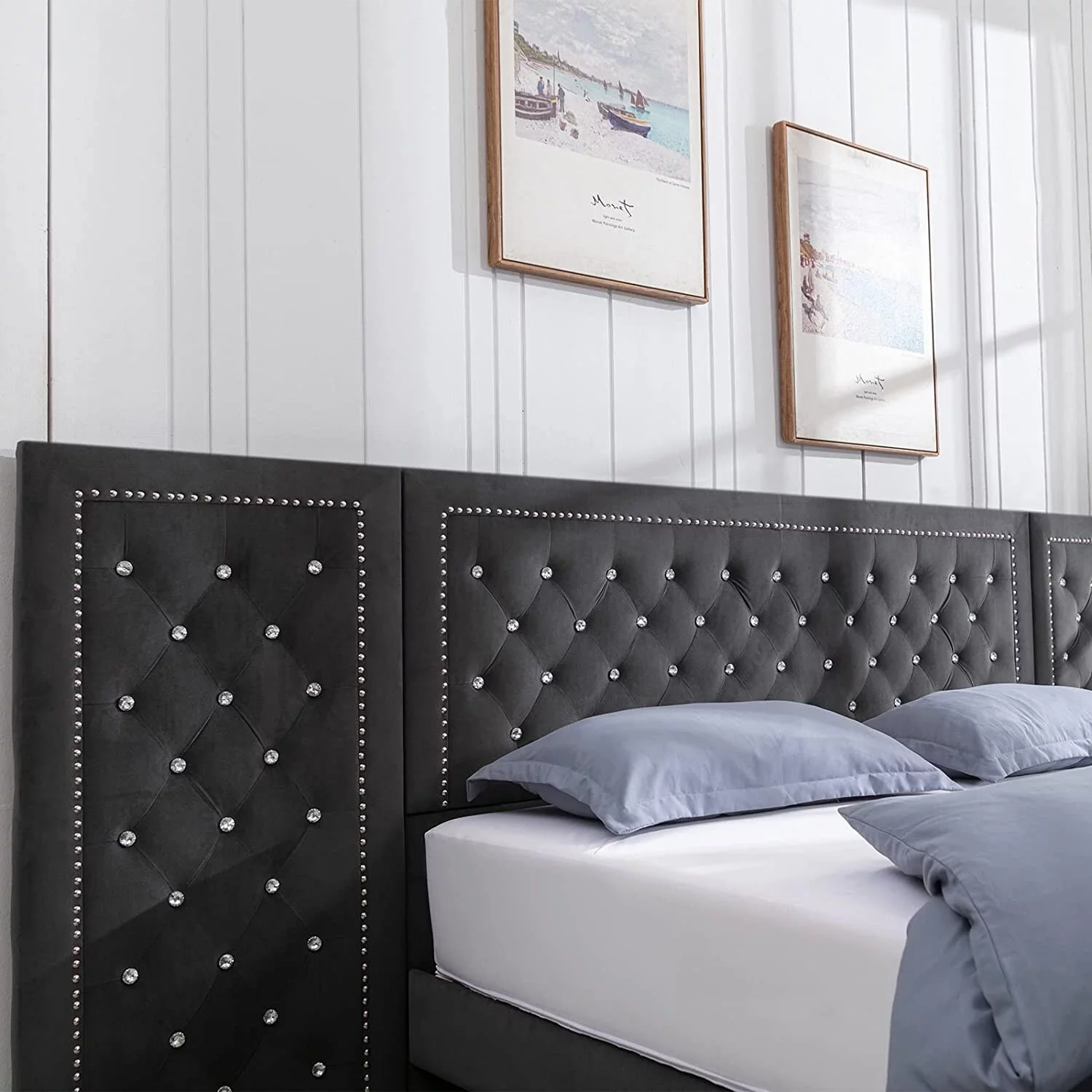 Mixoy Bed Frame,Bedroom Furniture,Dutch Velvet,Upholstered Bed Frame with Channel Tufted Headboard Light Grey - King