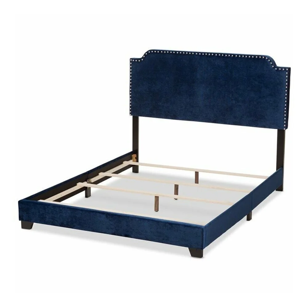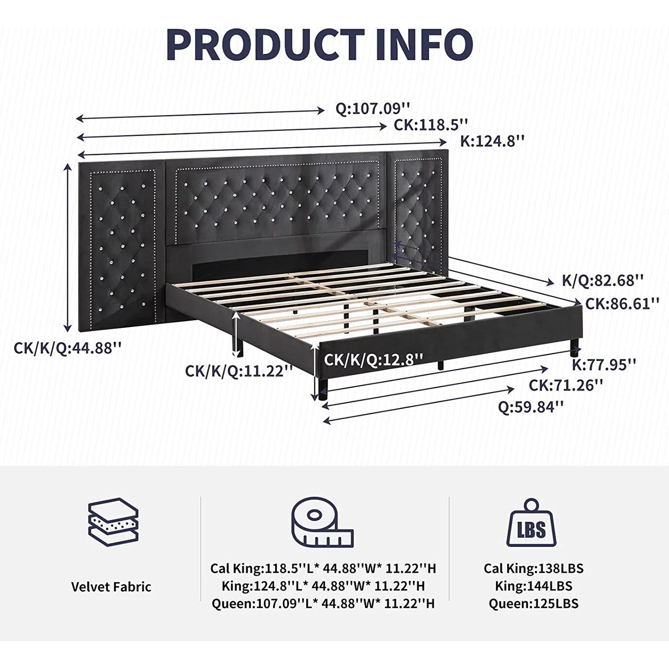Mixoy Thin Velvet Bed Frame with Button Tufted Design Headboard Dark Grey - King