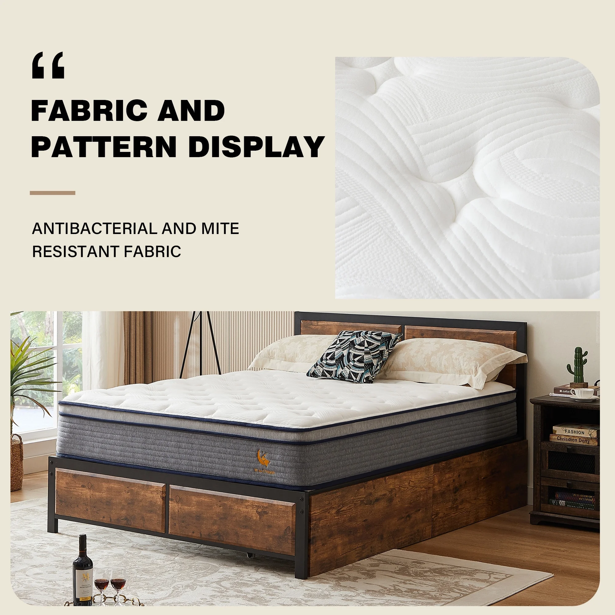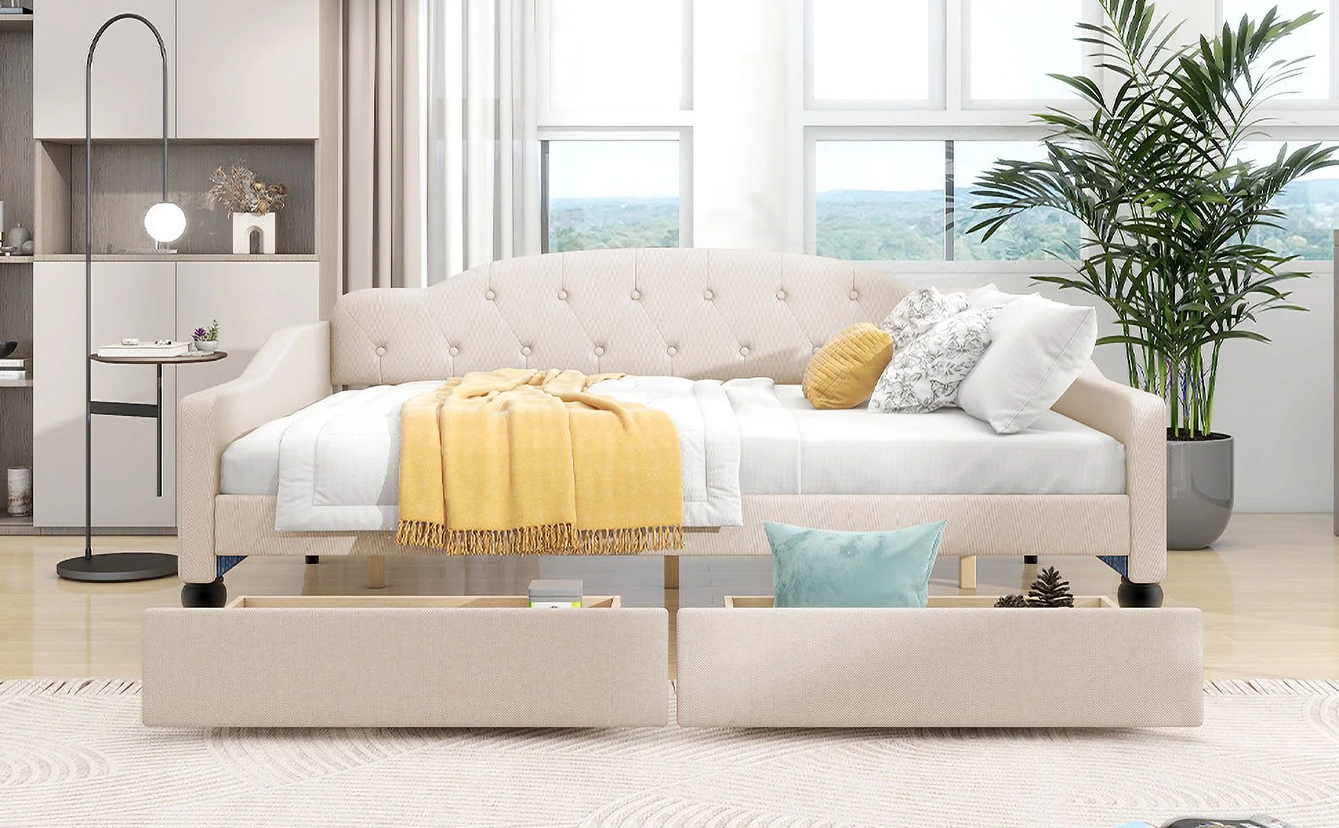 CoSoTower Full Size Upholstered Tufted Daybed with Two Drawers, Beige