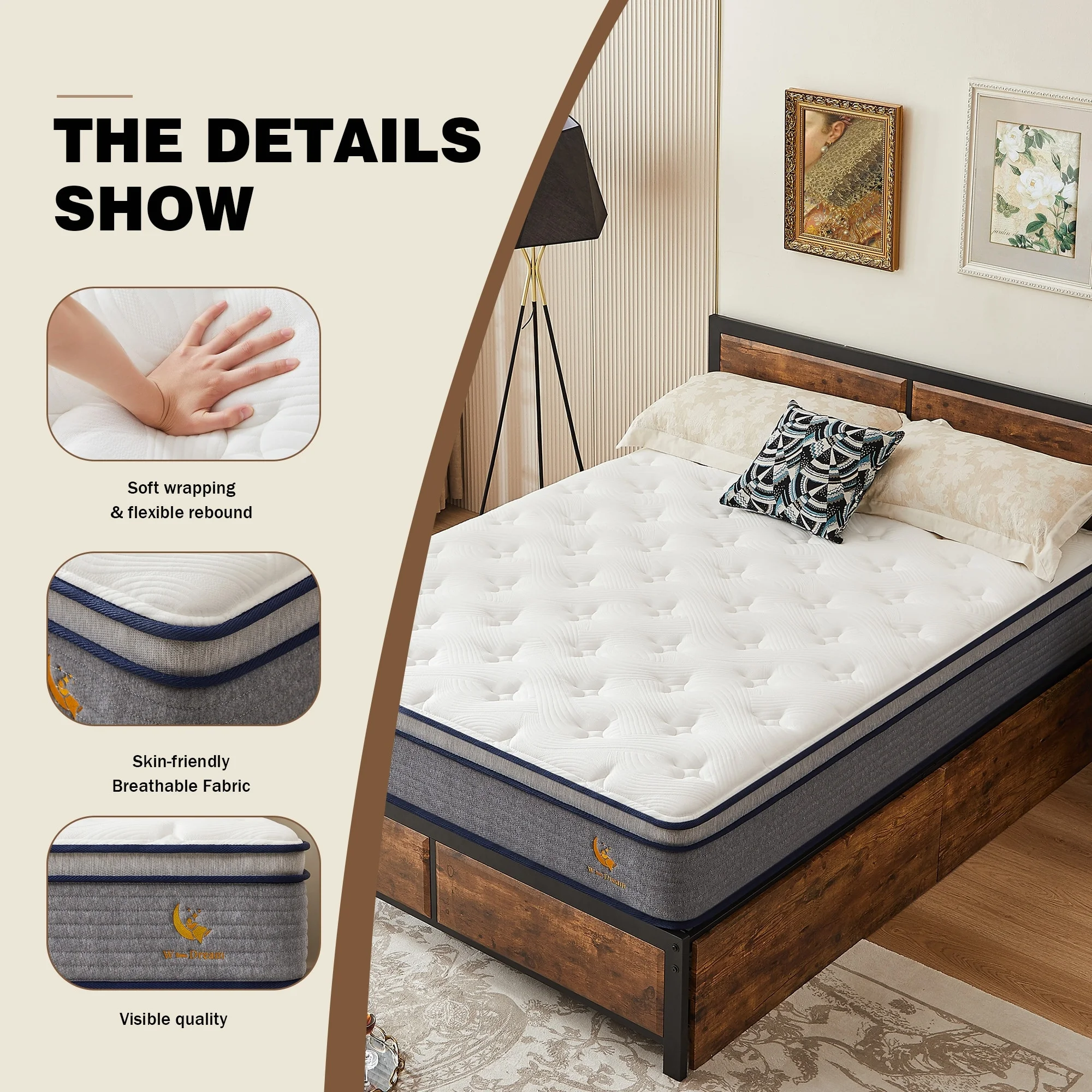 Kodiak Furniture Boho Wood Pop Up Bed in Barbados Brown w/ Linen Stone Mattress