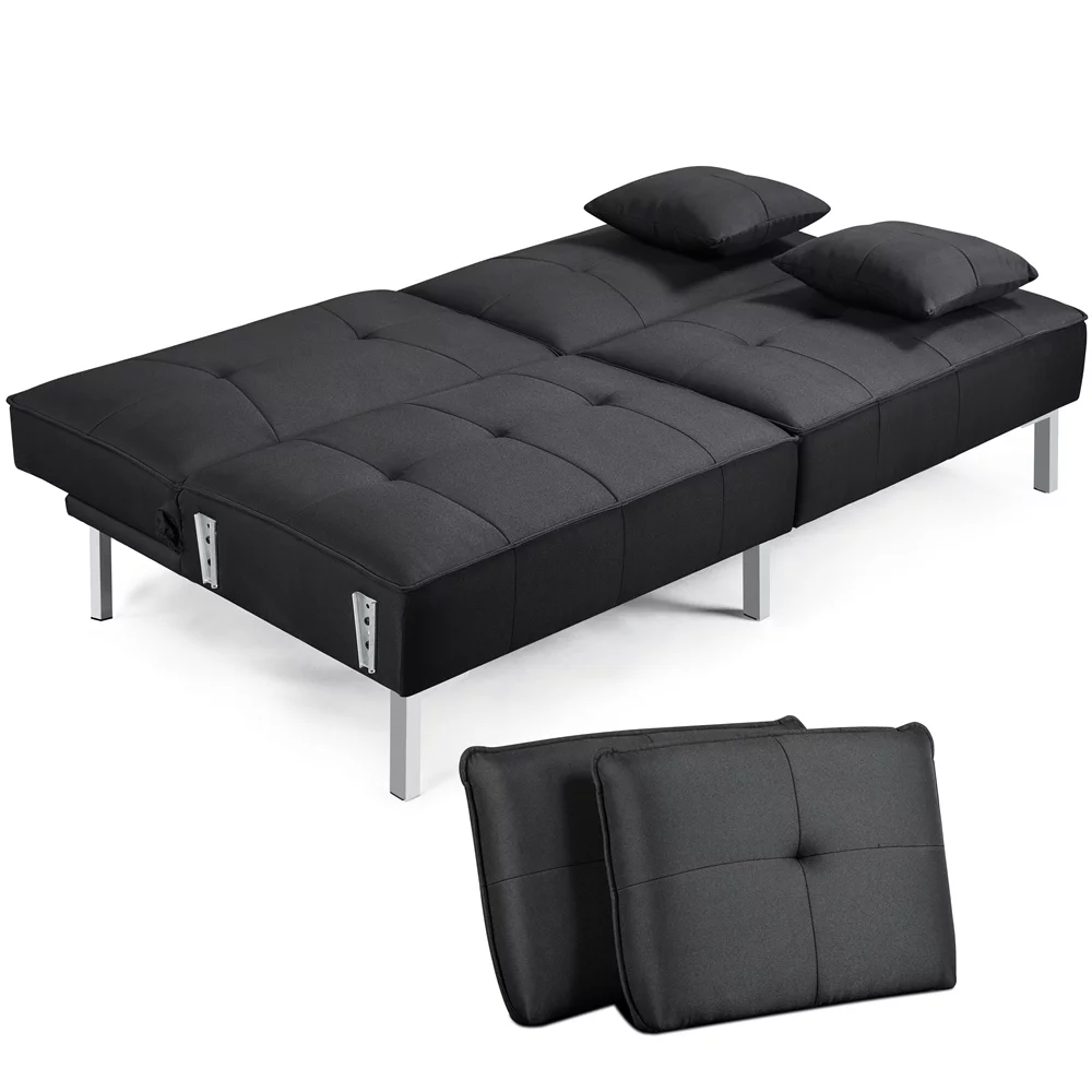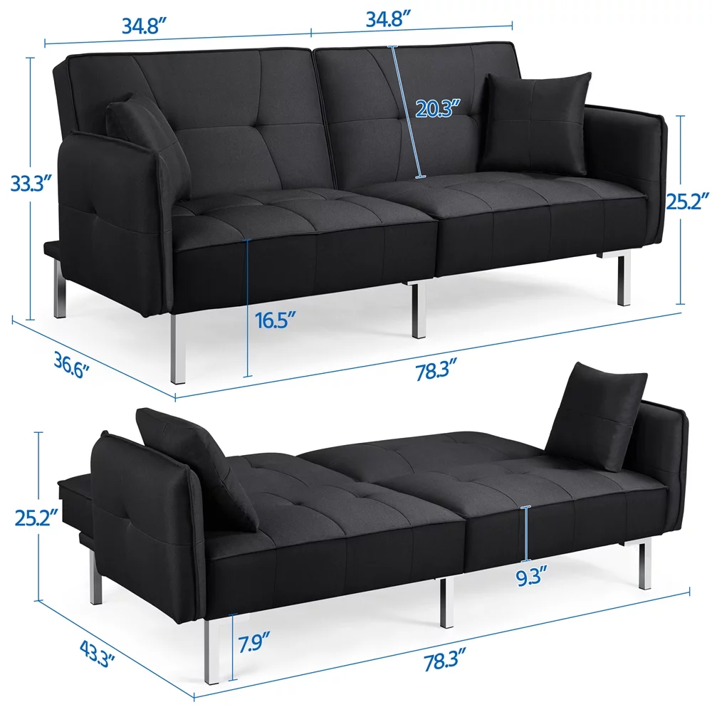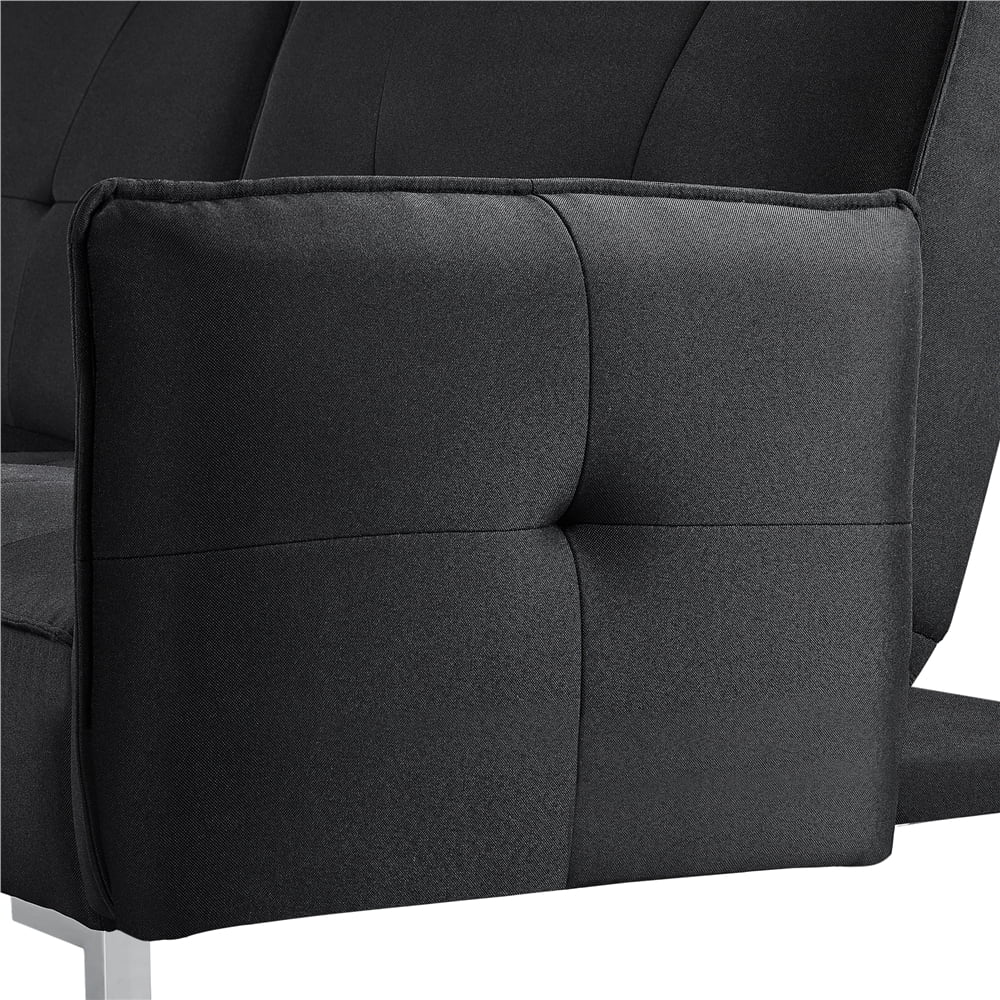 Yaheetech Futon Sofa Bed Adjustable Upholstery Versatile Convertible Sofa with Fabric Cover for Living Room, Black