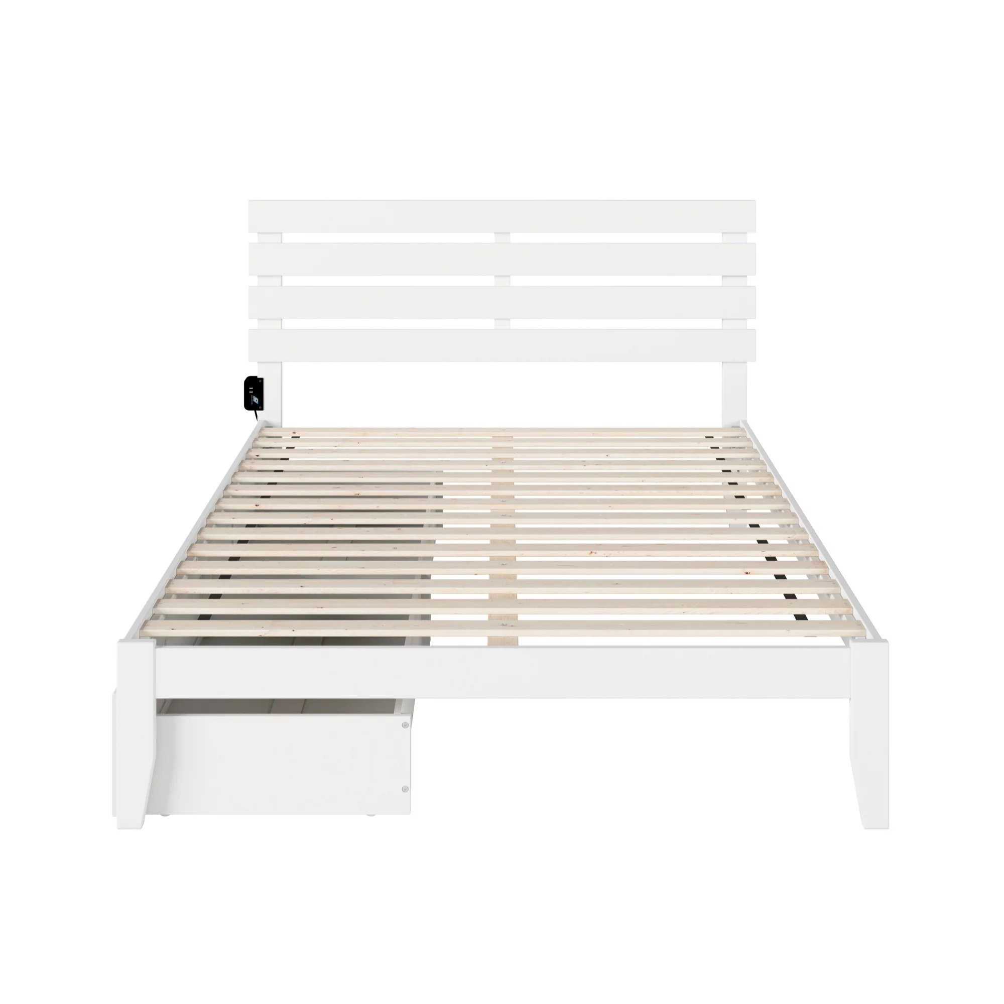 Oxford Queen Bed with USB Turbo Charger and 2 Extra Long Drawers in White