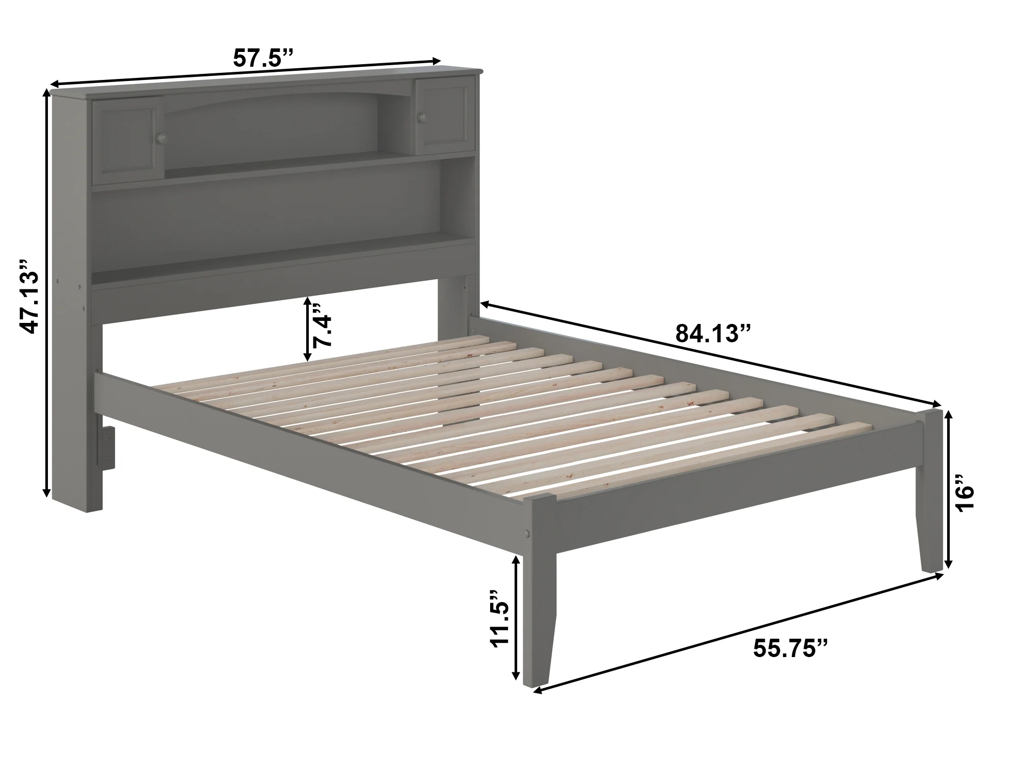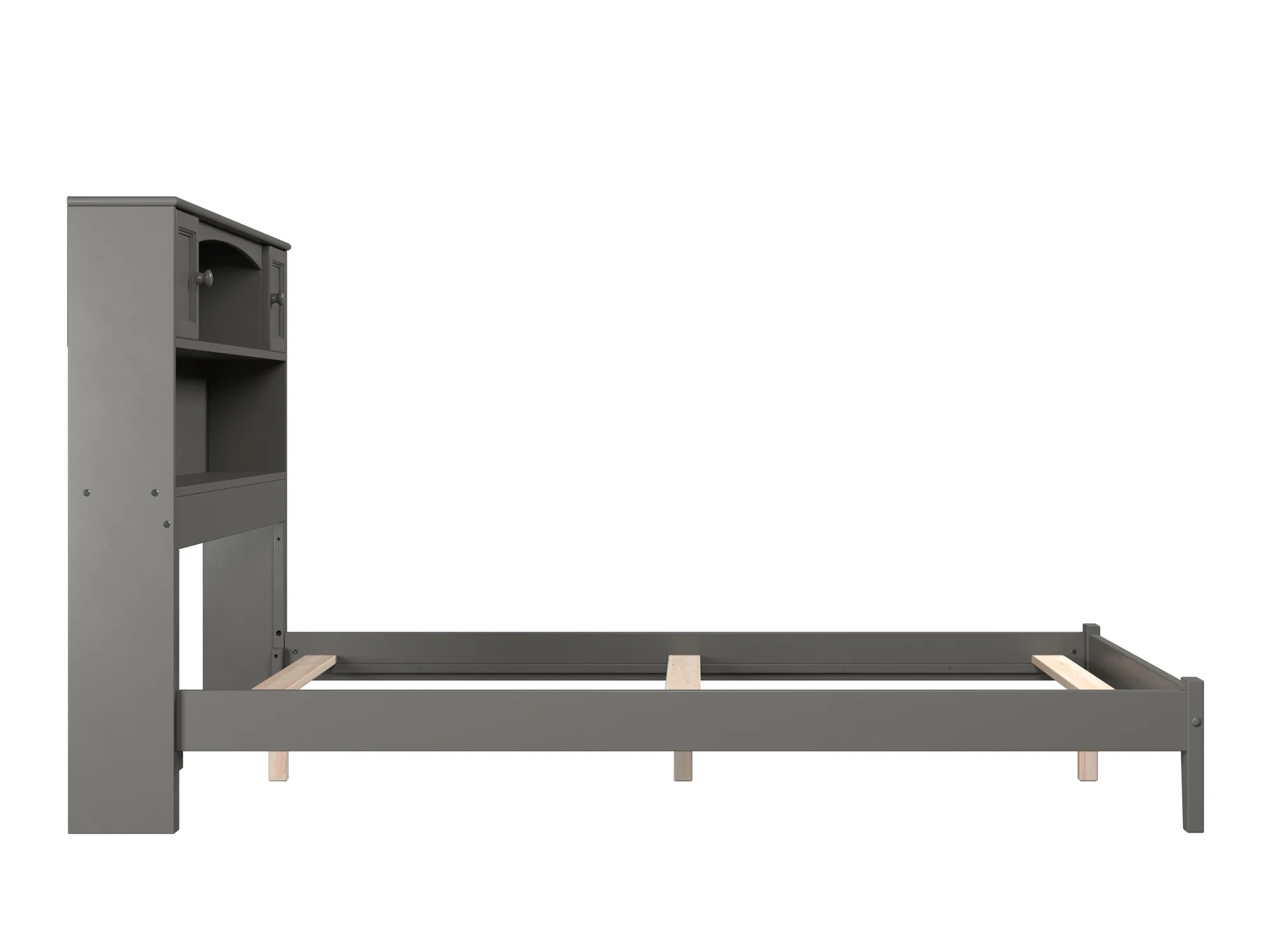 AFI Newport Full Solid Wood Platform Bed with Storage Headboard in Grey