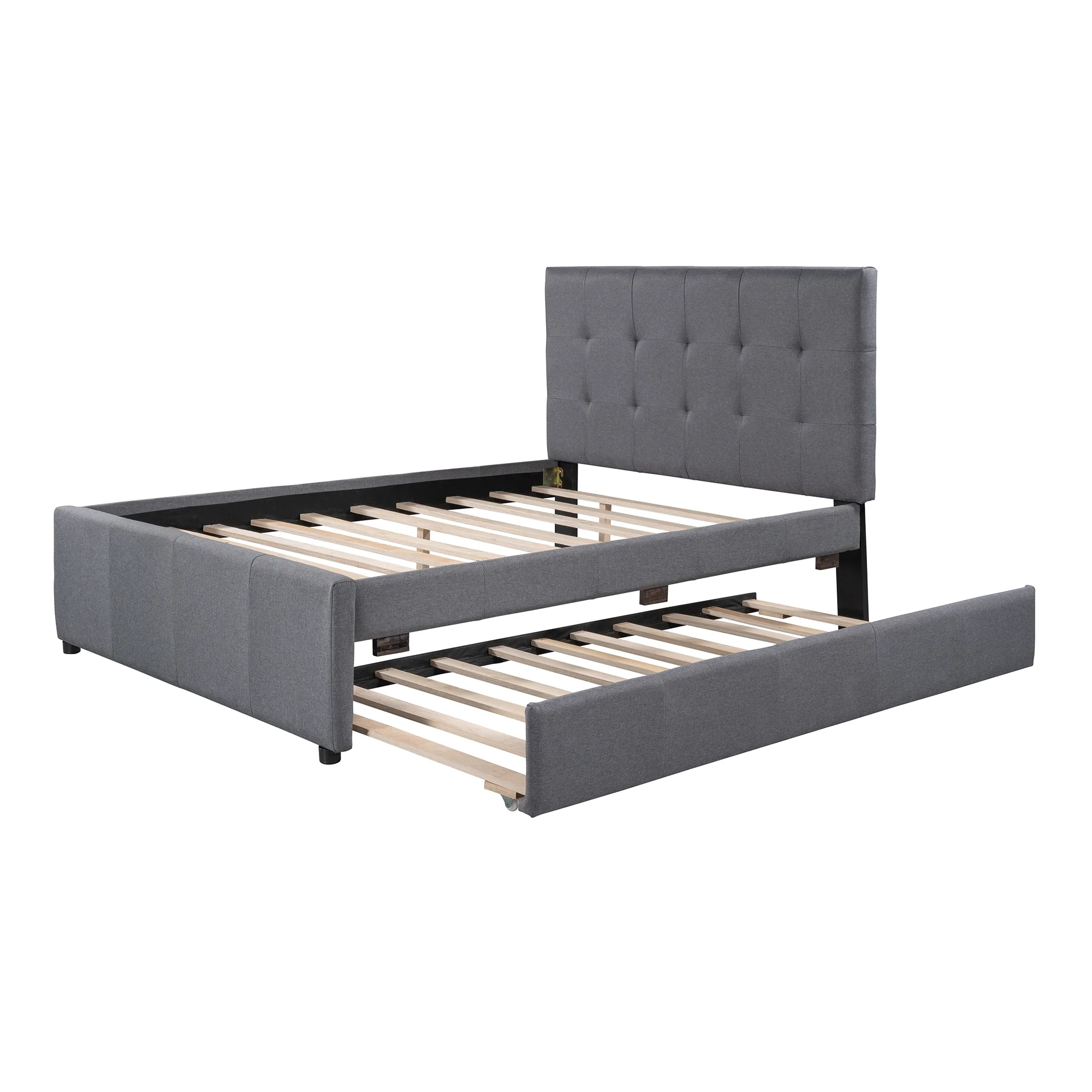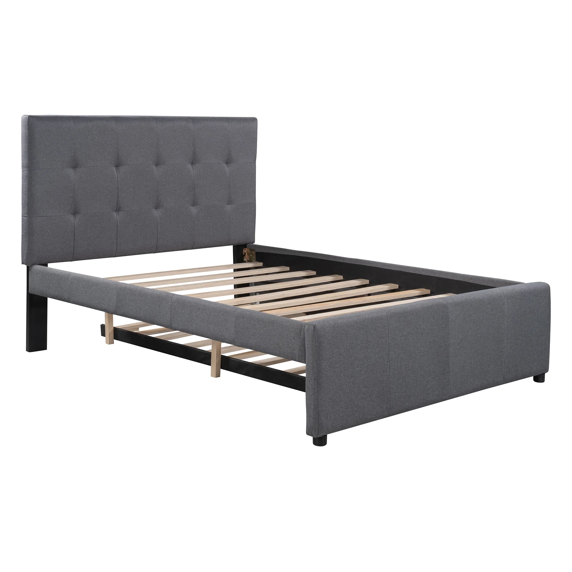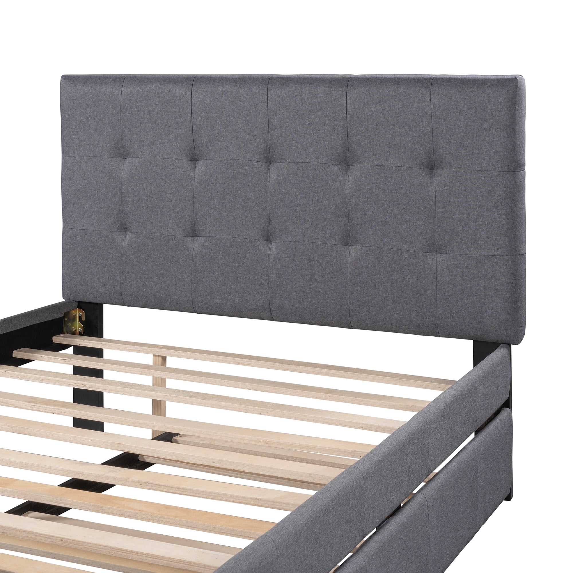 Dawn Whisper Linen Upholstered Platform Bed Full Size With Headboard and Trundle, Gray