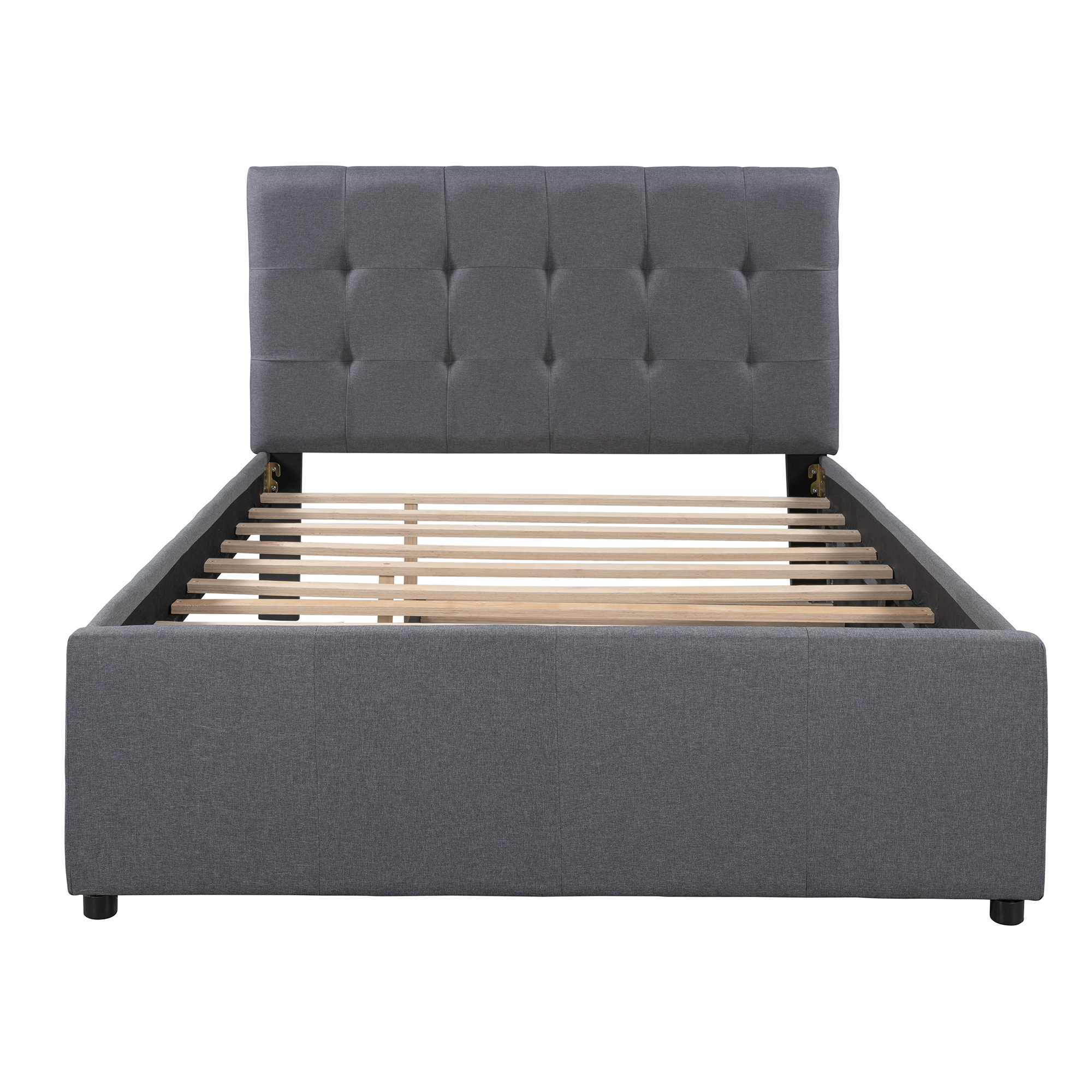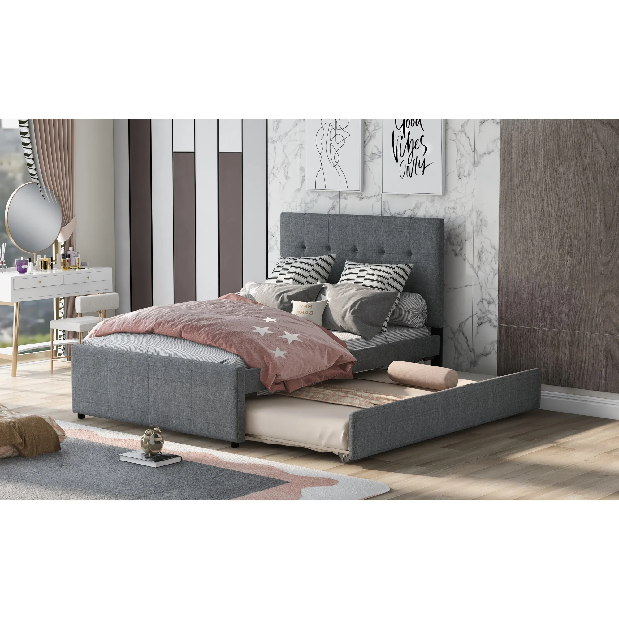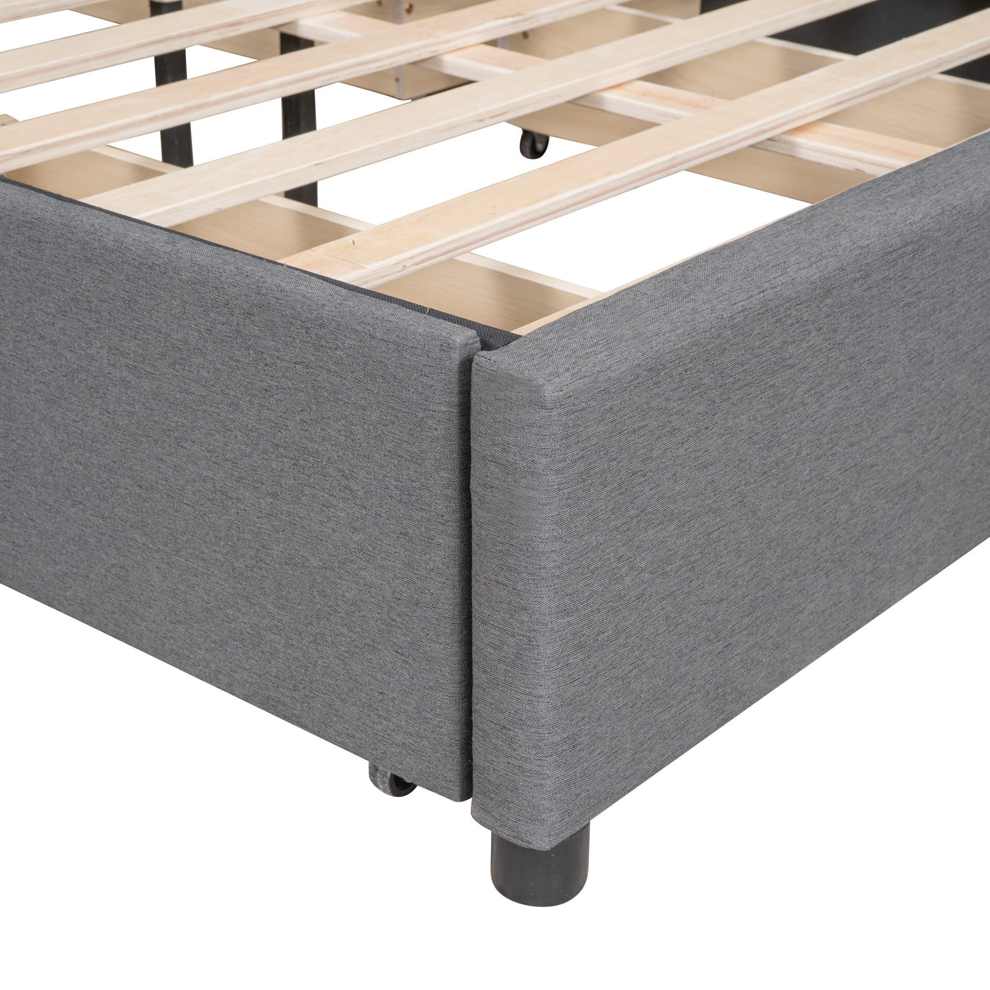 Dawn Whisper Linen Upholstered Platform Bed Full Size With Headboard and Trundle, Gray