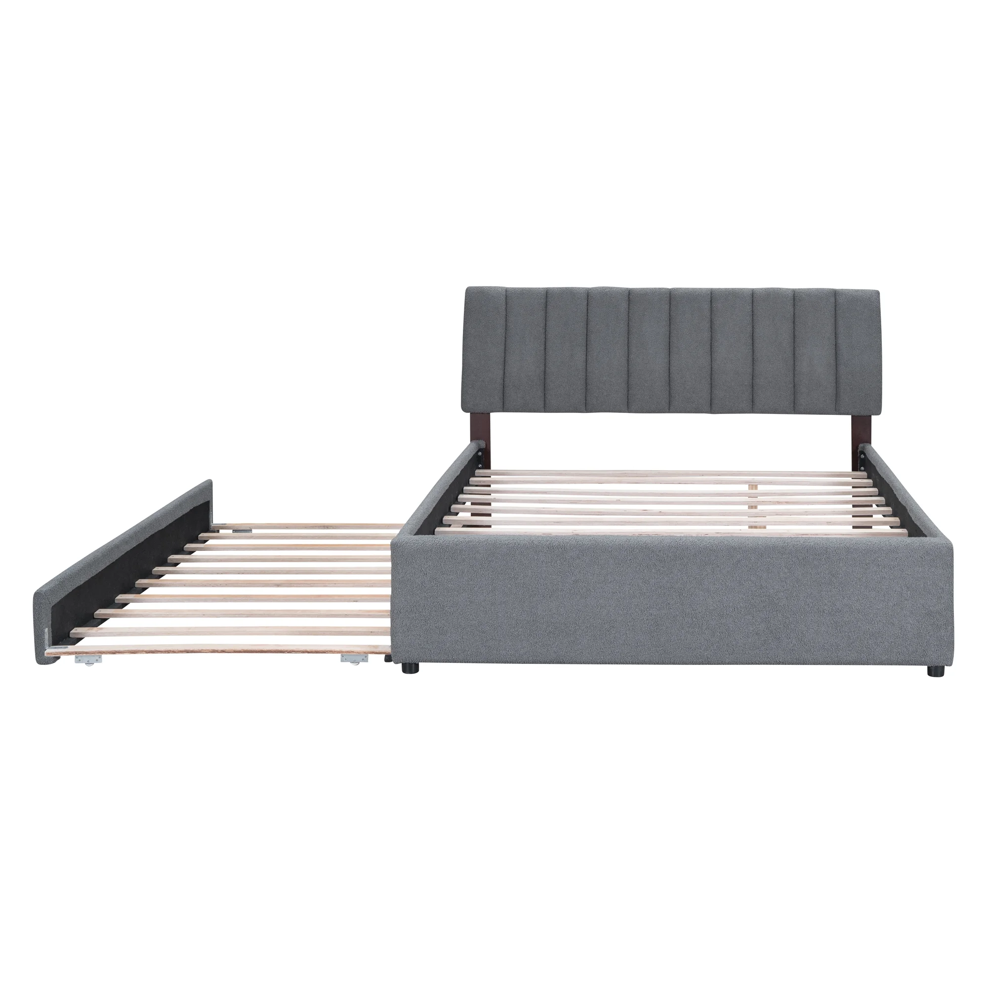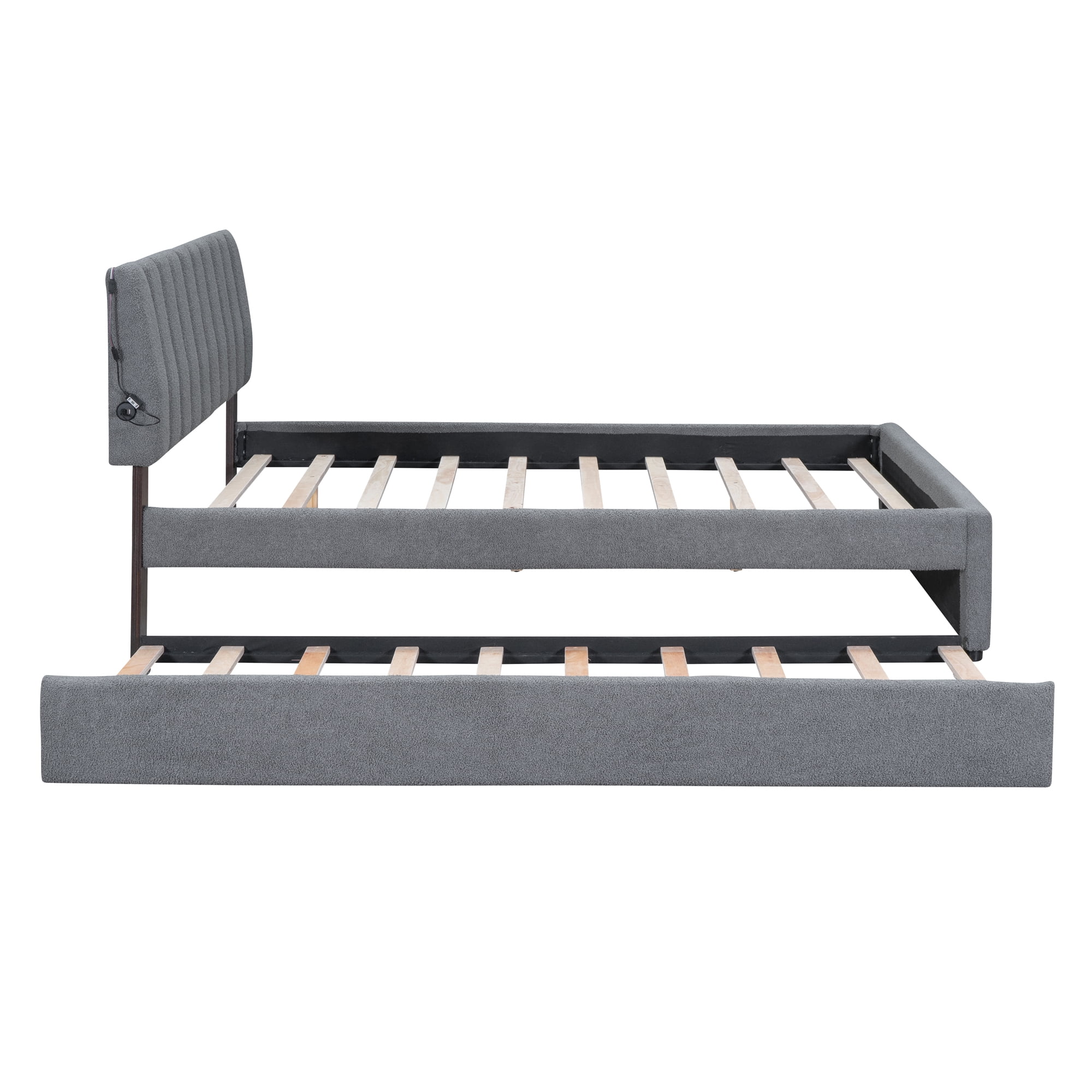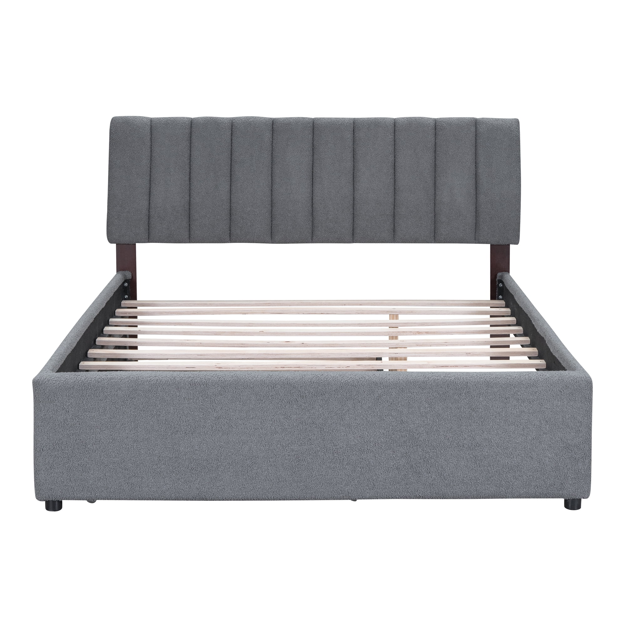 CoSoTower Teddy Fleece Queen Size Upholstered Platform Bed with Trundle, Gray