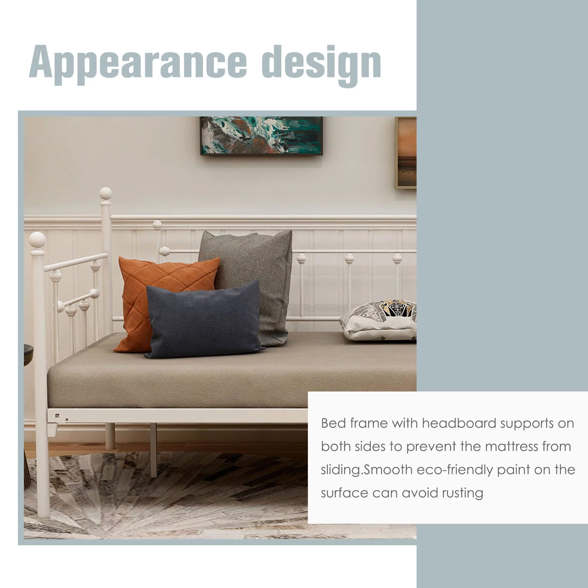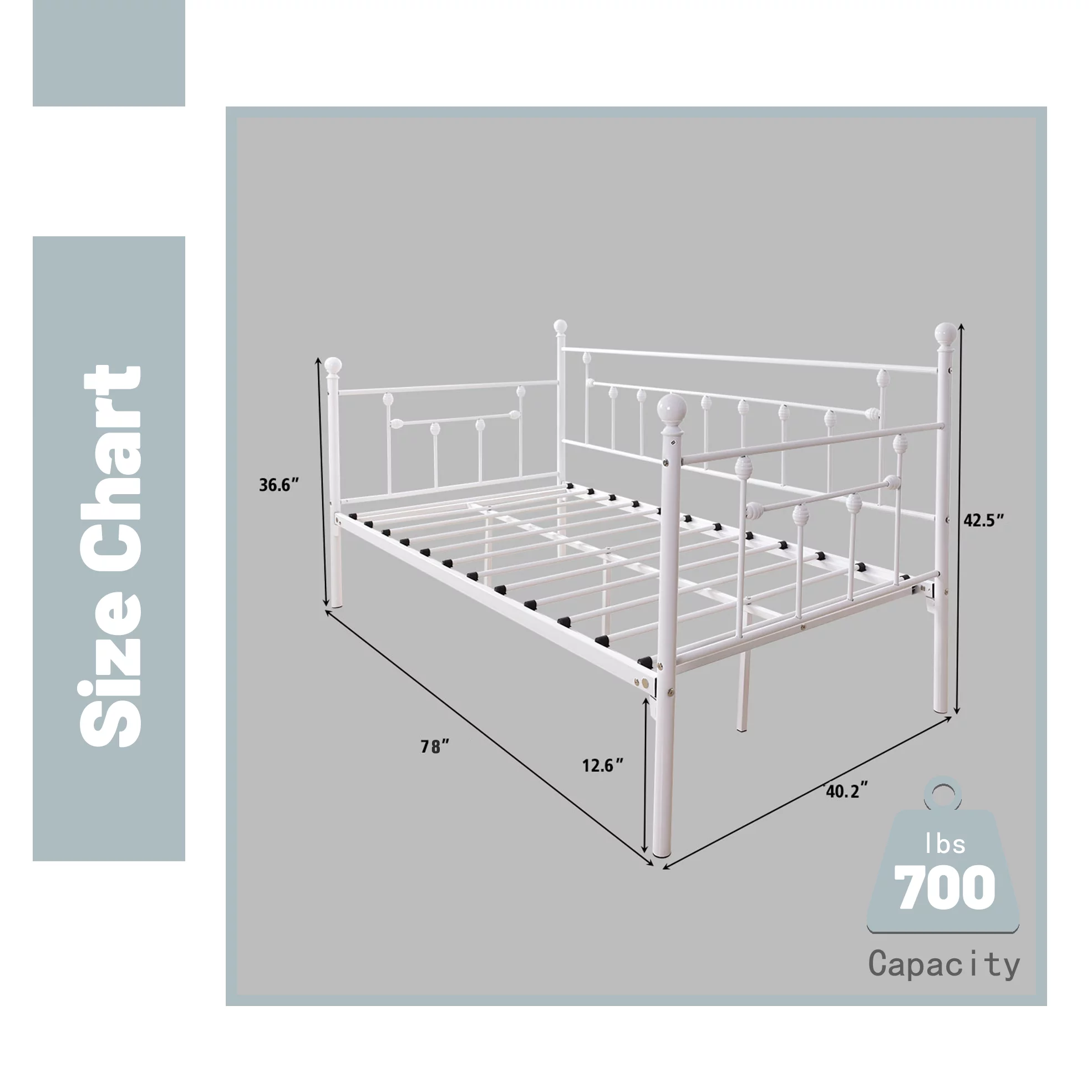 AUFANK Twin Daybed Frame Platform Metal Bed Frame Premium Steel Slat Support White
