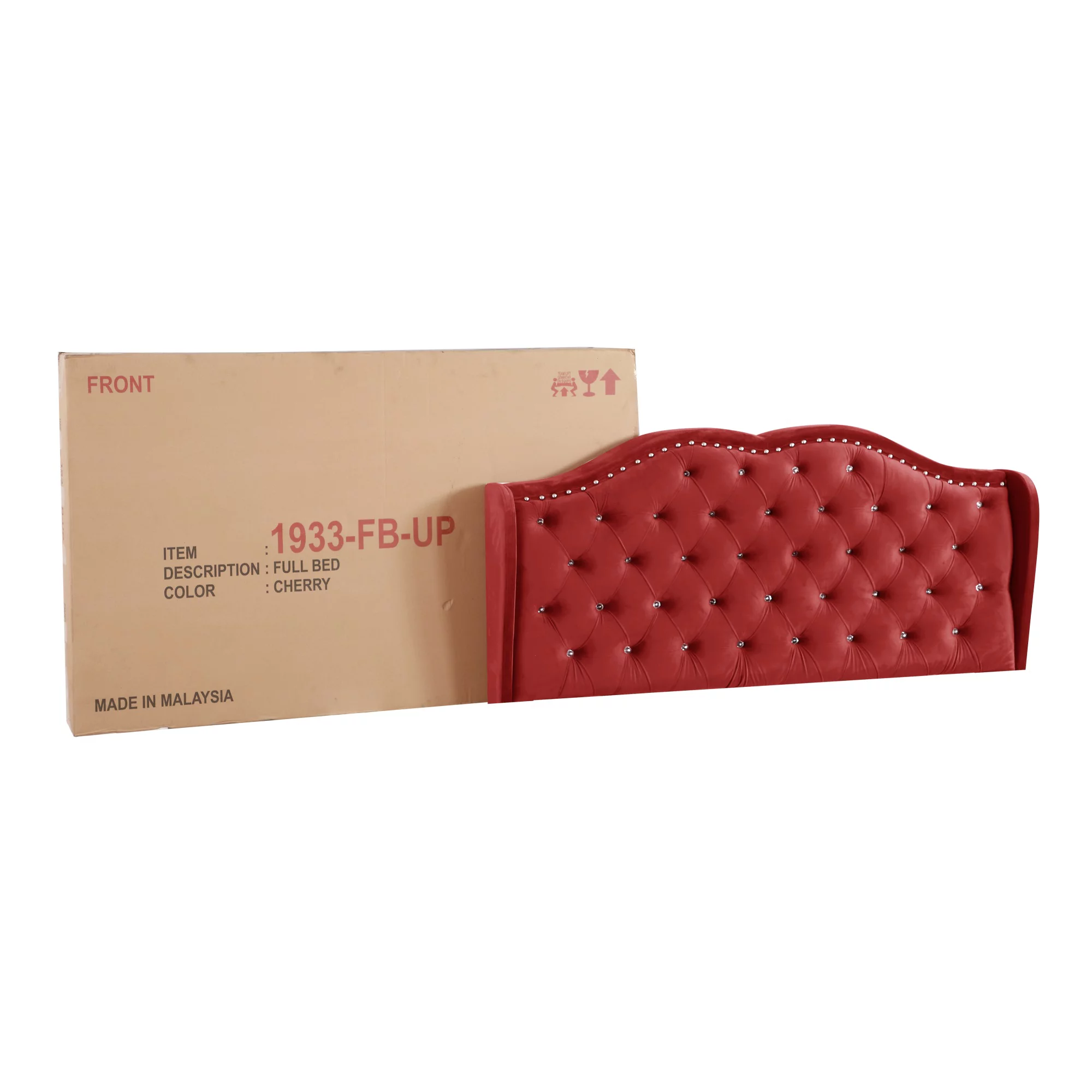 Passion Furniture PF-G1933-FB-UP Joy Upholstered Panel Bed, Cherry - Full Size