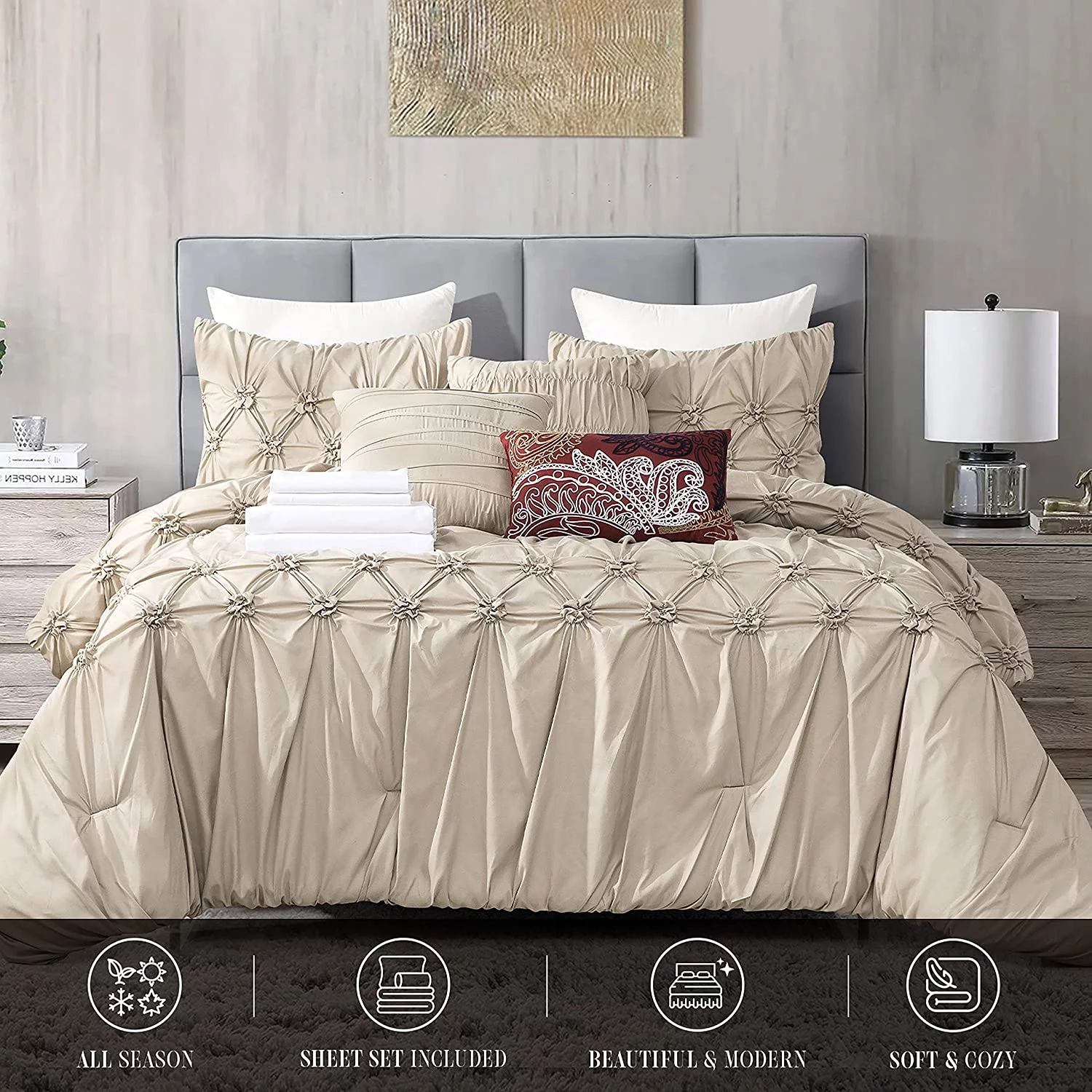 22-inch Super Deep Pocket Bed Sheets Wrinkle Free Cotton 650TC Solid - King - Linen