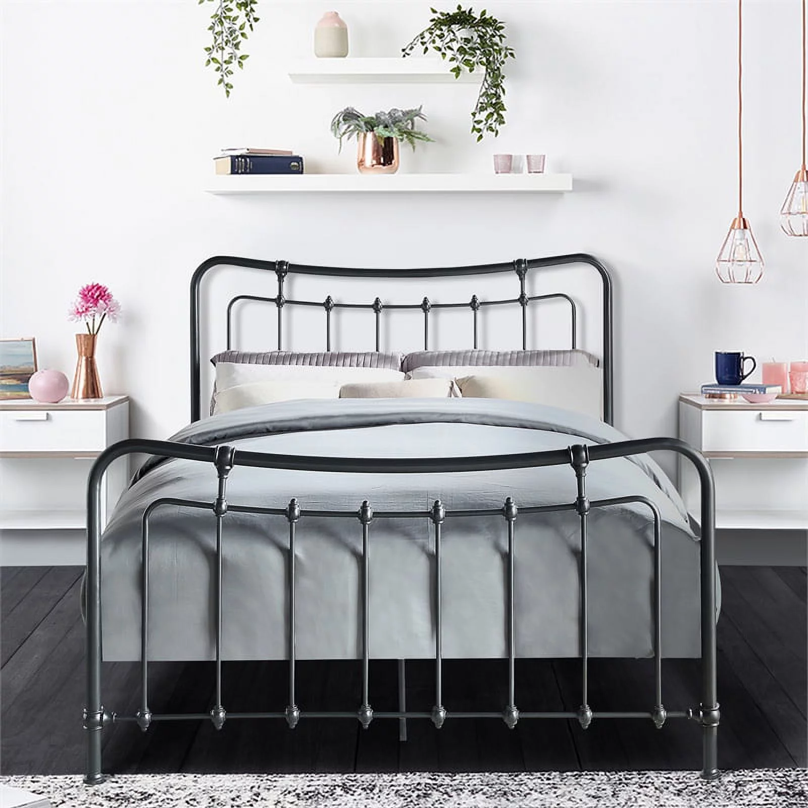 AFI Newport Full Solid Wood Traditional Bed with Storage Headboard in Grey