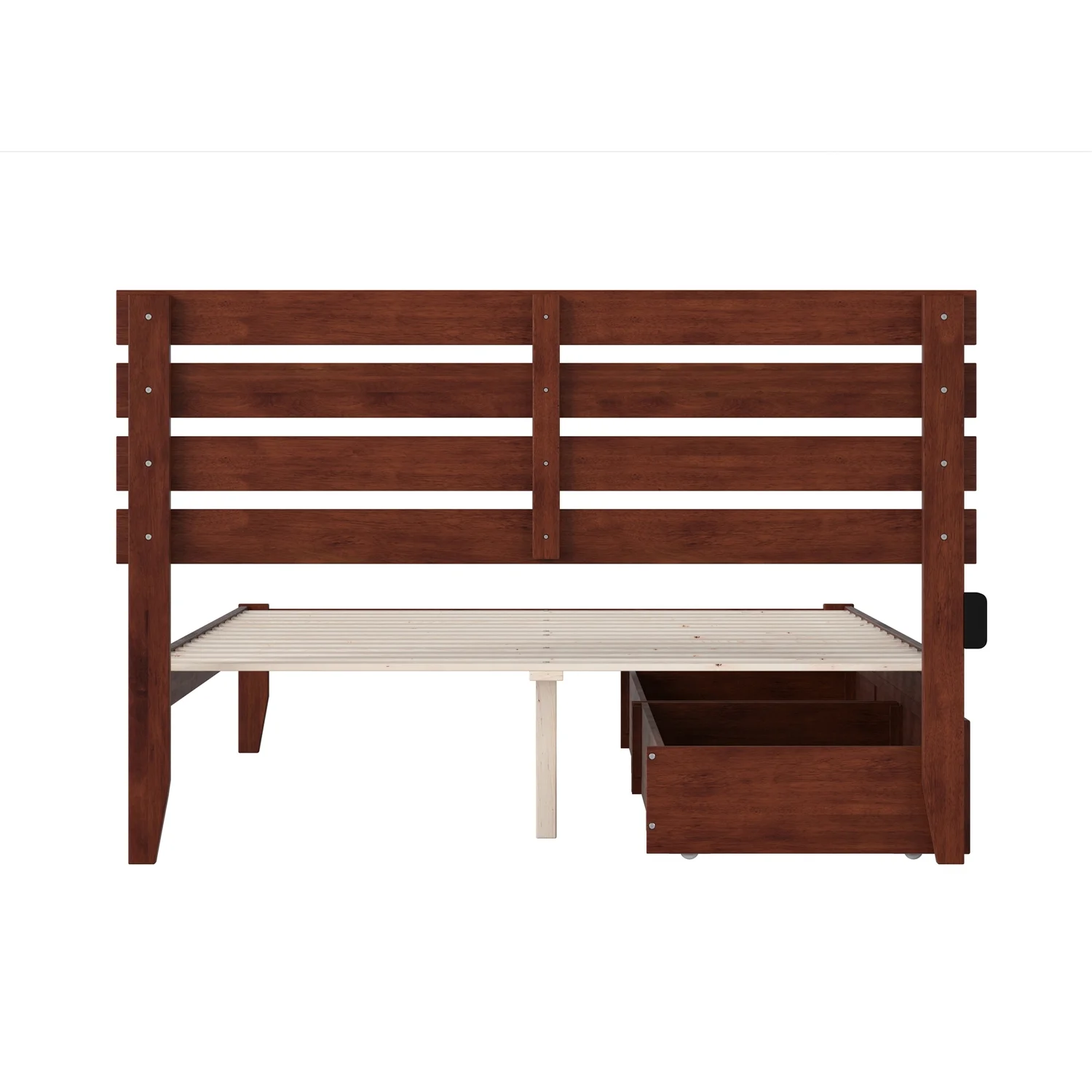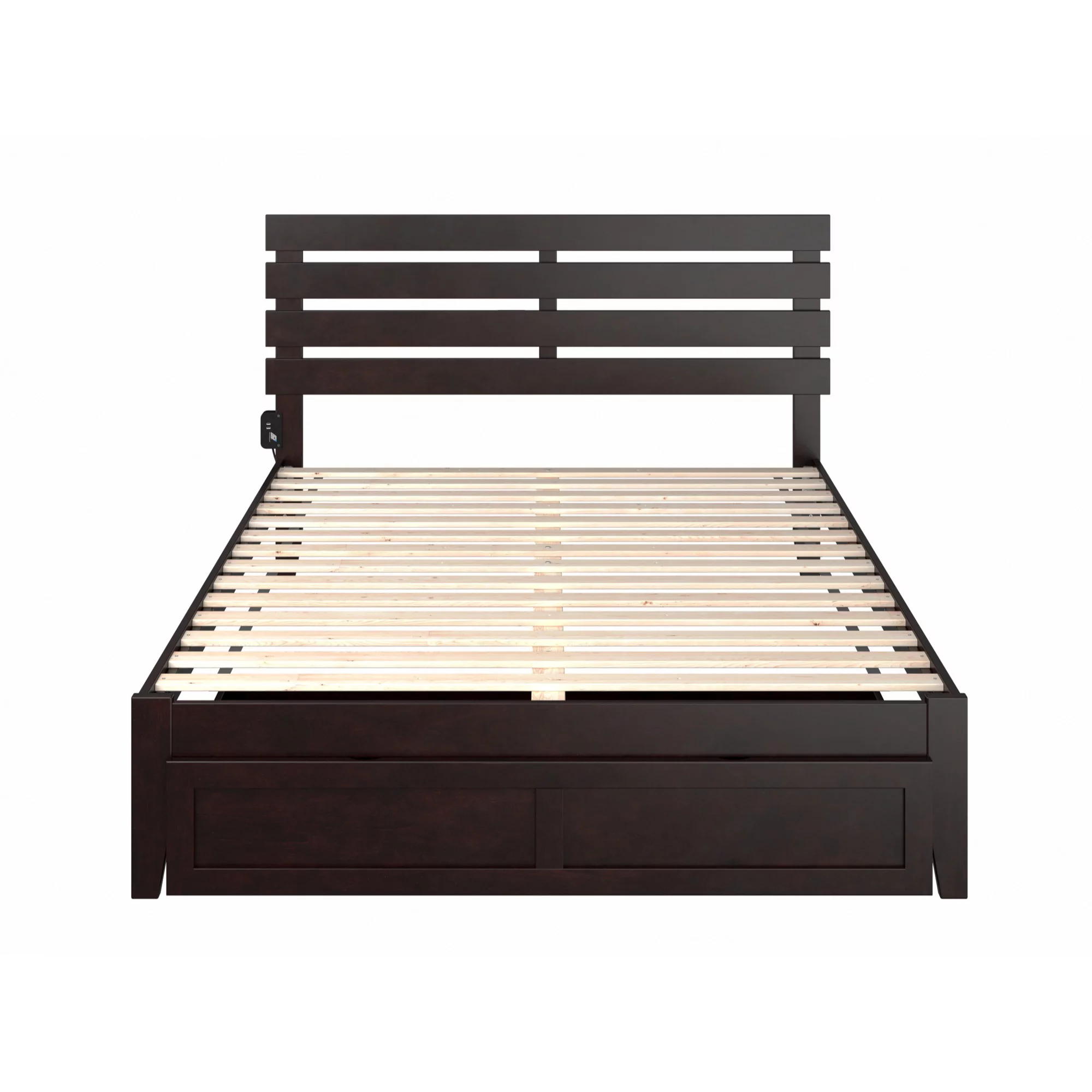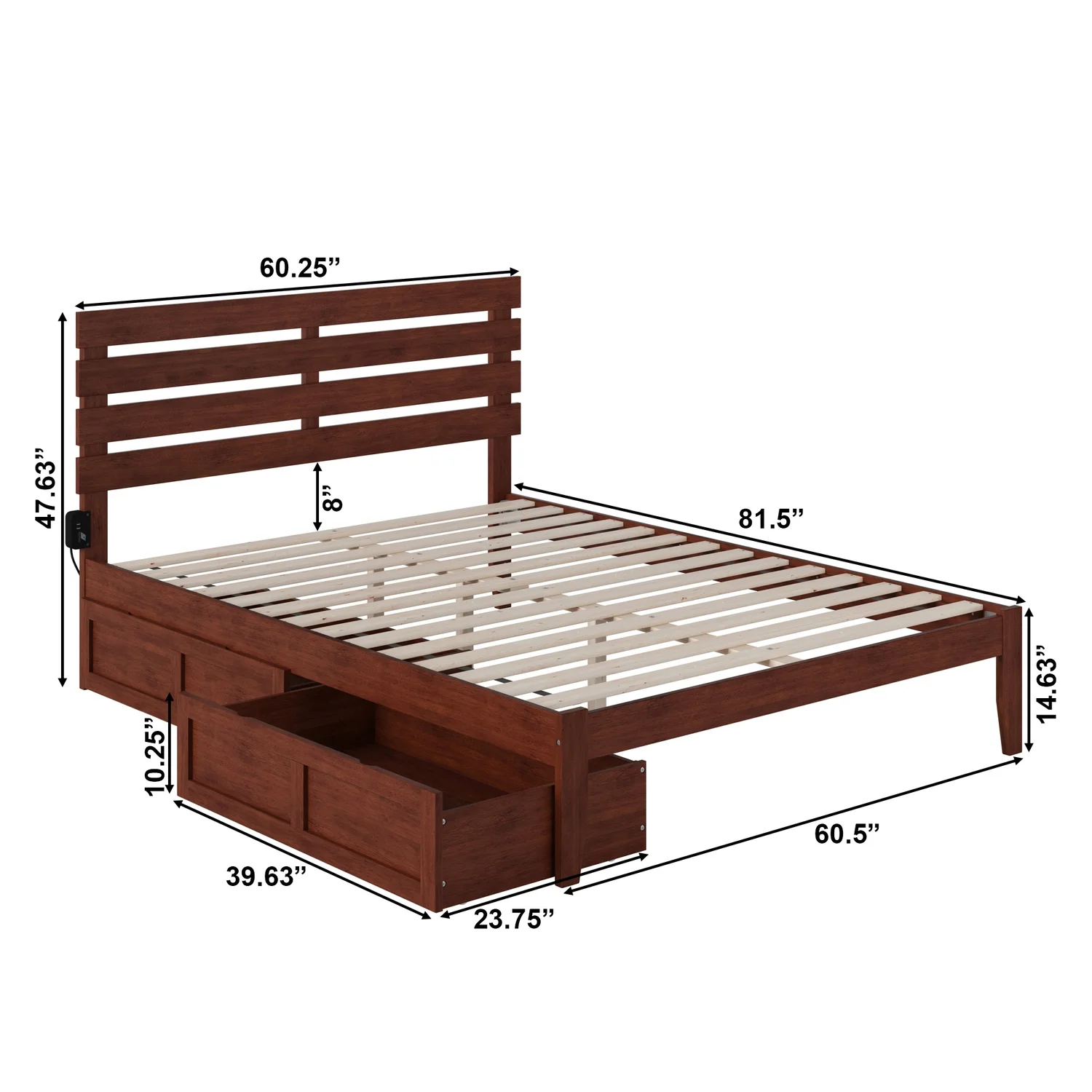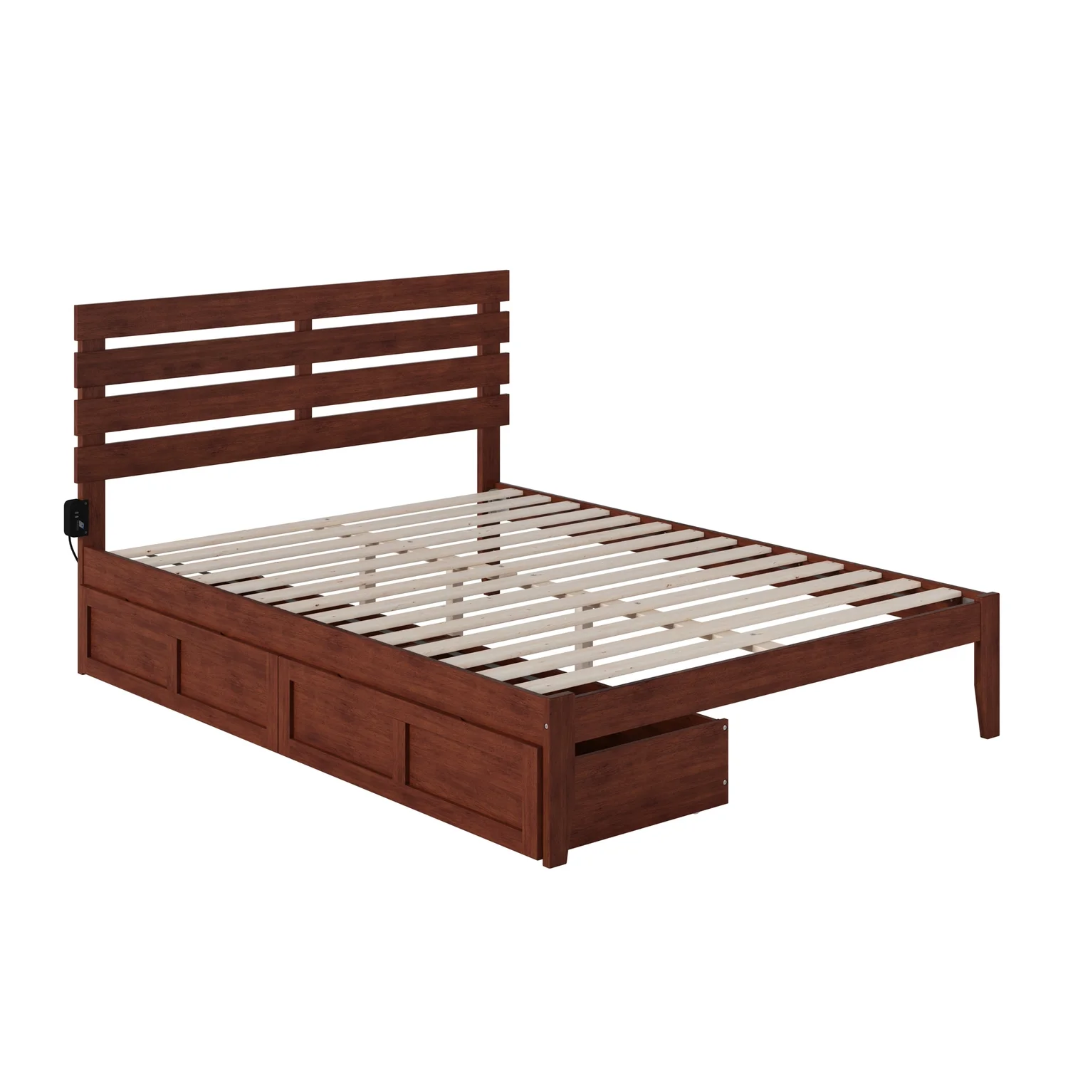 Oxford Queen Bed with USB Turbo Charger and 2 Extra Long Drawers in Walnut