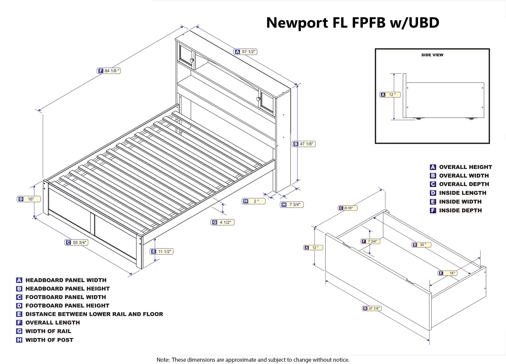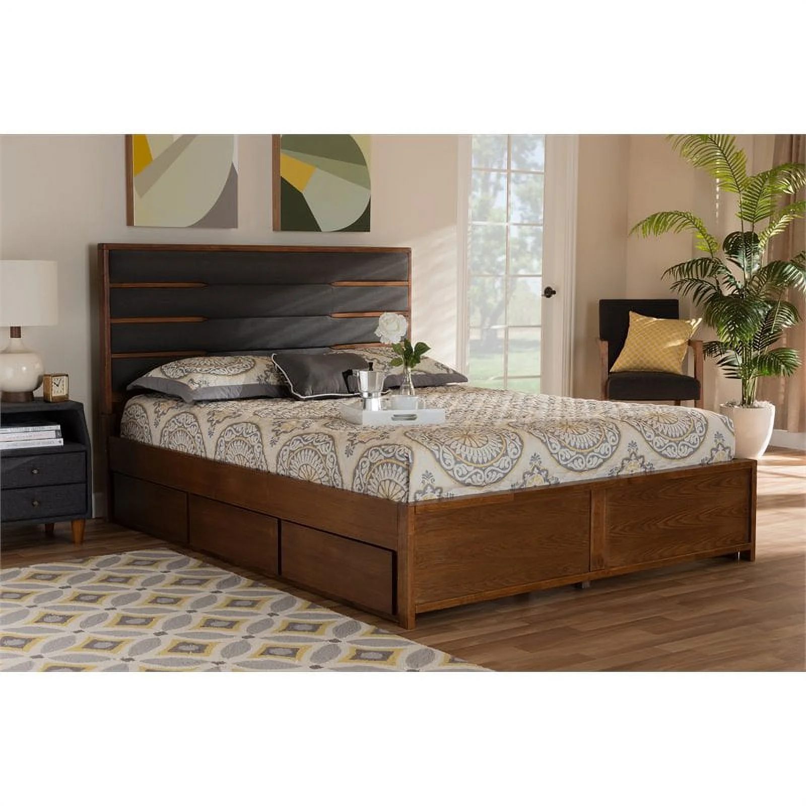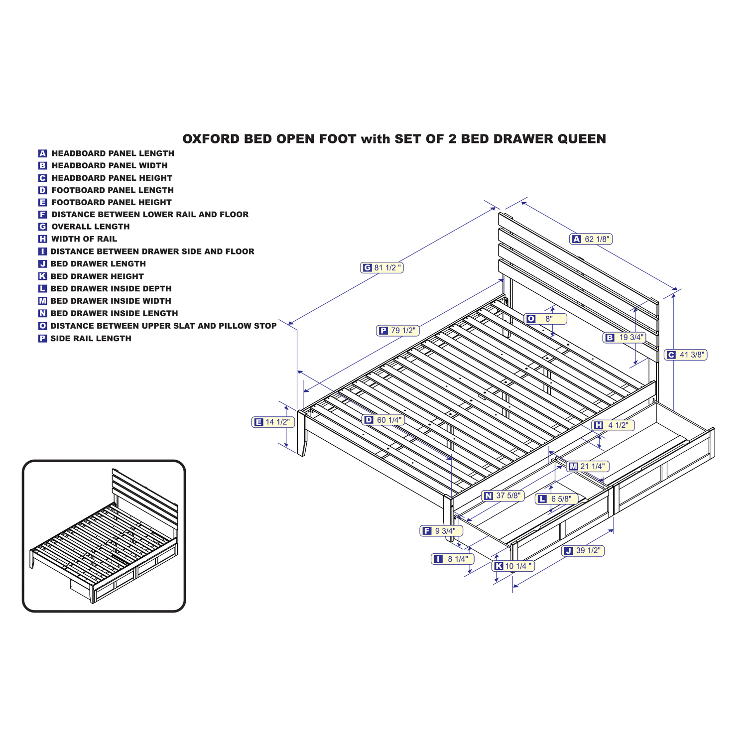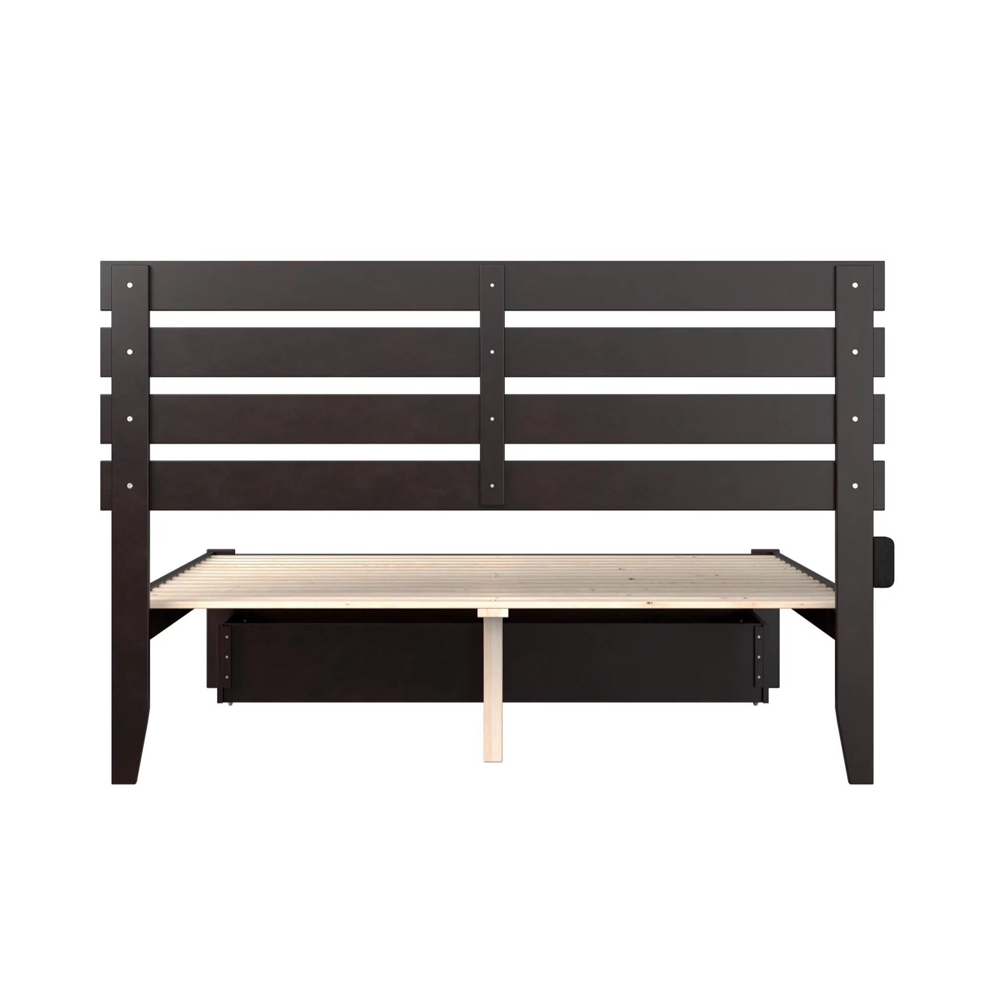 Oxford Queen Bed with USB Turbo Charger and 2 Extra Long Drawers in Walnut