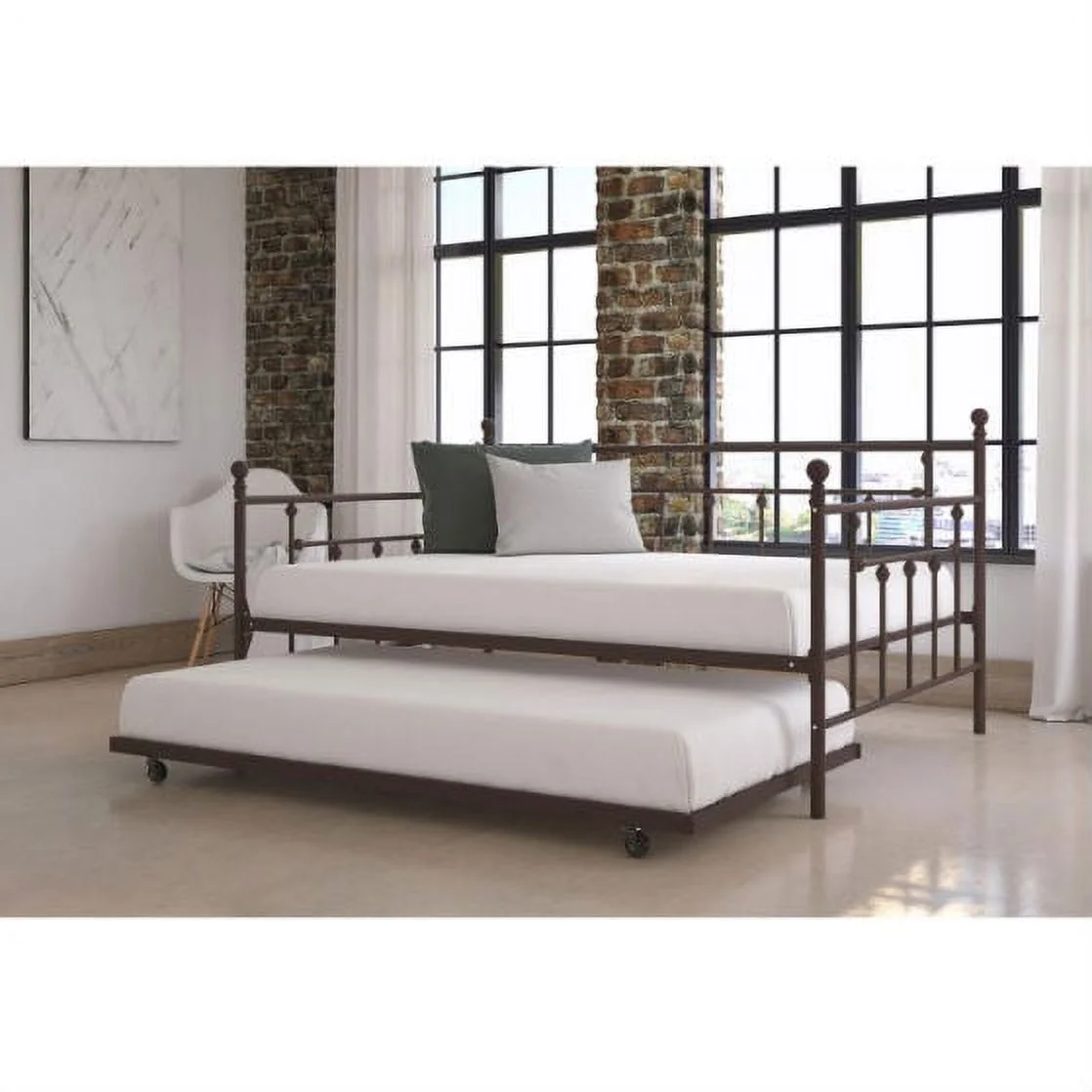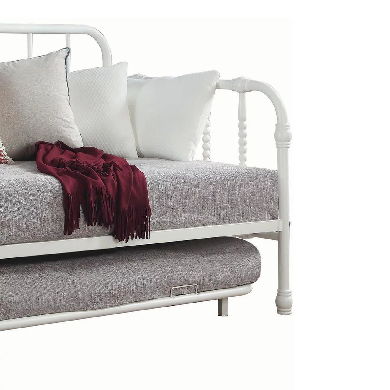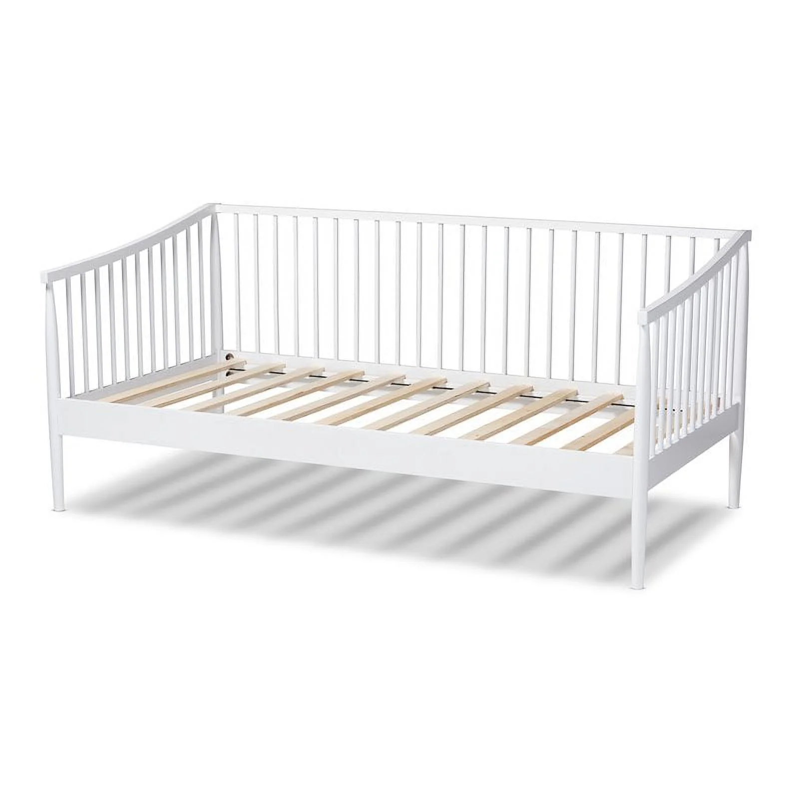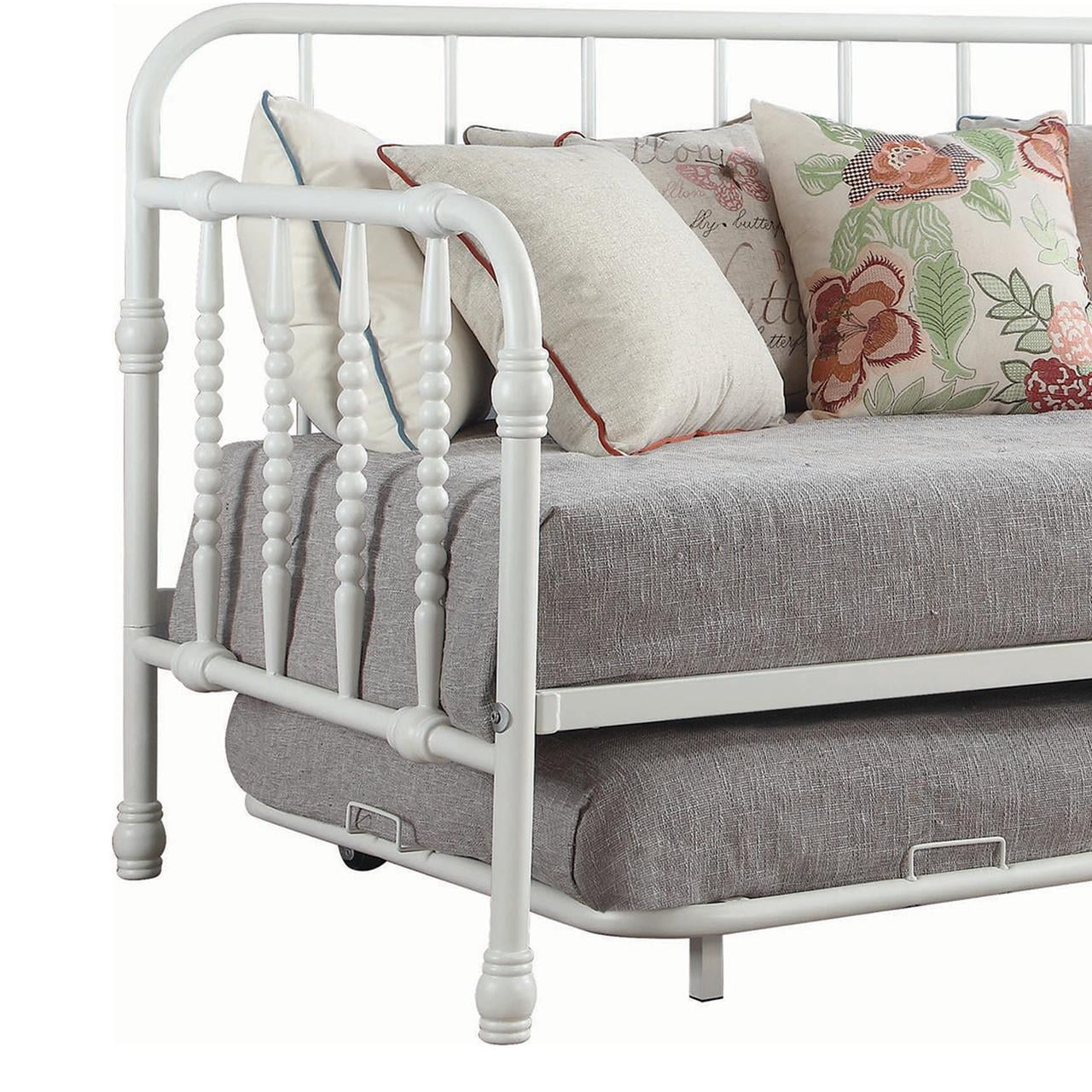 Bowery Hill Twin Wooden Spindle Daybed With Suspension Deck and Trundlein White
