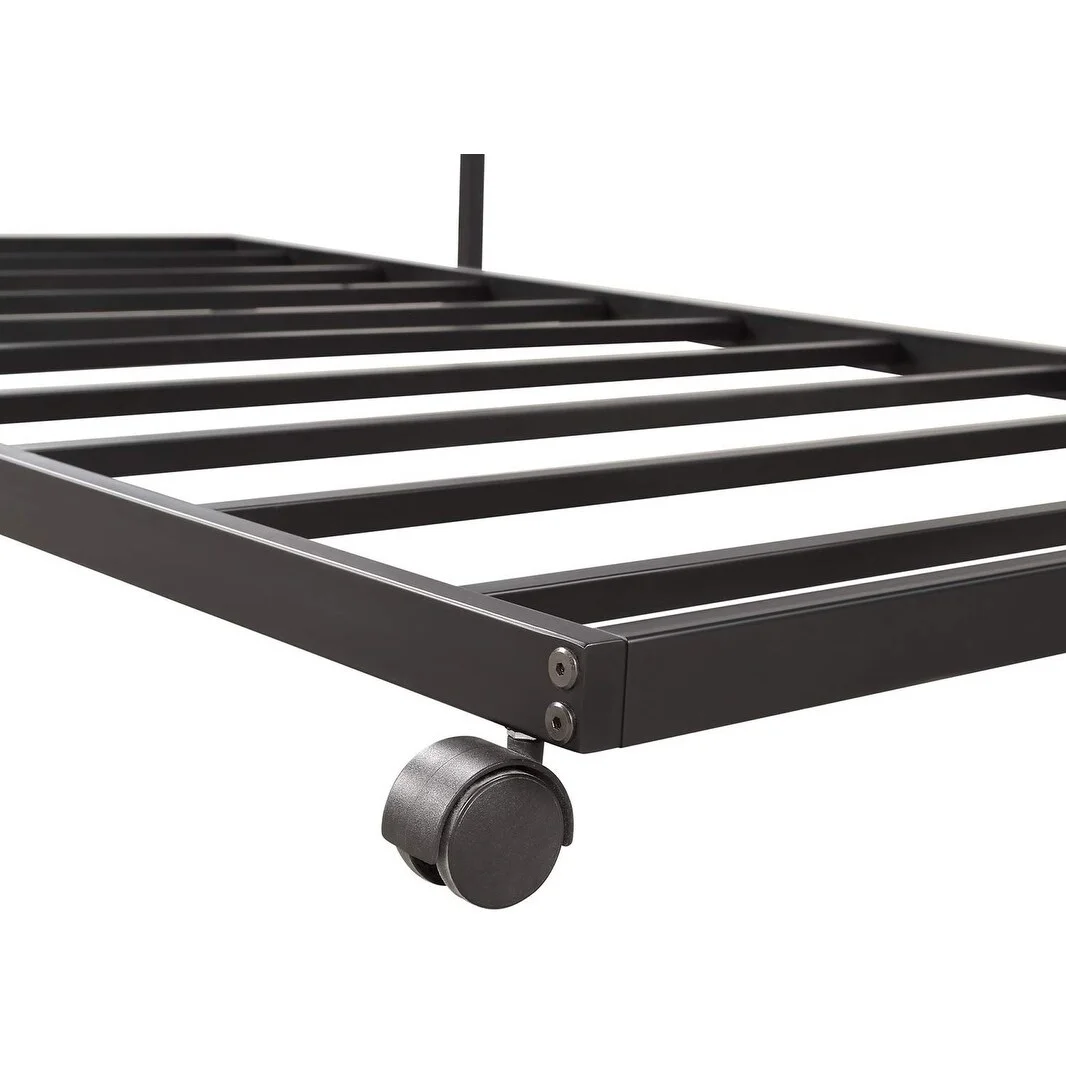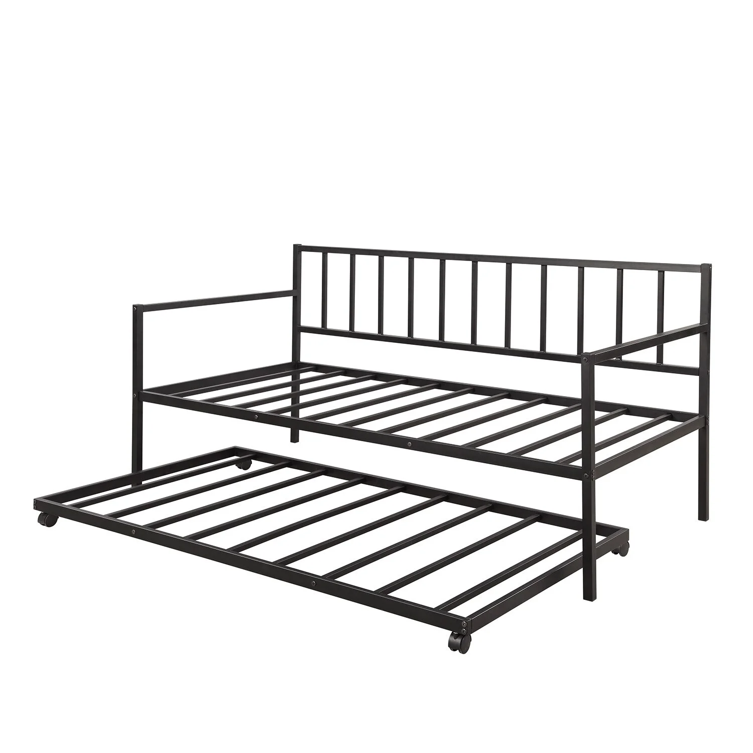 Wooden Twin Size Daybed with Spool Bed Frame and Railing Headboard, Black