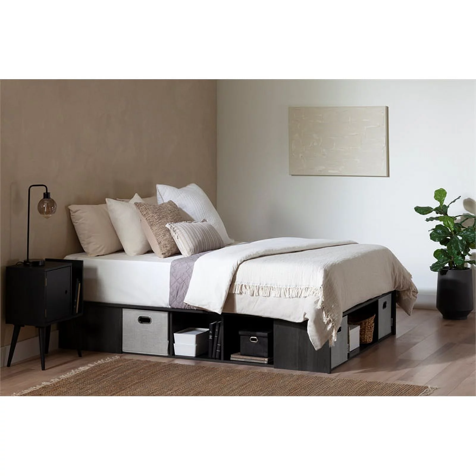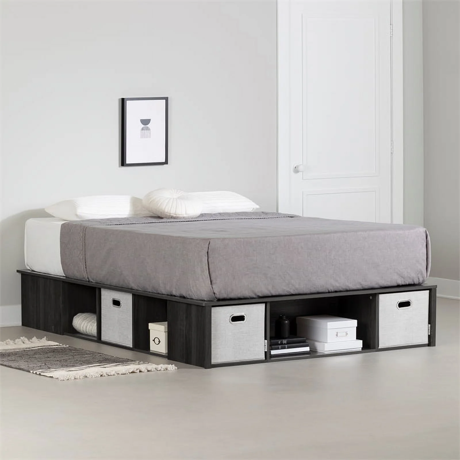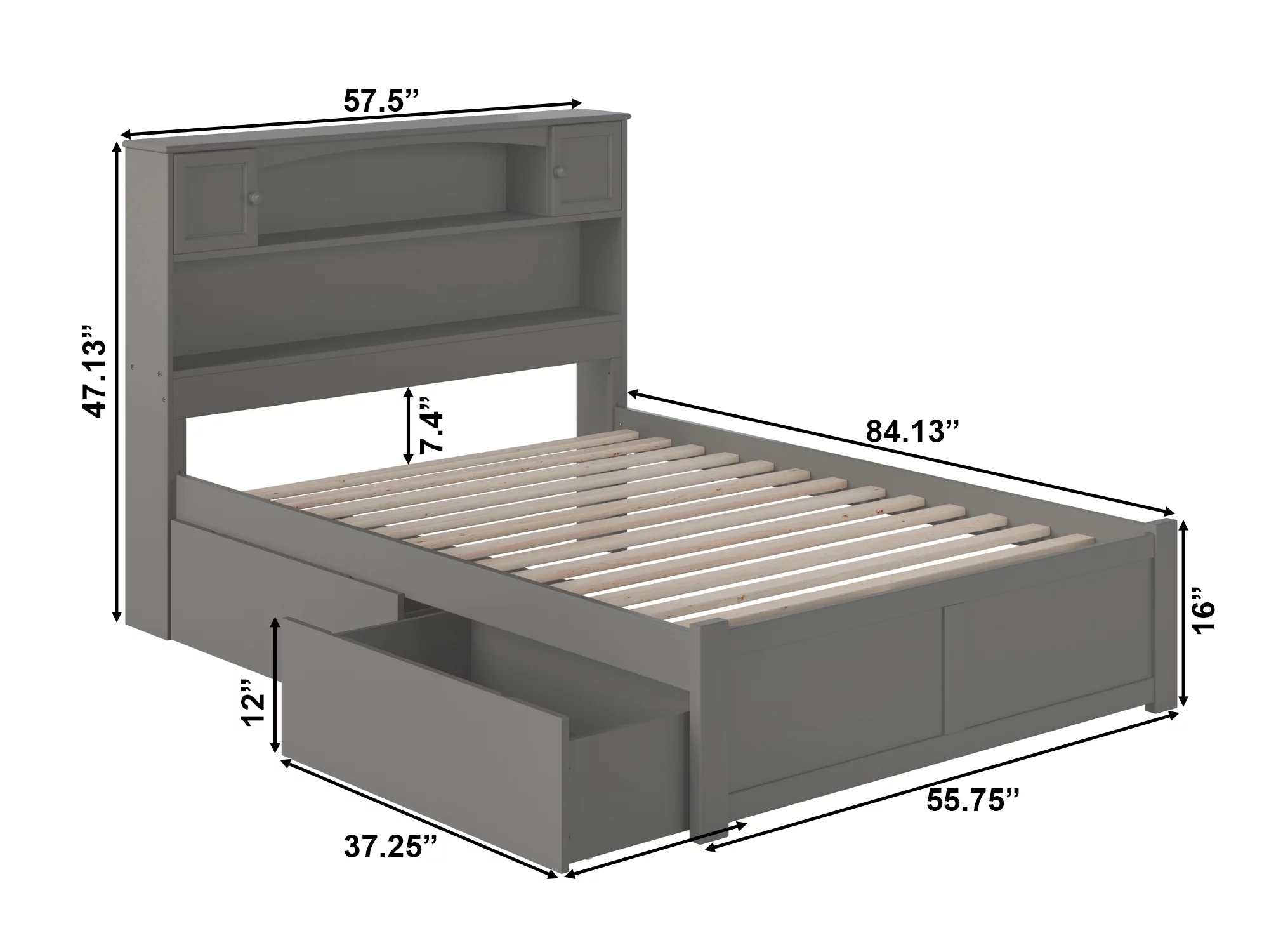 AFI Newport Full Solid Wood Platform Bed with Footboard & 2 Storage Drawers in Grey