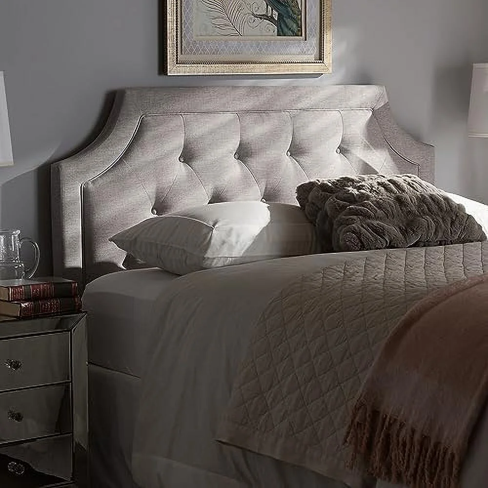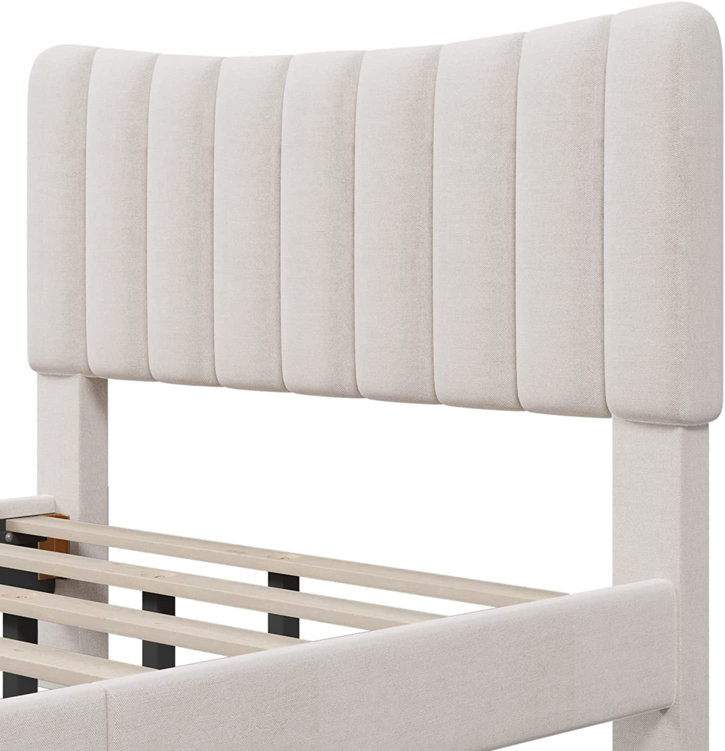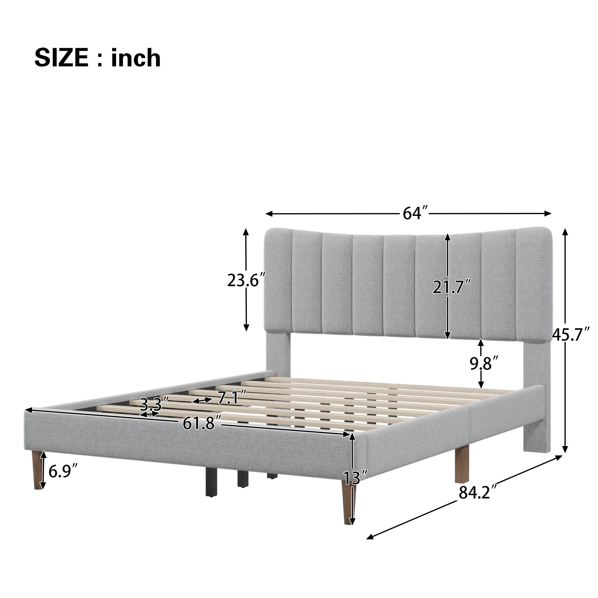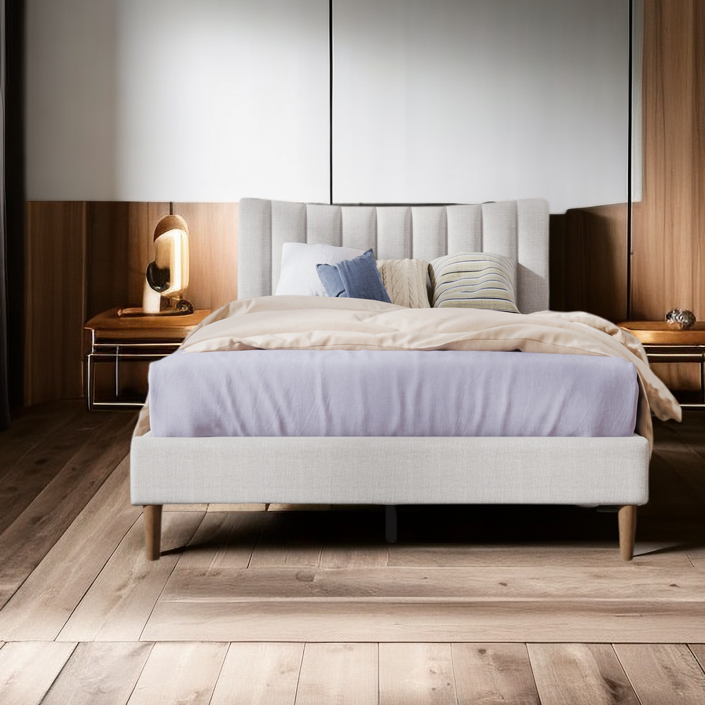 Linen Upholstered Platform Bed with Vertical Channel Tufted Headboard