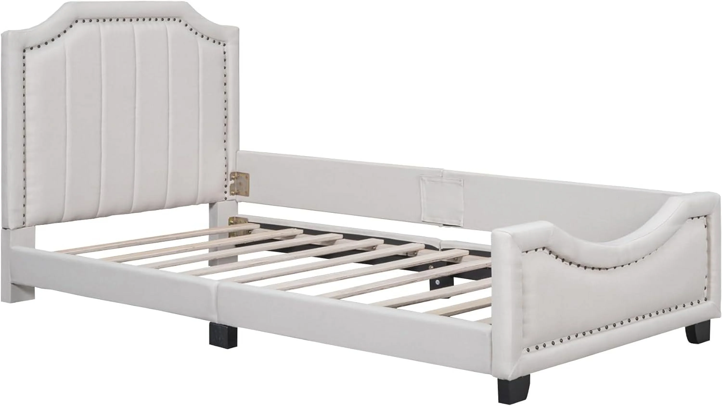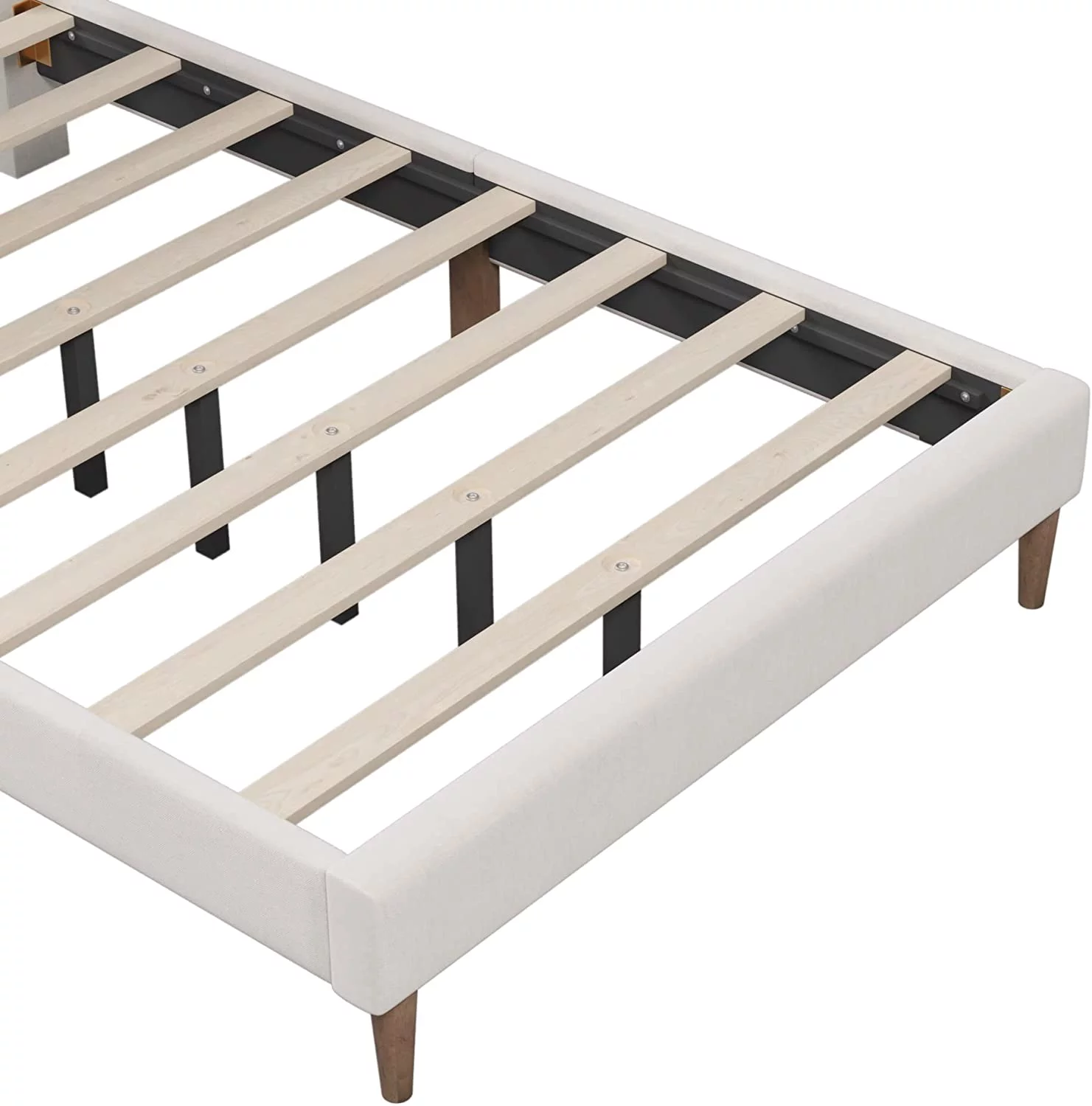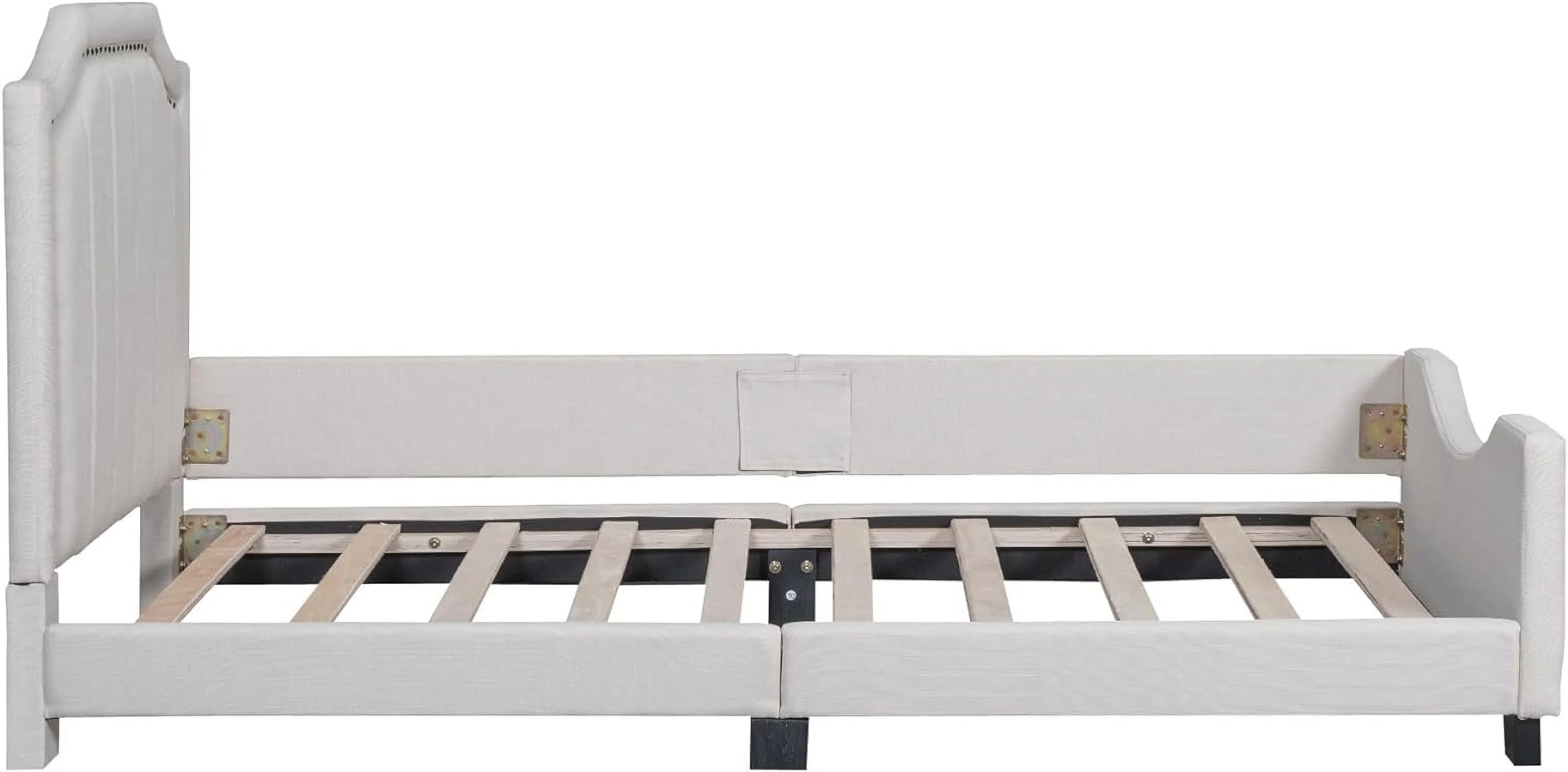 Linen Upholstered Platform Bed with Vertical Channel Tufted Headboard