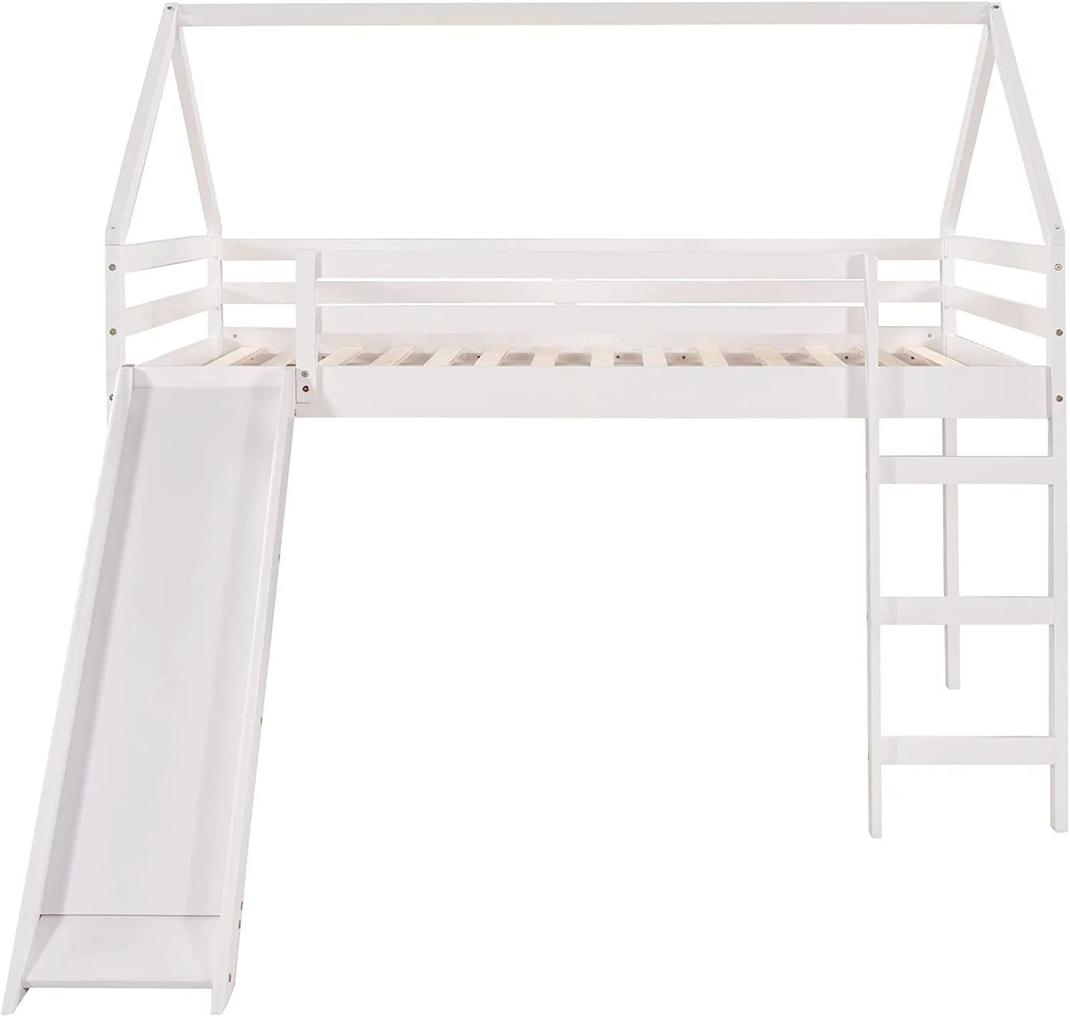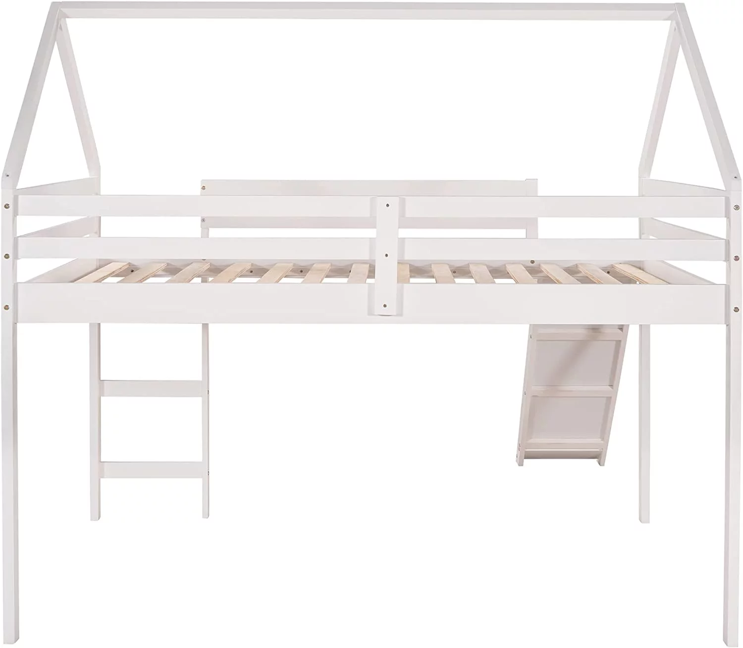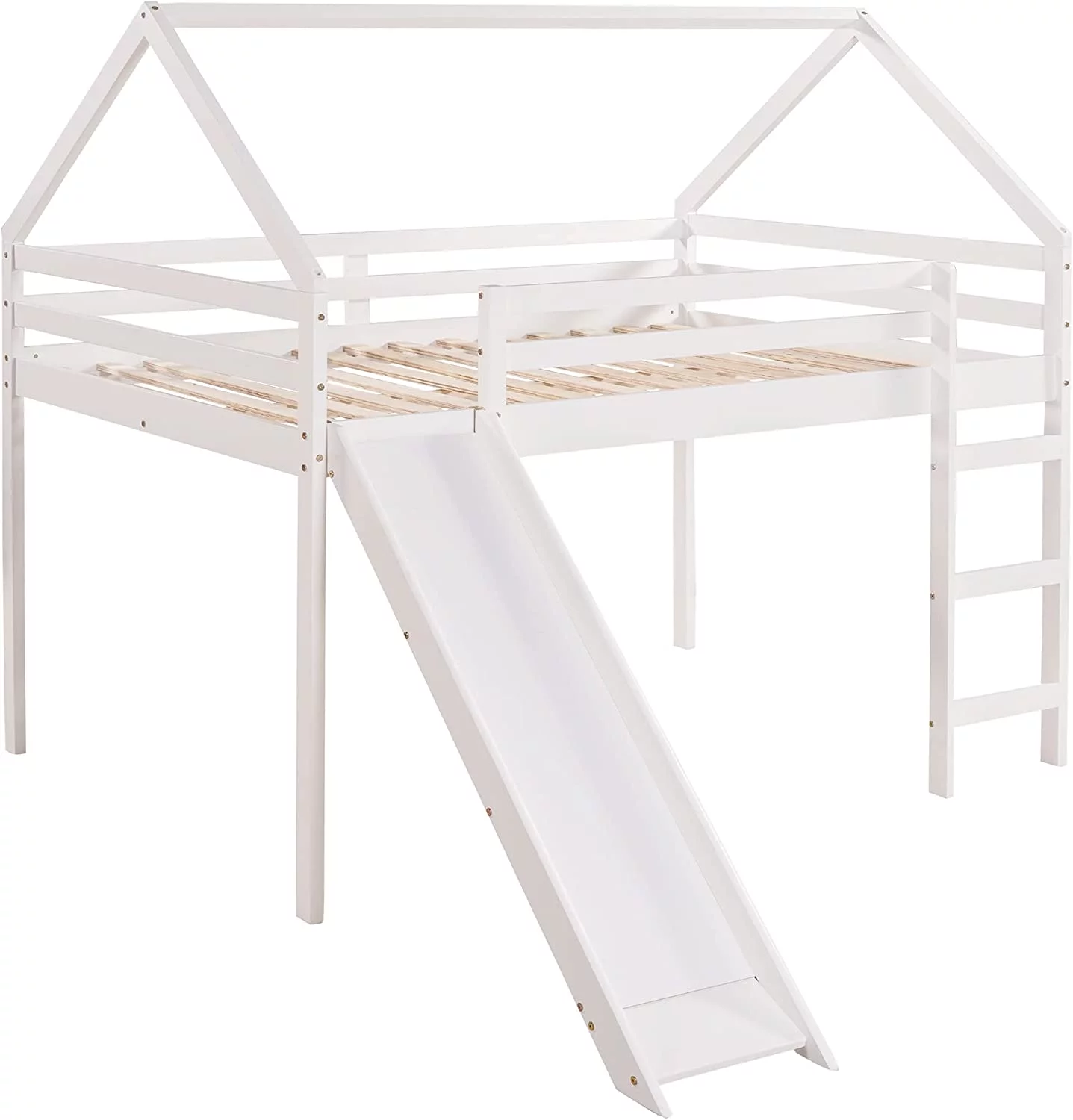 Lof Bed Full Size Wih Slide, Wood Lof Bed Full Wih House Shape Desig, Kids Full Lof Bed Frame For Boys Girls (Whie, Full Size)