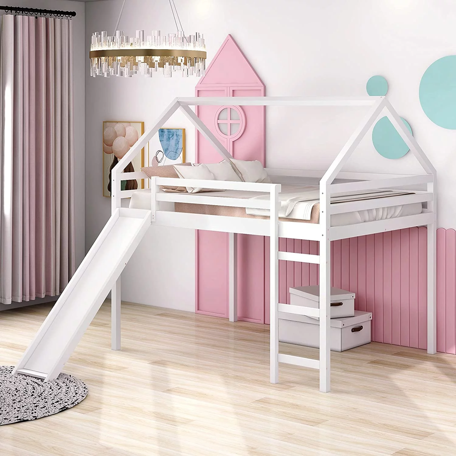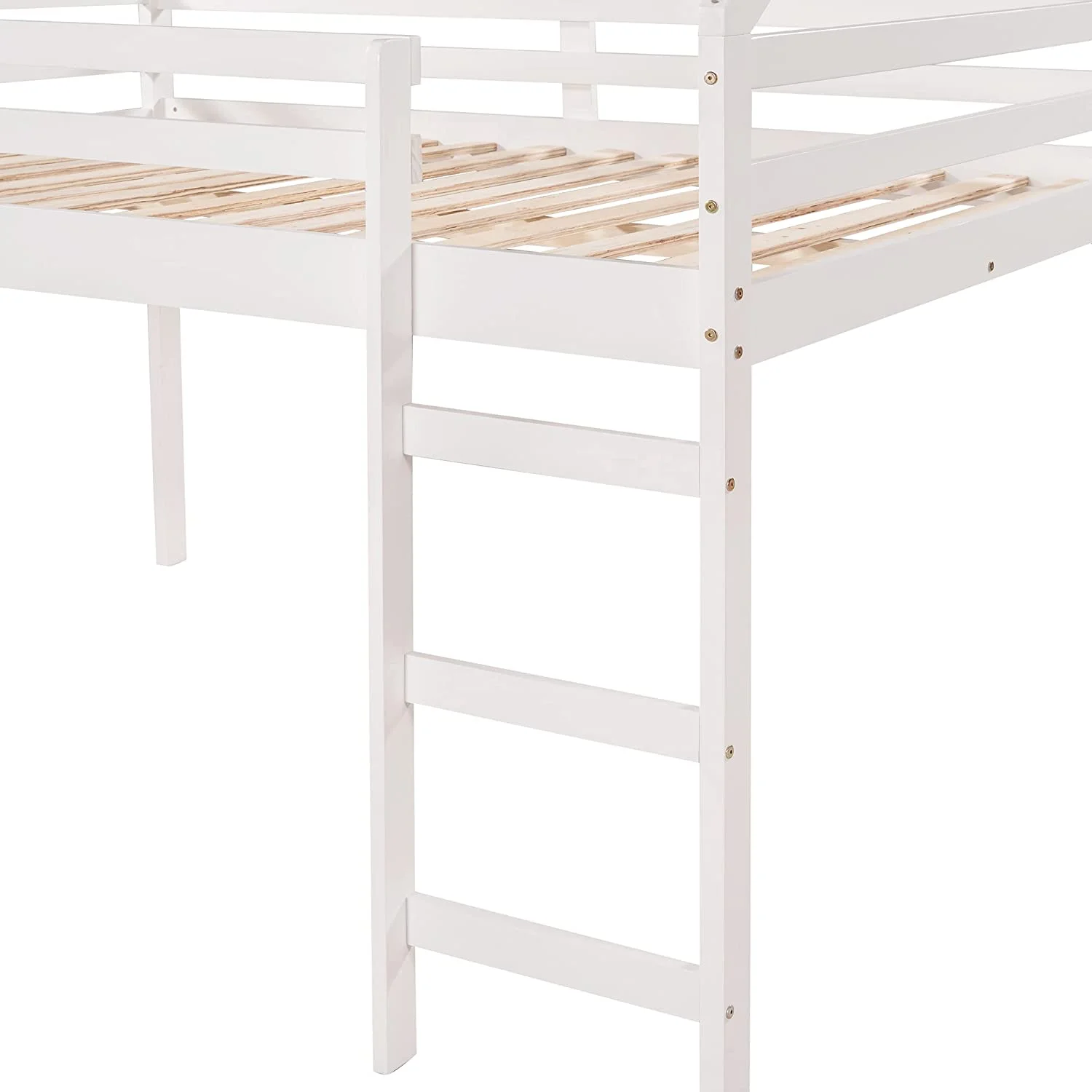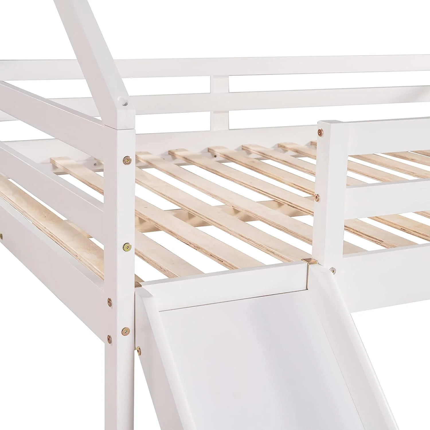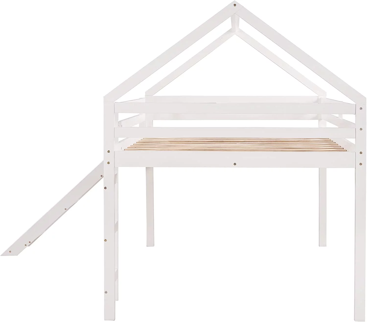 Lof Bed Full Size Wih Slide, Wood Lof Bed Full Wih House Shape Desig, Kids Full Lof Bed Frame For Boys Girls (Whie, Full Size)