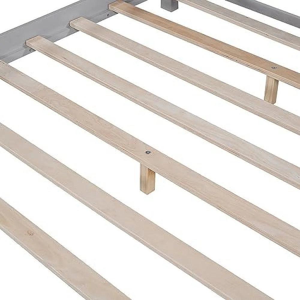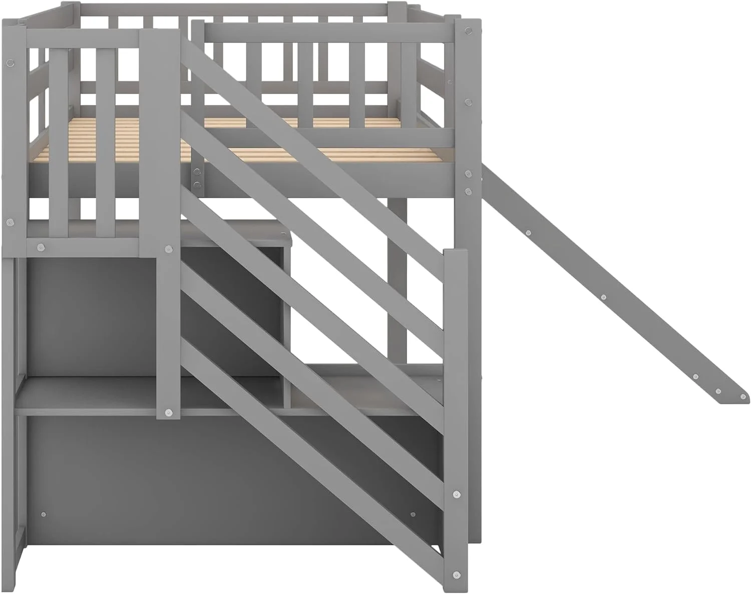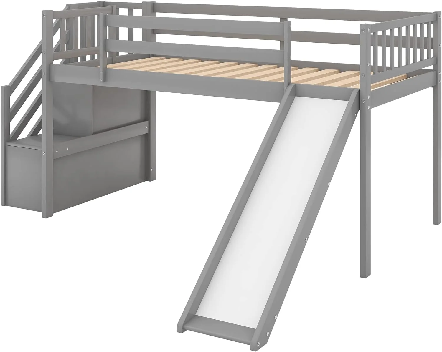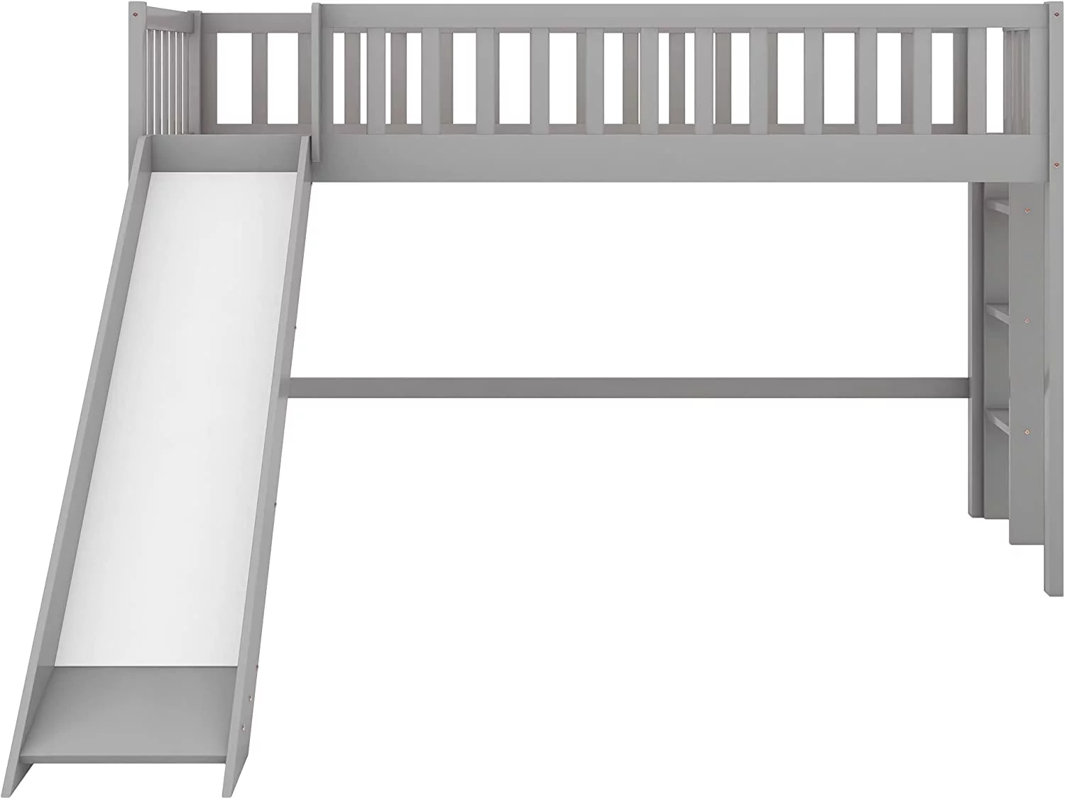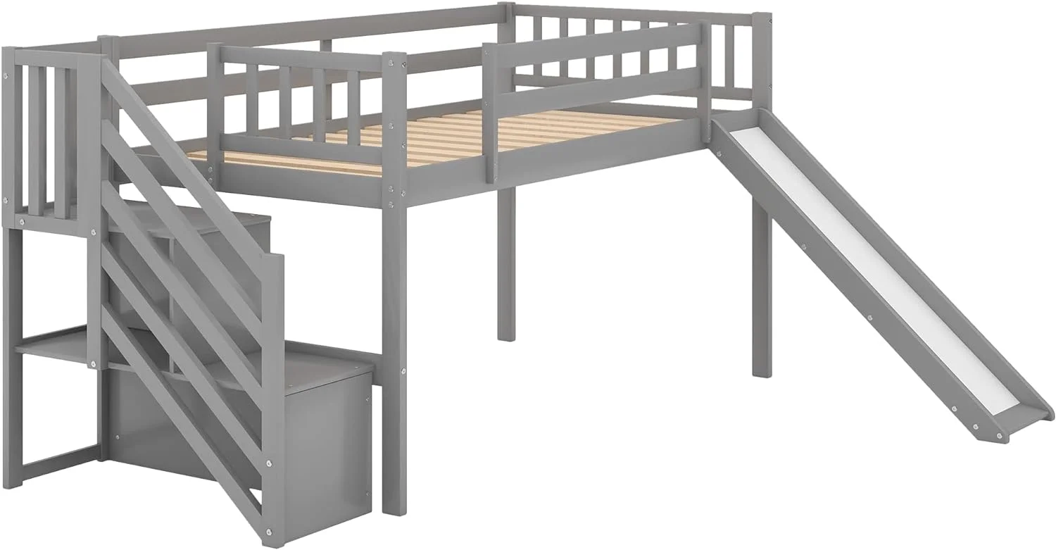 Low Lof Bed Wih Slide, Wood Size Lof Bed Frame Wih Ladder Ad Guardrails For Kids, oddlers, ees, o Box Sprig(Gray)