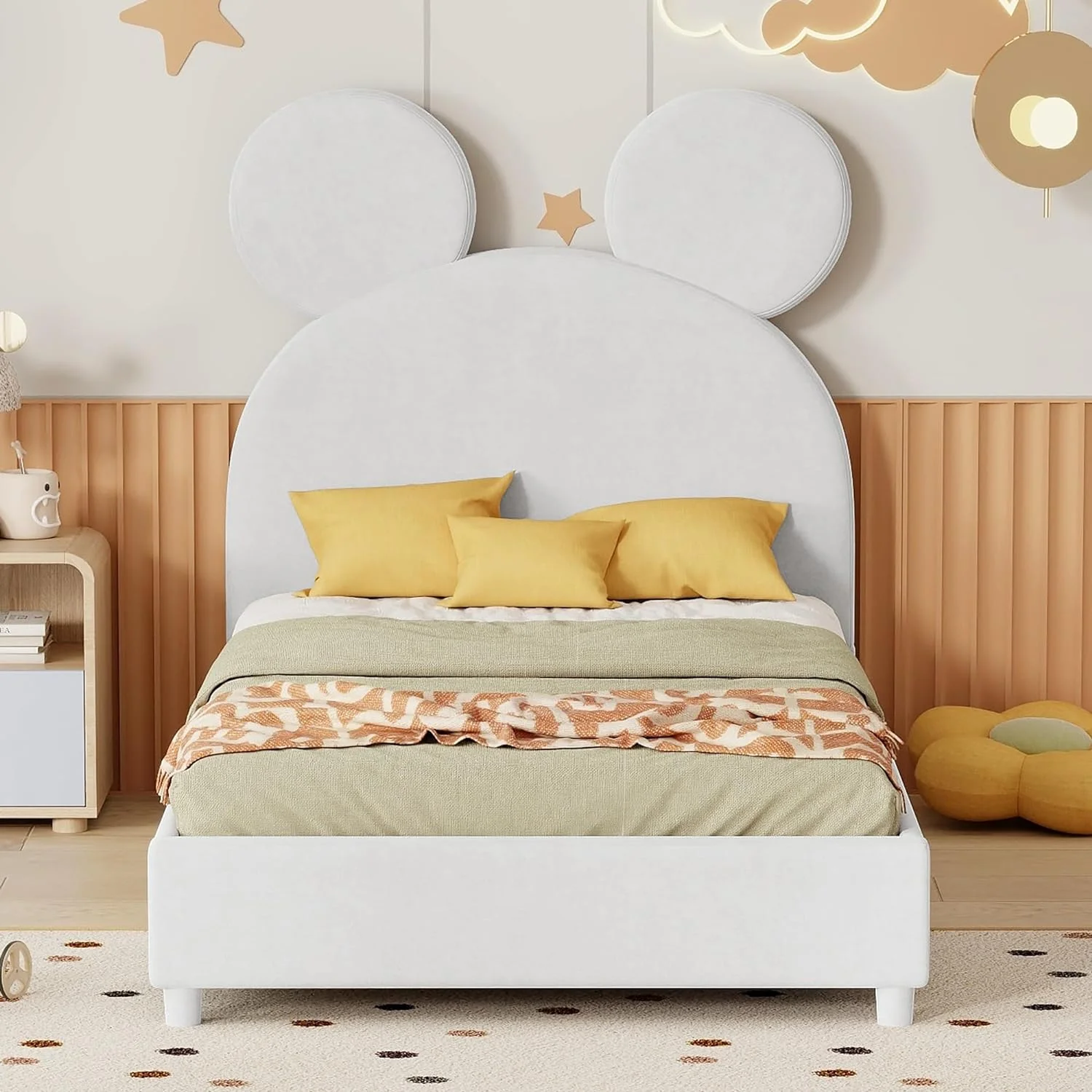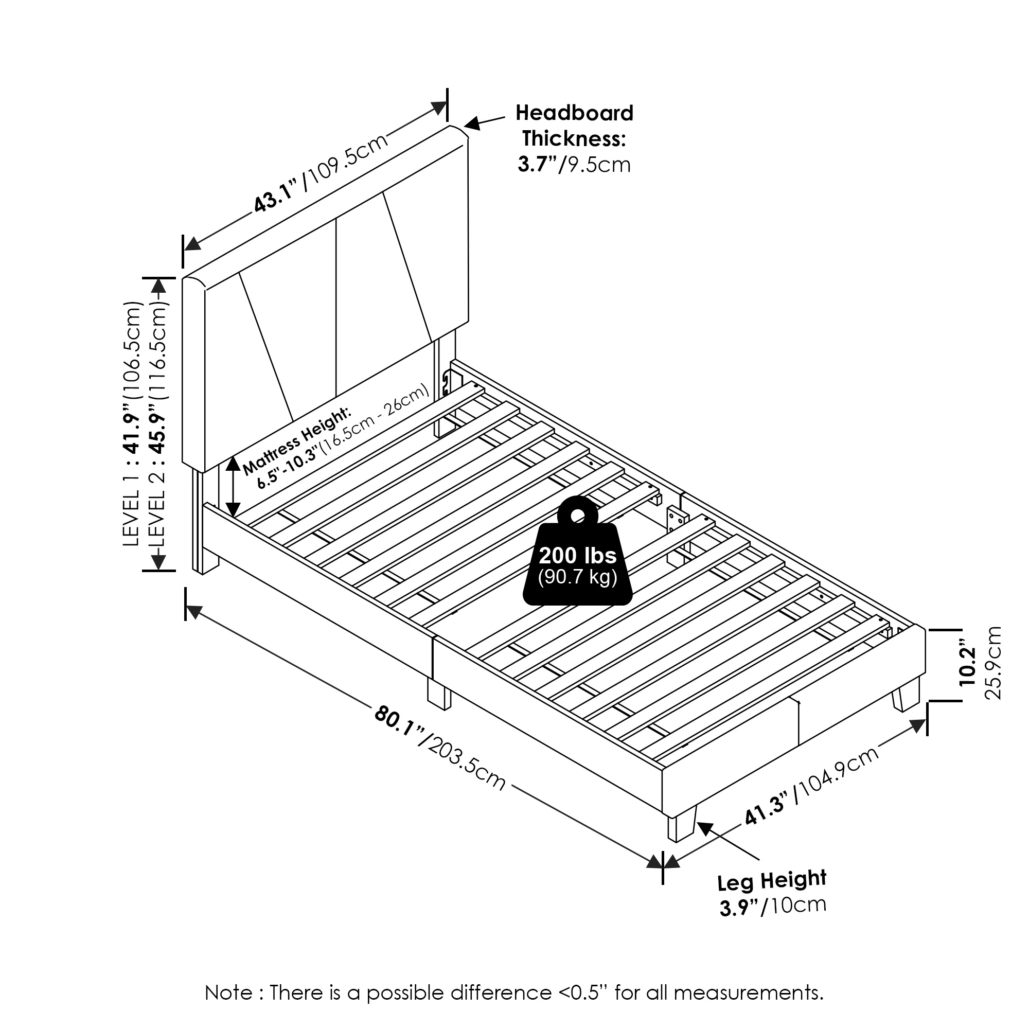 Furinno Lucy Geometric Design Headboard Bedframe, 12PC Slat Style, Glacier, Twin