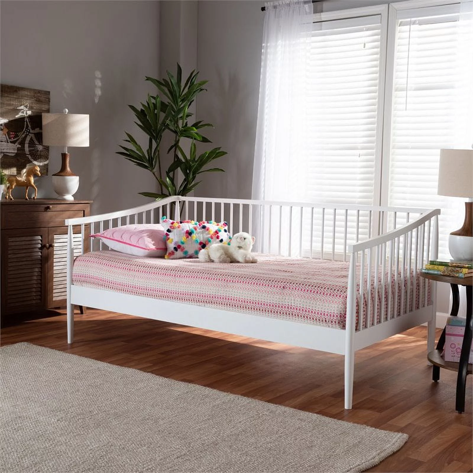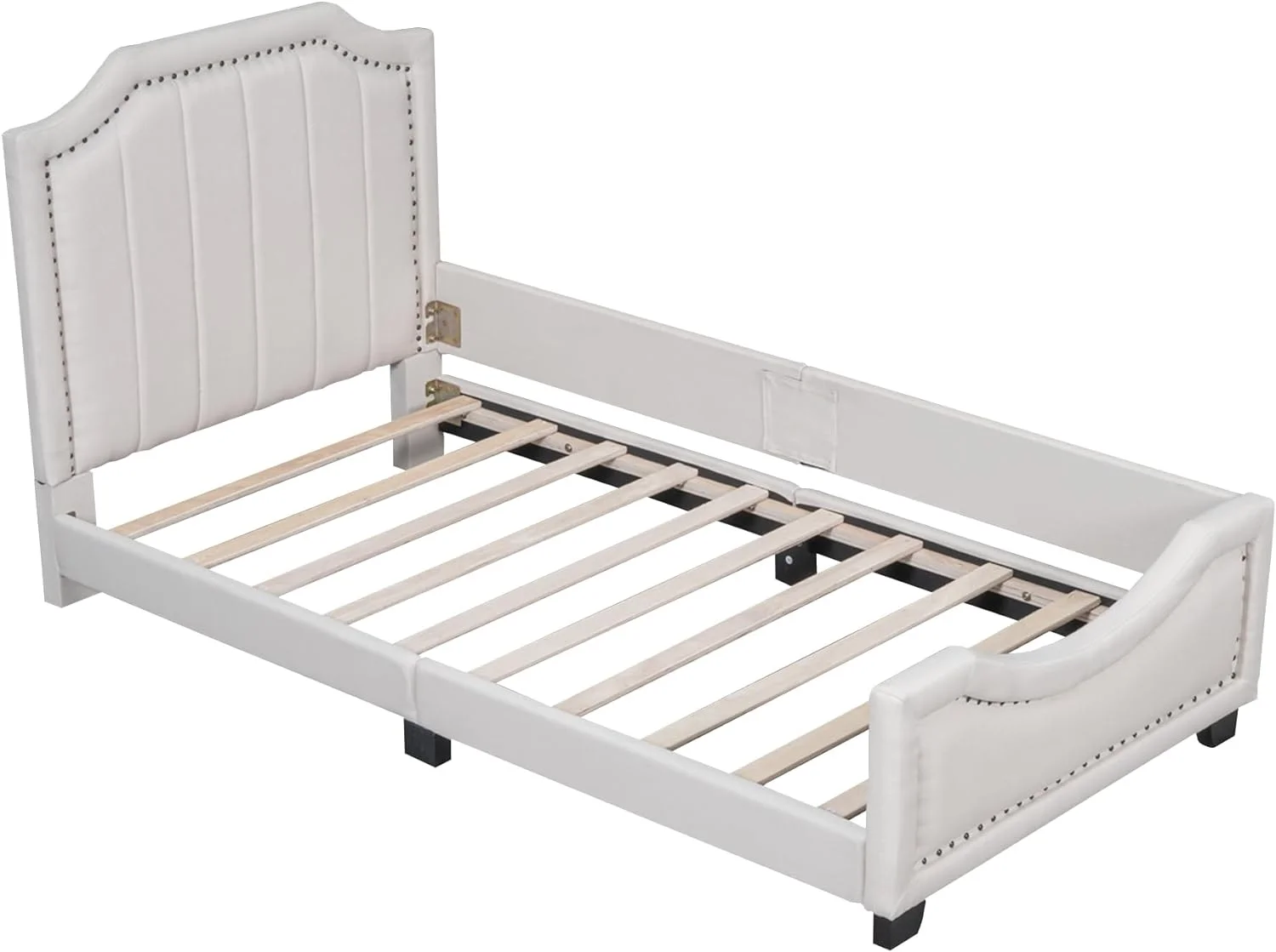 Furinno Skylar Geometric Design Headboard Bedframe, 12PC Slat Style, Glacier, Twin