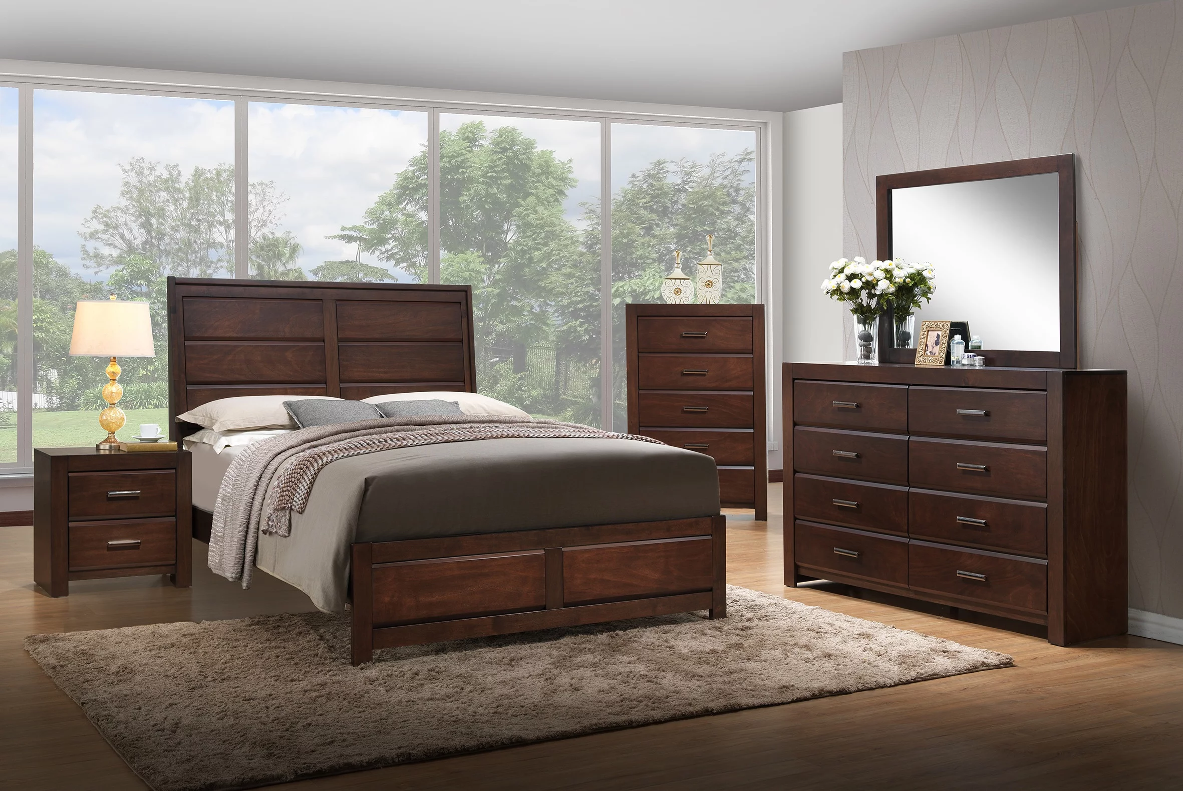 Walnut Eastern King Size Bed Panel HB Unique Design 1pc Bedframe Bedroom Furniture