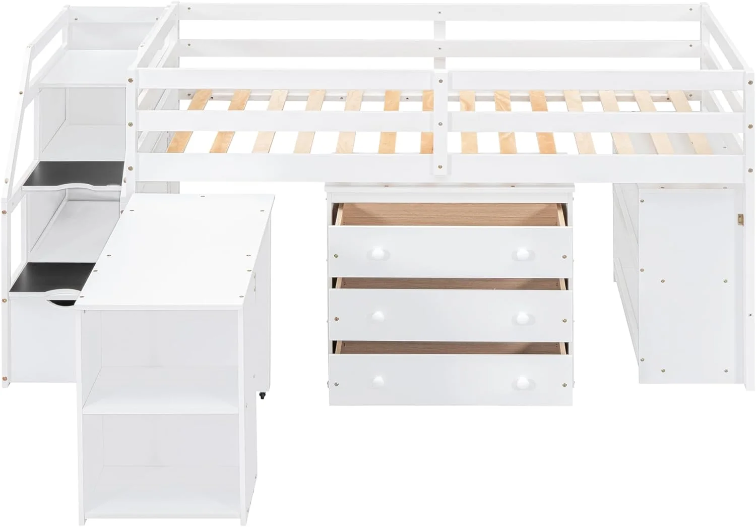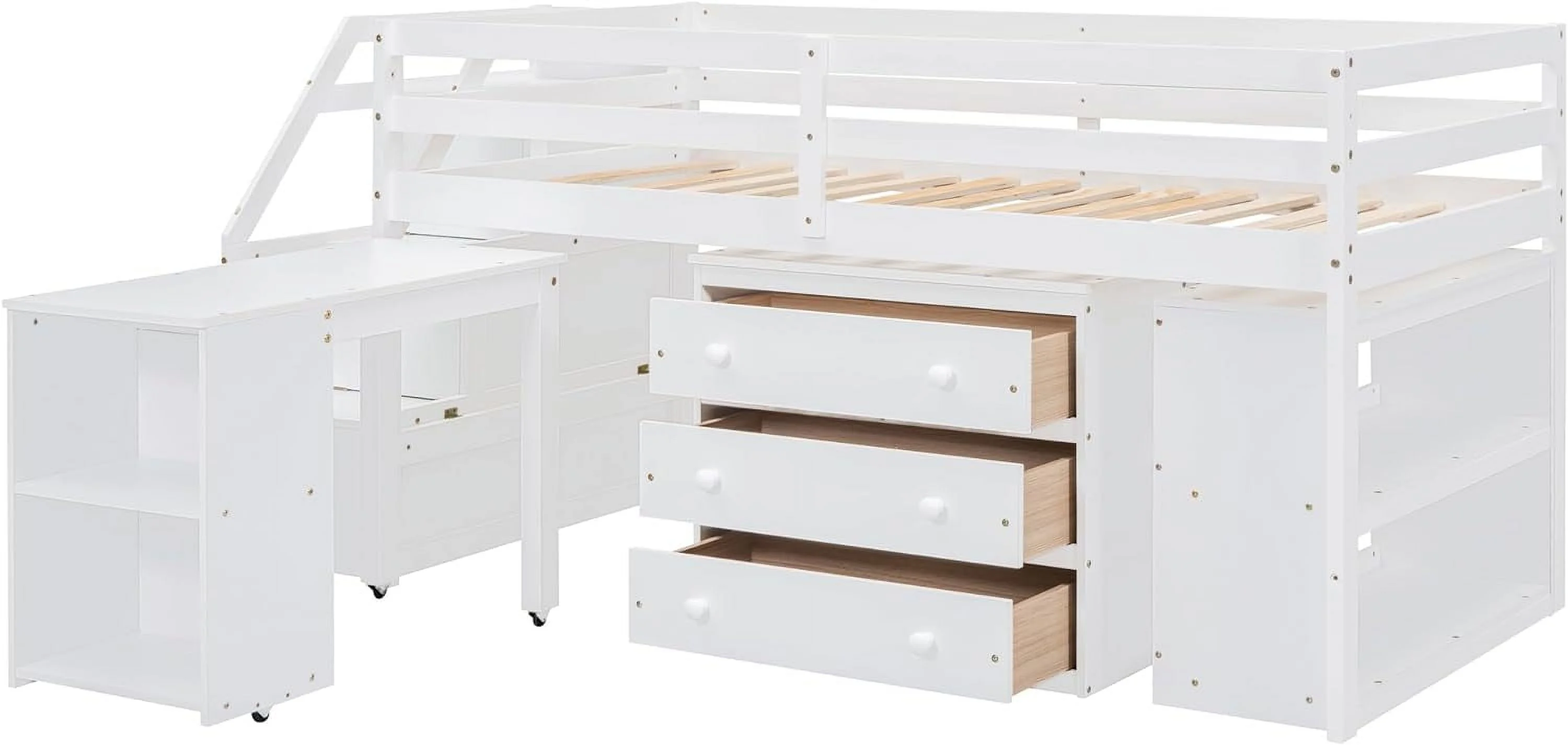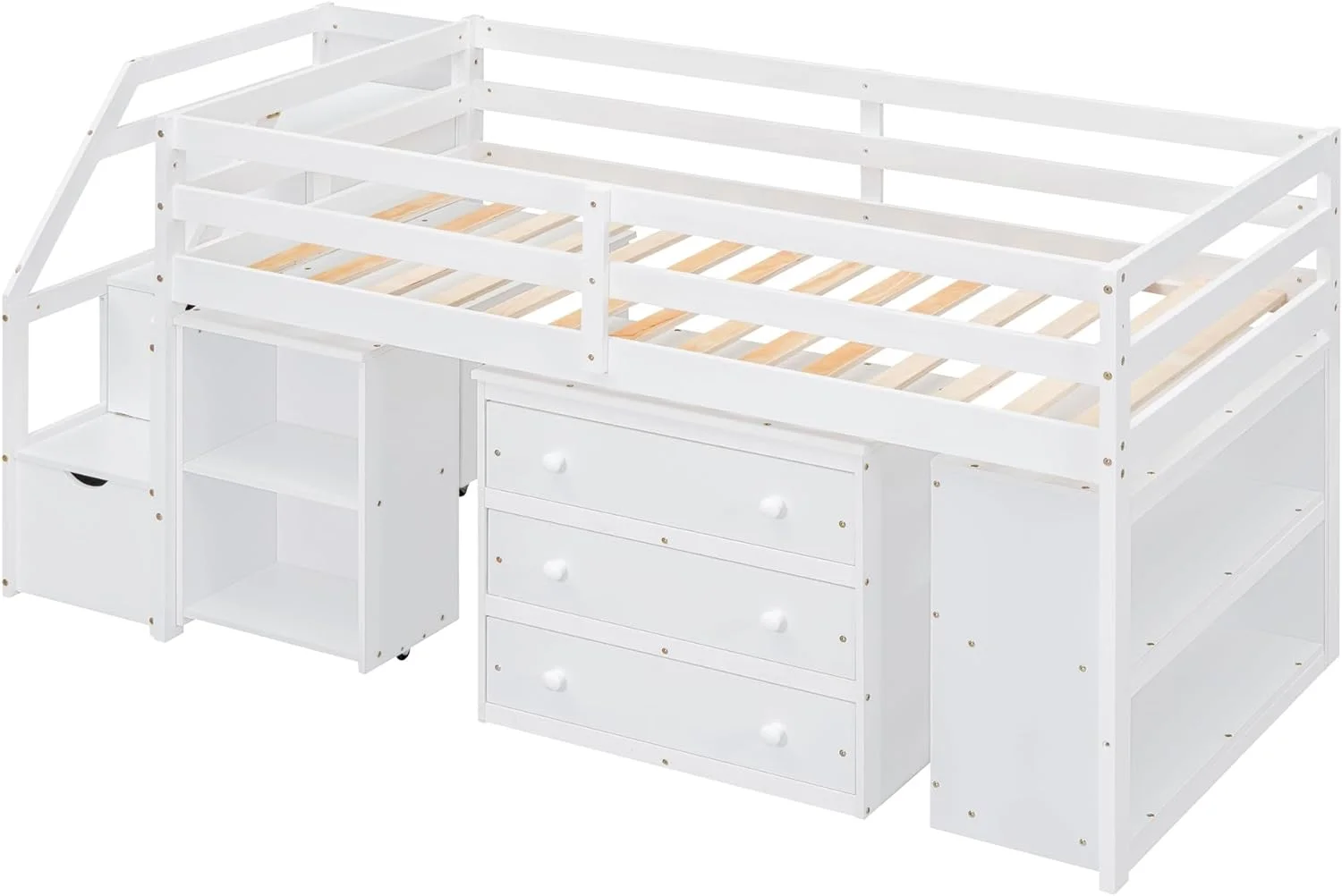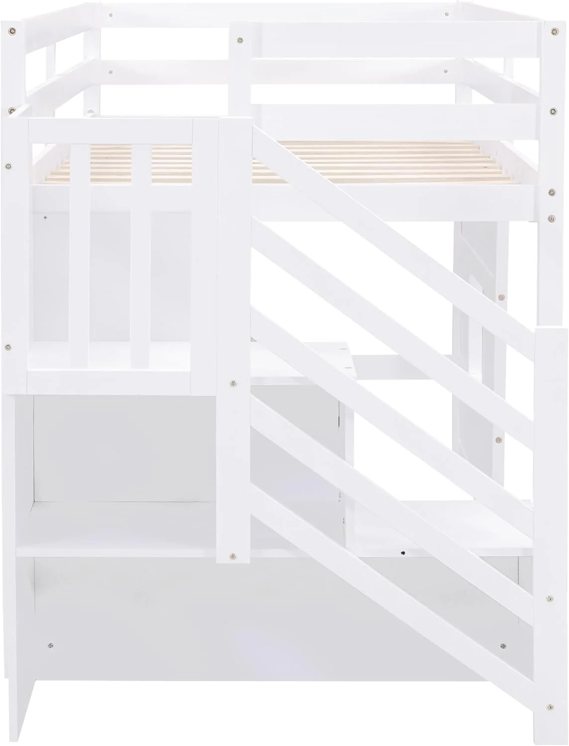 Size Low Lof Bed Wih Sorage Saircase Ad Widow, Woode Lof Bed Frame For Kids, ees, Boys, Girls, o Box Sprig eeded (, Whie)