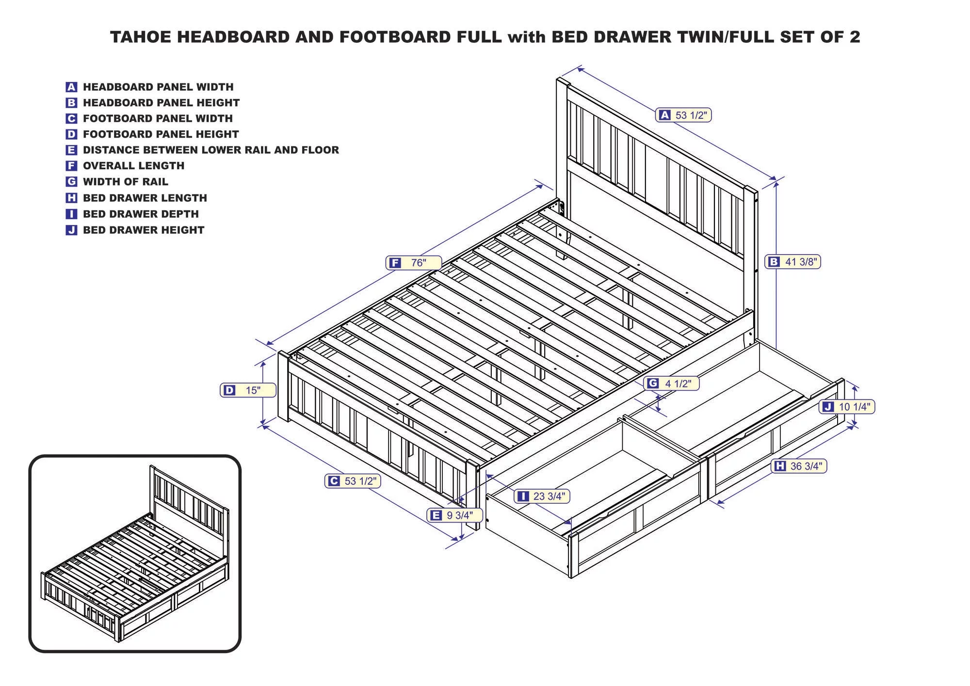 AFI Tahoe Full Wood Platform Bed with Headboard Footboard & 2 Storage Drawers, Grey