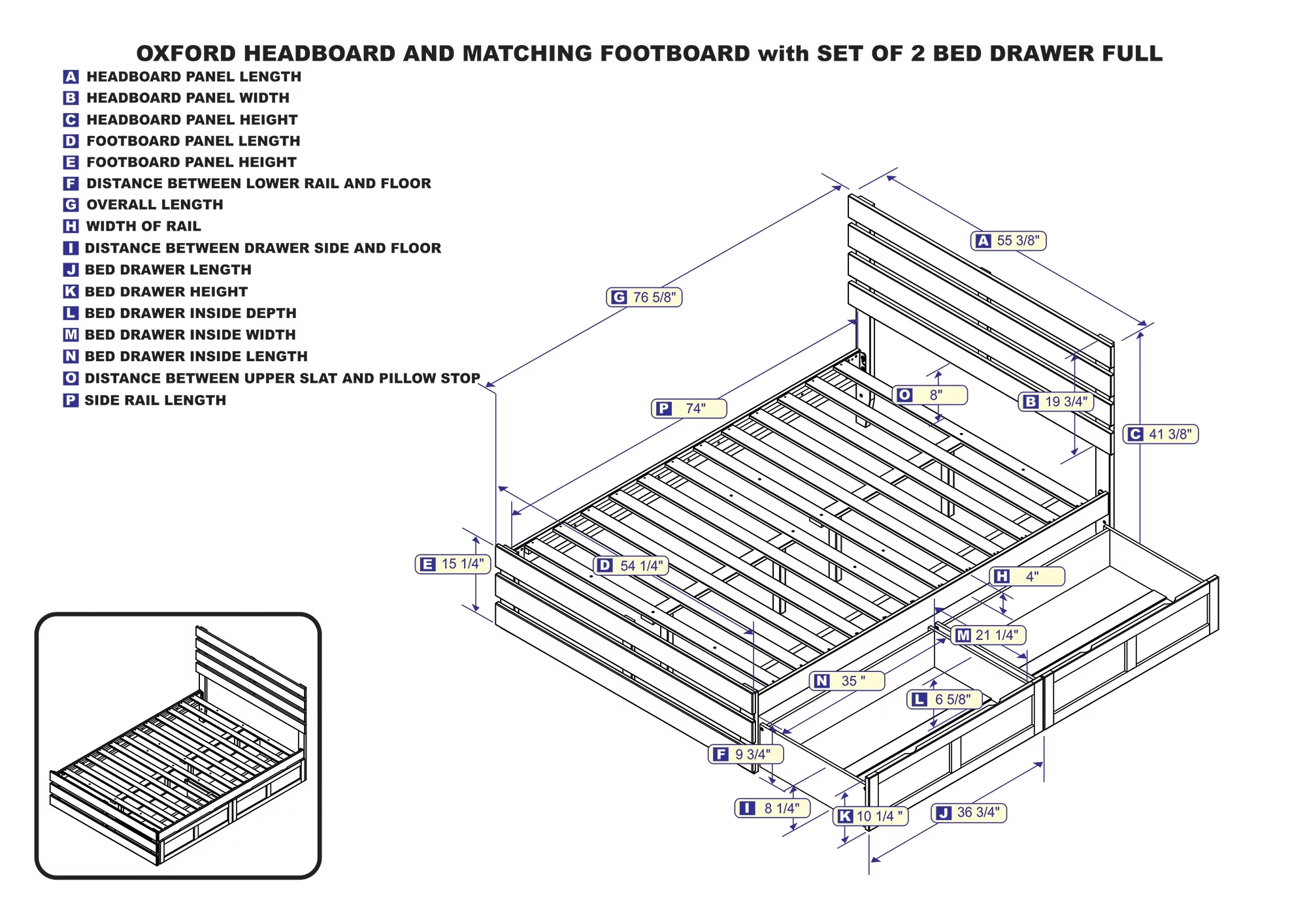 AFI Oxford Full Wood Platform Bed with Headboard Footboard & 2 Storage Drawers, Espresso